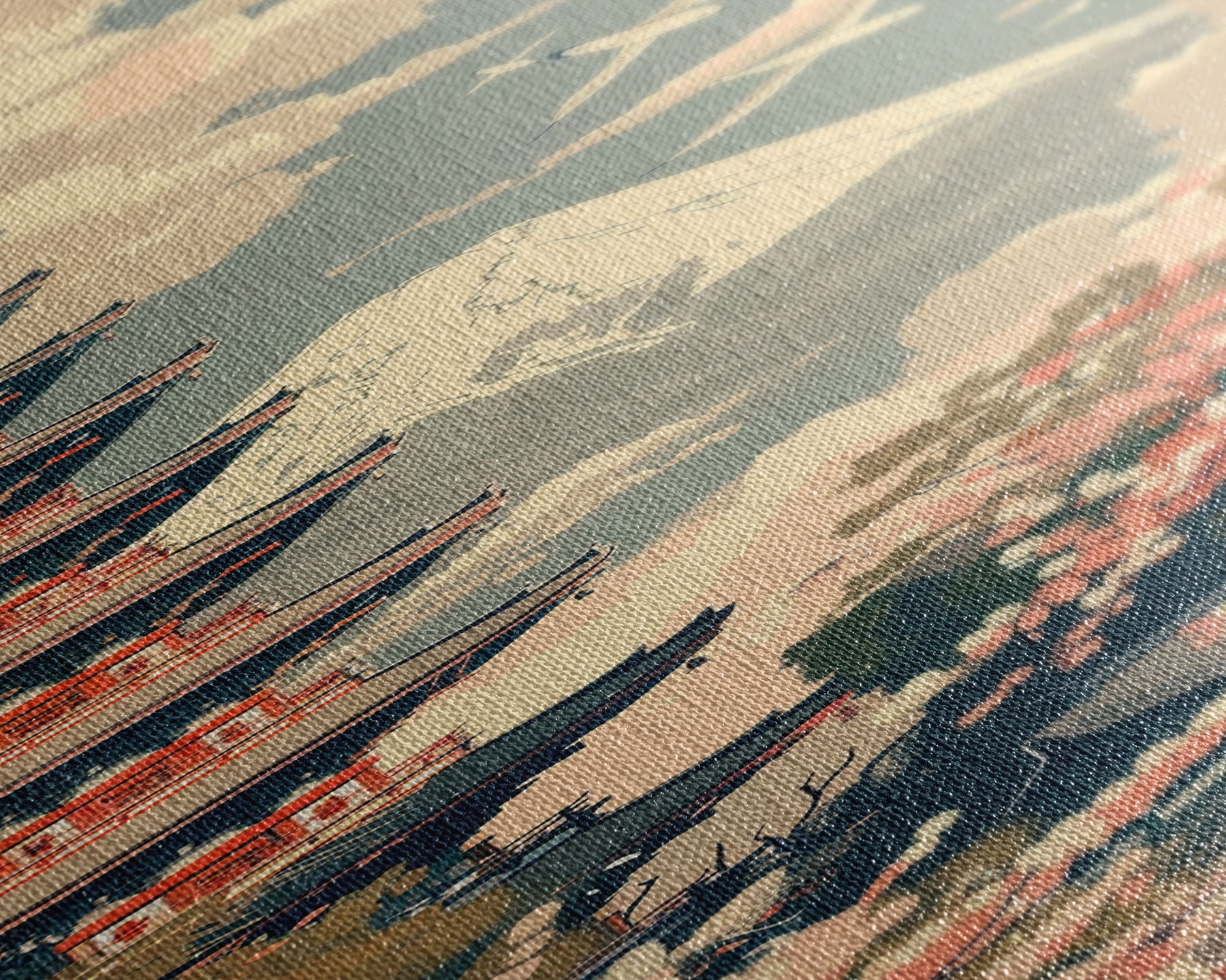 Most of our canvases are made in the USA, with the exception of canvases ordered with the light oak unstained frames, and any large canvases (24x48, 30x60, 16x48 and 20x60) ordered WITH a frame. These are temporarily made in and shipped from Europe, while we try to find a more consistent supplier in the USA.