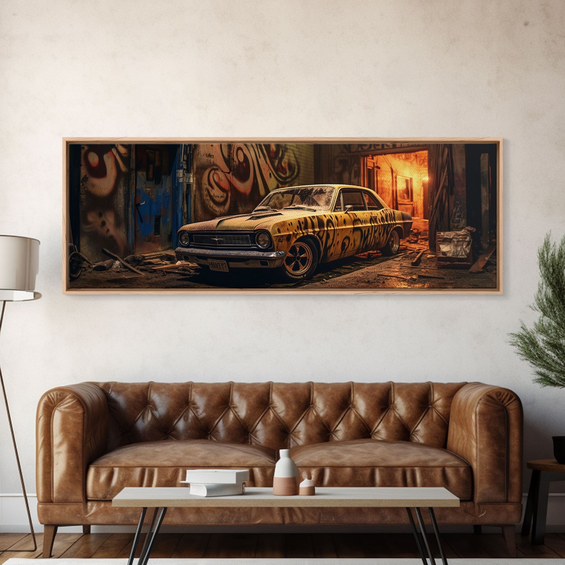 Graffiti Punk Wall Art, Street Art, Framed Canvas Print, Detroit Muscle, Limited Edition, High Quality Art, Game Room Art, Mancave