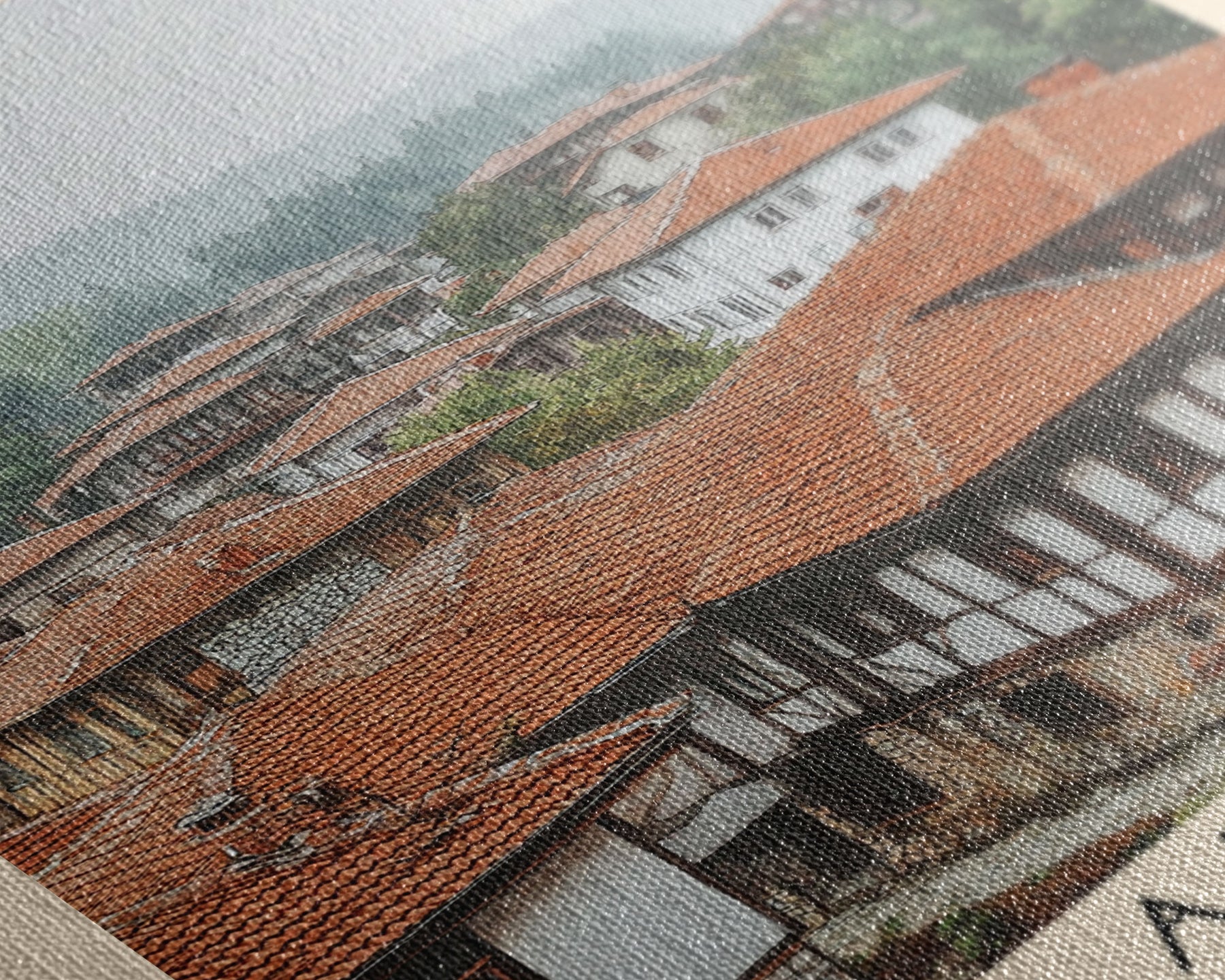 Most of our canvases are made in the USA, with the exception of canvases ordered with the light oak unstained frames, and any large canvases (24x48, 30x60, 16x48 and 20x60) ordered WITH a frame. These are temporarily made in and shipped from Europe, while we try to find a more consistent supplier in the USA.