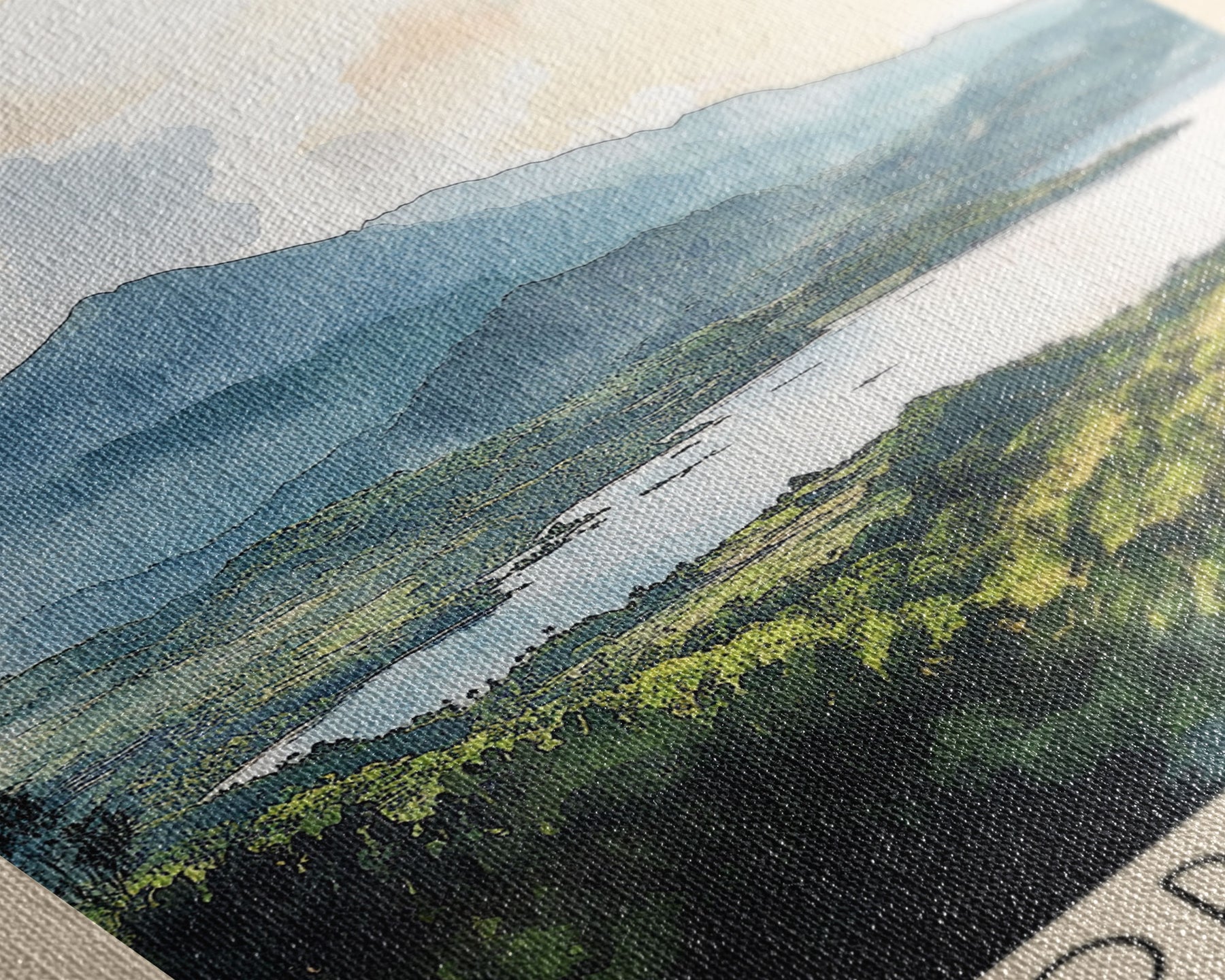 Most of our canvases are made in the USA, with the exception of canvases ordered with the light oak unstained frames, and any large canvases (24x48, 30x60, 16x48 and 20x60) ordered WITH a frame. These are temporarily made in and shipped from Europe, while we try to find a more consistent supplier in the USA.