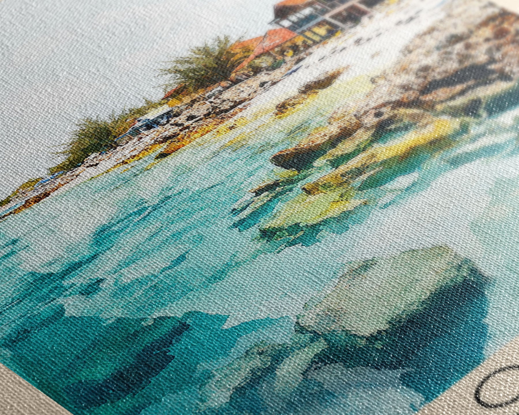 Most of our canvases are made in the USA, with the exception of canvases ordered with the light oak unstained frames, and any large canvases (24x48, 30x60, 16x48 and 20x60) ordered WITH a frame. These are temporarily made in and shipped from Europe, while we try to find a more consistent supplier in the USA.