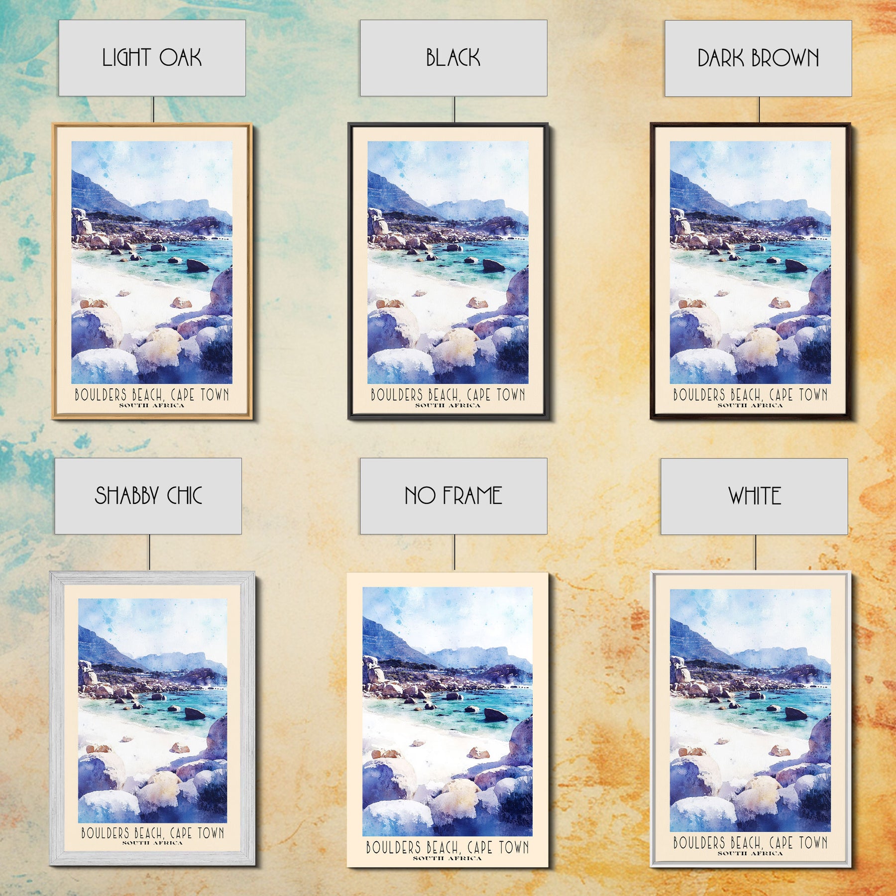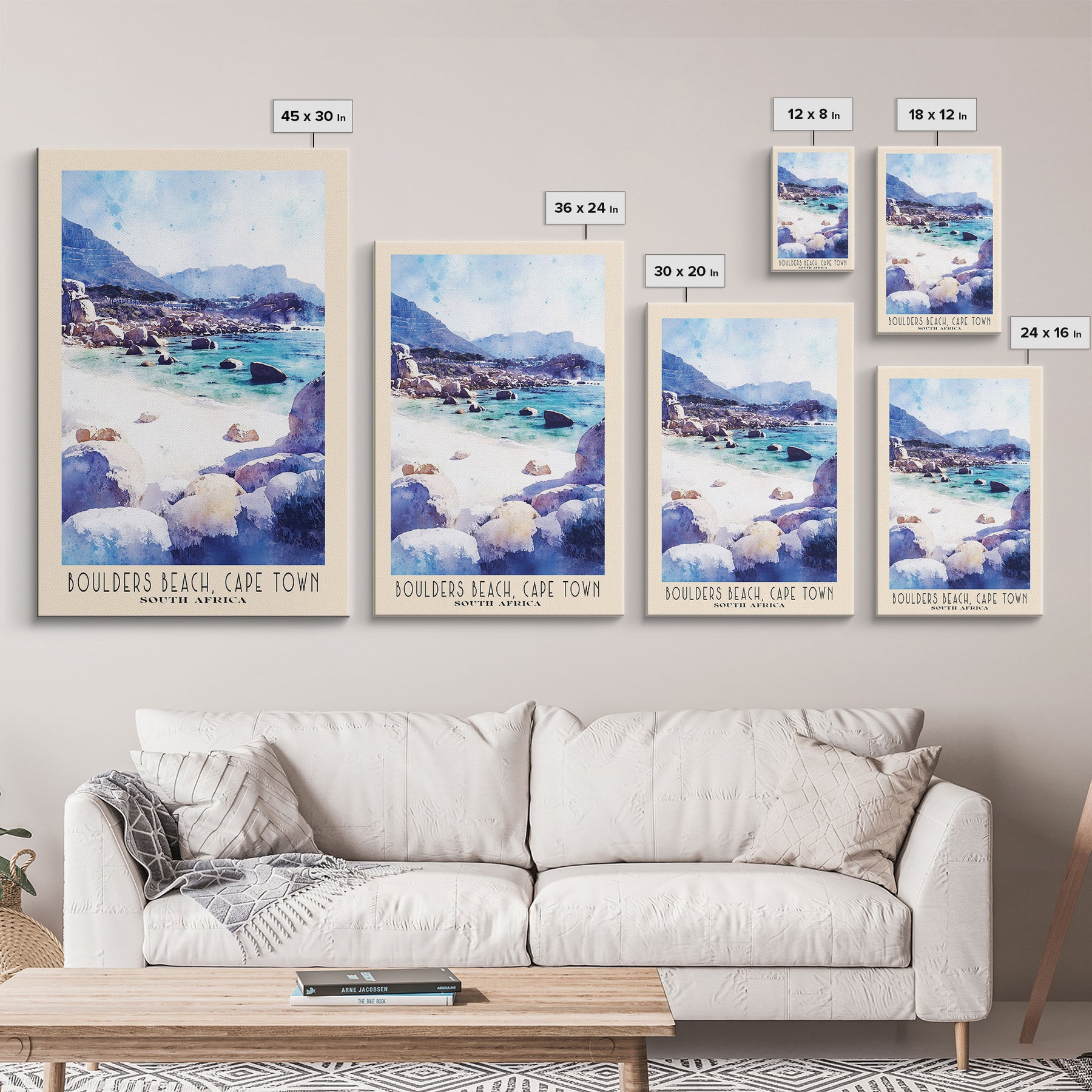 Boulders Beach, Cape Town, South Africa Watercolor Print, Vacation Gift, South Africa Wall Art, Beach Painting, Beach Decor, Large Wall Art, Wood Frame Art