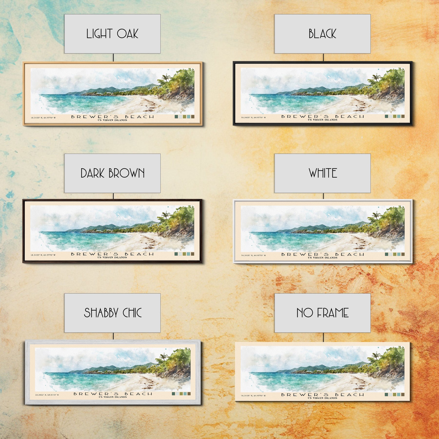 Brewer’s Beach, US Virgin islands Watercolor Print, Vacation Gift, US Virgin islands Wall Art, Beach Painting, Beach Decor, Large Wall Art, Wood Frame Art