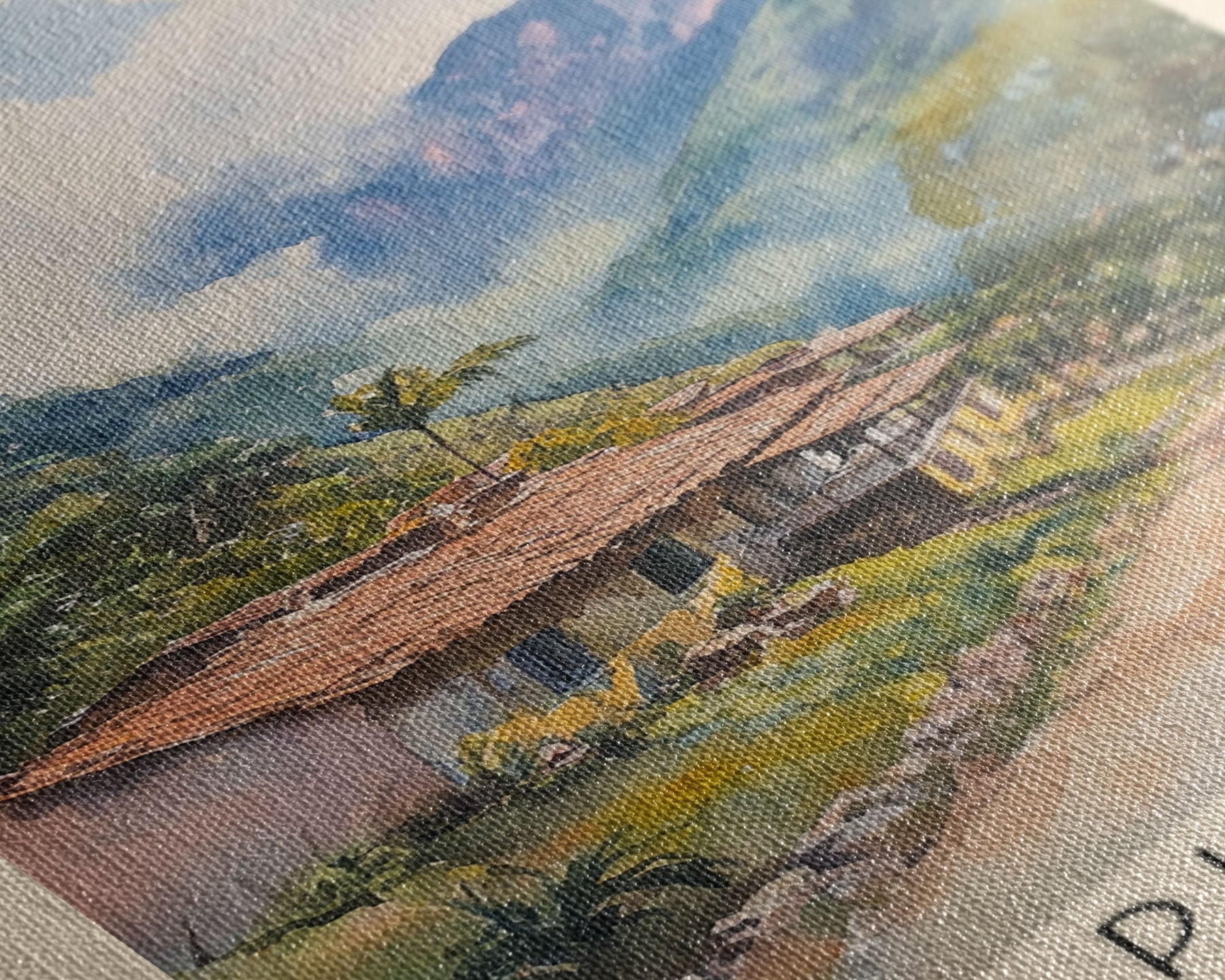 Most of our canvases are made in the USA, with the exception of canvases ordered with the light oak unstained frames, and any large canvases (24x48, 30x60, 16x48 and 20x60) ordered WITH a frame. These are temporarily made in and shipped from Europe, while we try to find a more consistent supplier in the USA.