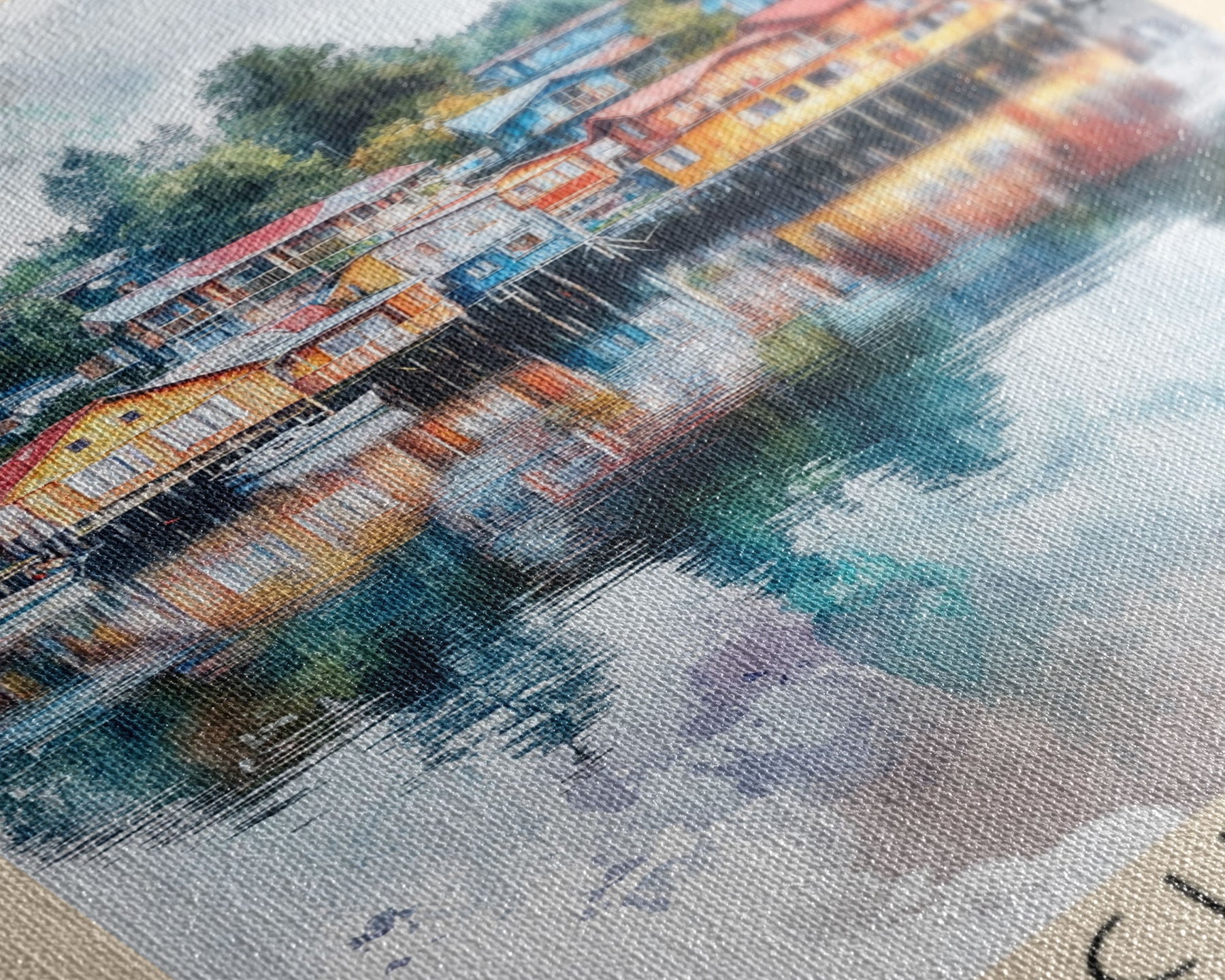 Most of our canvases are made in the USA, with the exception of canvases ordered with the light oak unstained frames, and any large canvases (24x48, 30x60, 16x48 and 20x60) ordered WITH a frame. These are temporarily made in and shipped from Europe, while we try to find a more consistent supplier in the USA.
