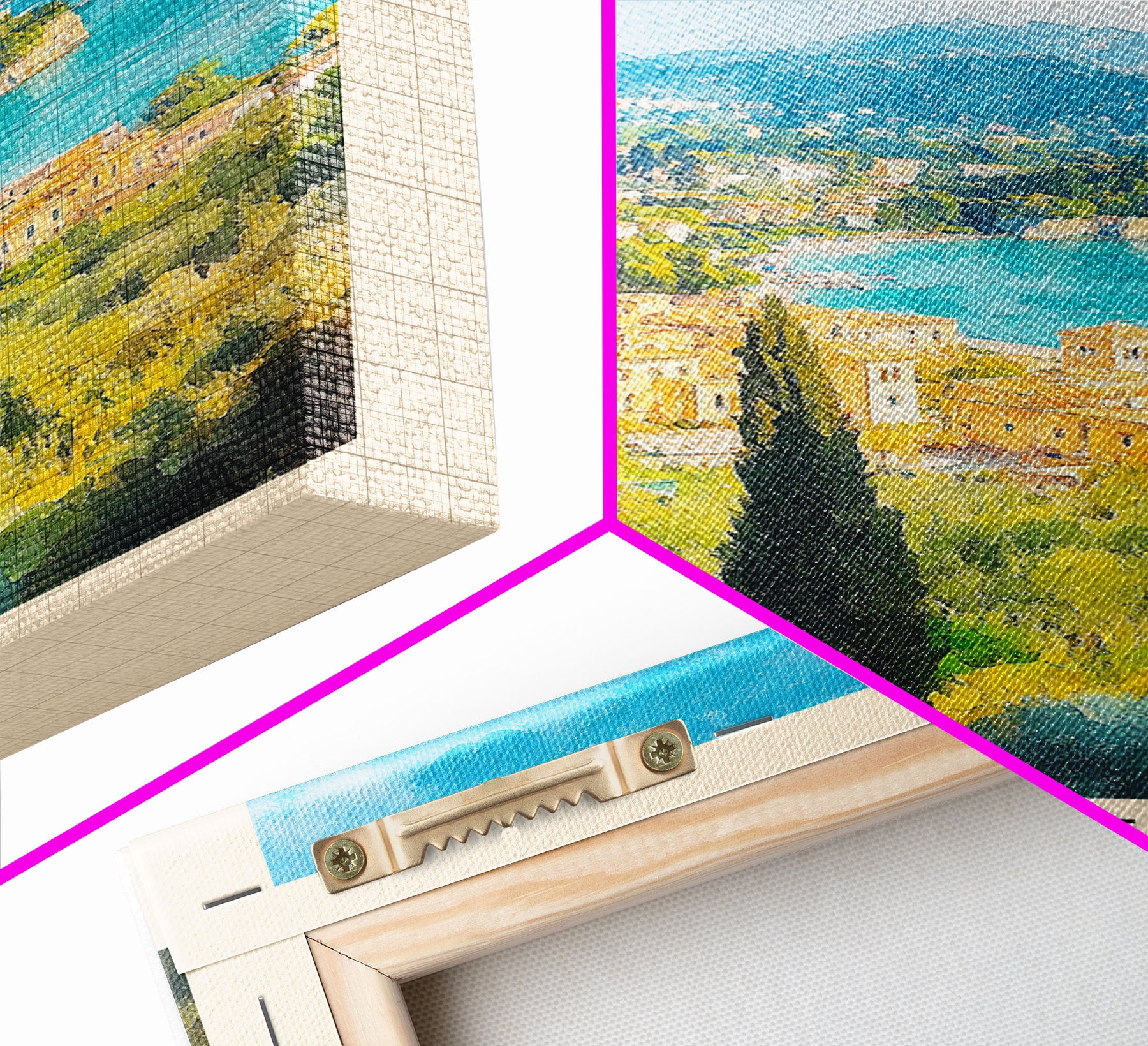Most of our canvases are made in the USA, with the exception of canvases ordered with the light oak unstained frames, and any large canvases (24x48, 30x60, 16x48 and 20x60) ordered WITH a frame. These are temporarily made in and shipped from Europe, while we try to find a more consistent supplier in the USA.