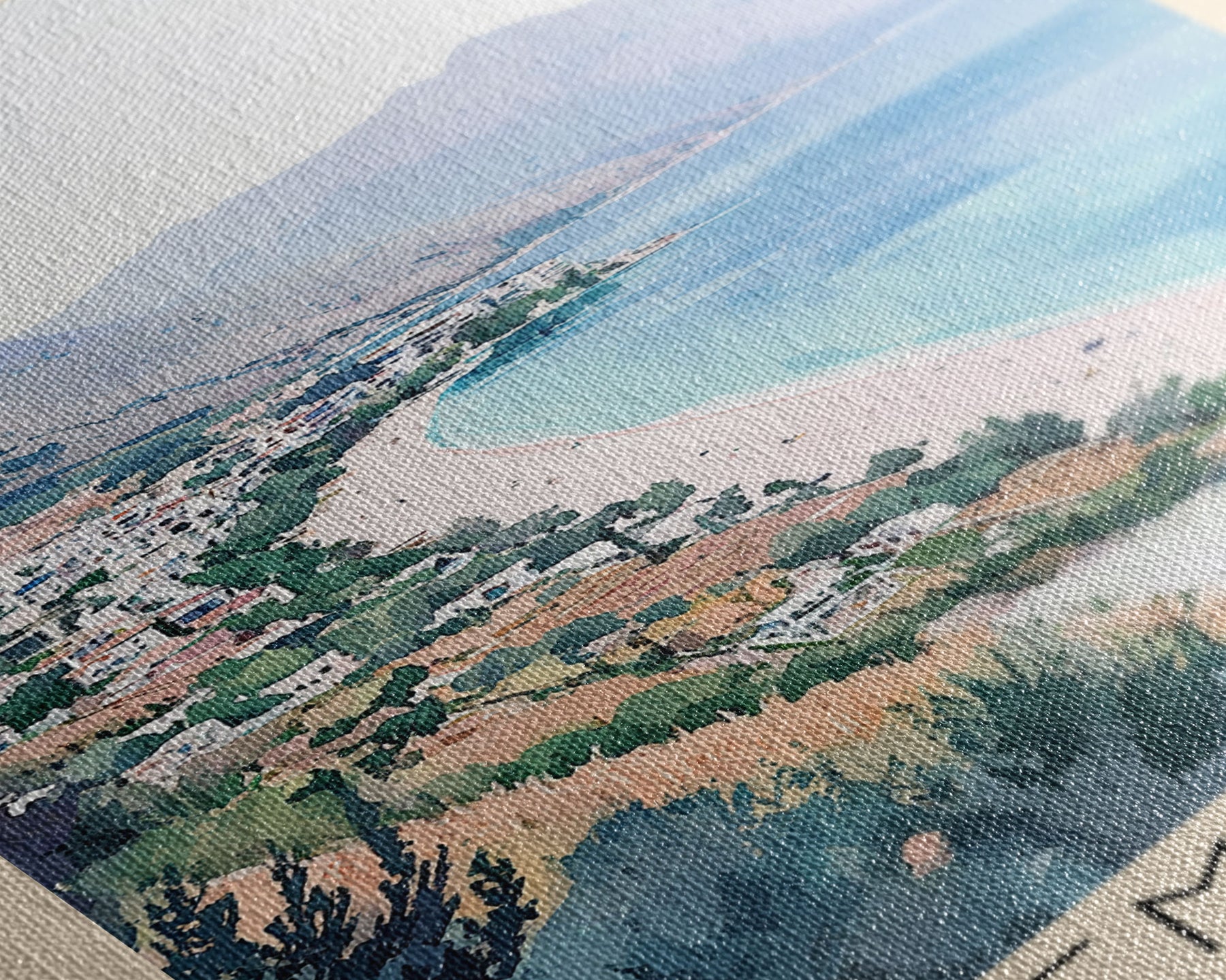 Most of our canvases are made in the USA, with the exception of canvases ordered with the light oak unstained frames, and any large canvases (24x48, 30x60, 16x48 and 20x60) ordered WITH a frame. These are temporarily made in and shipped from Europe, while we try to find a more consistent supplier in the USA.