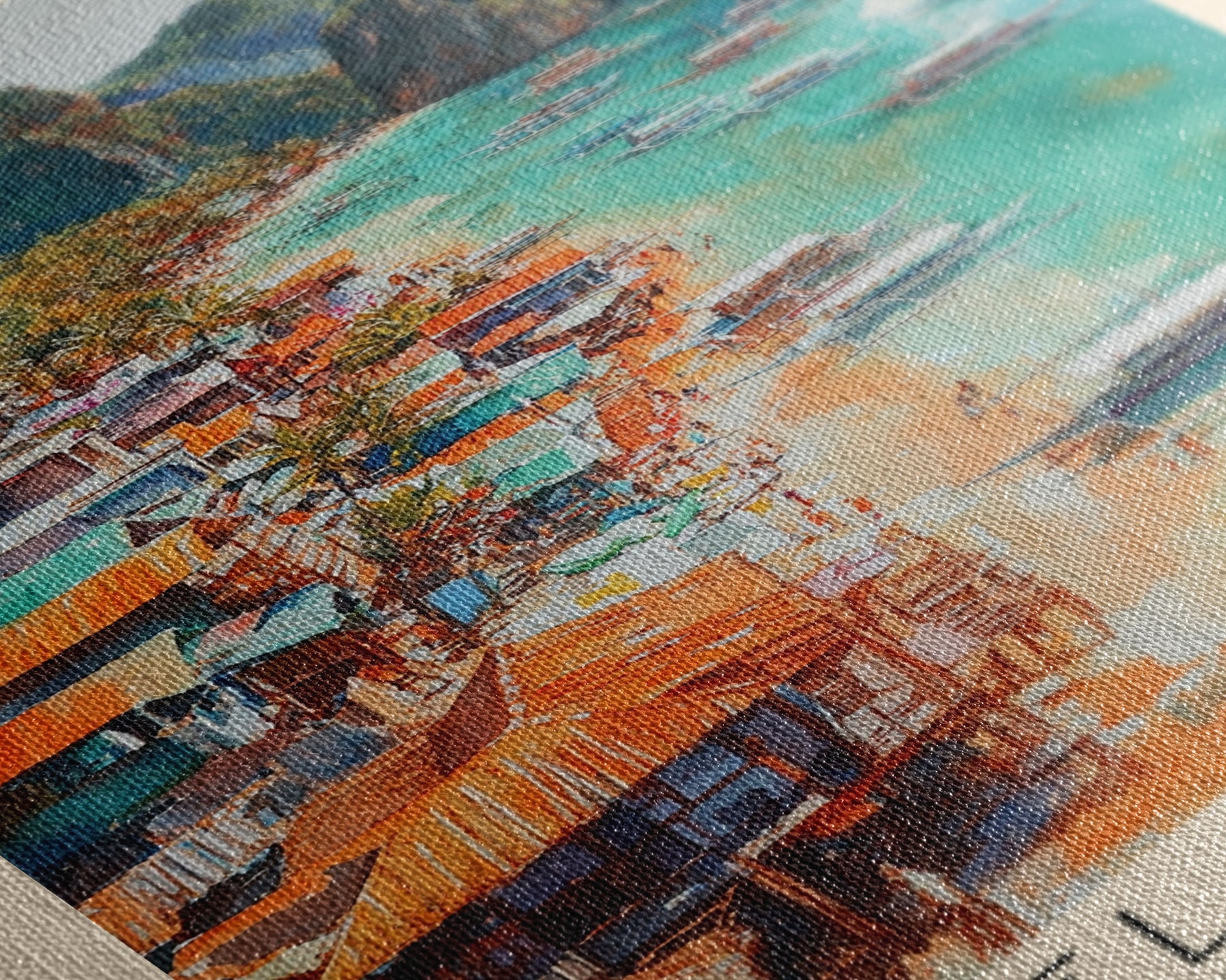 Most of our canvases are made in the USA, with the exception of canvases ordered with the light oak unstained frames, and any large canvases (24x48, 30x60, 16x48 and 20x60) ordered WITH a frame. These are temporarily made in and shipped from Europe, while we try to find a more consistent supplier in the USA.