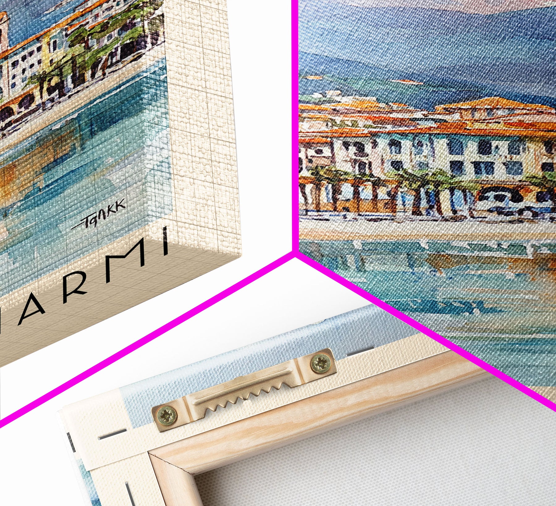 Most of our canvases are made in the USA, with the exception of canvases ordered with the light oak unstained frames, and any large canvases (24x48, 30x60, 16x48 and 20x60) ordered WITH a frame. These are temporarily made in and shipped from Europe, while we try to find a more consistent supplier in the USA.