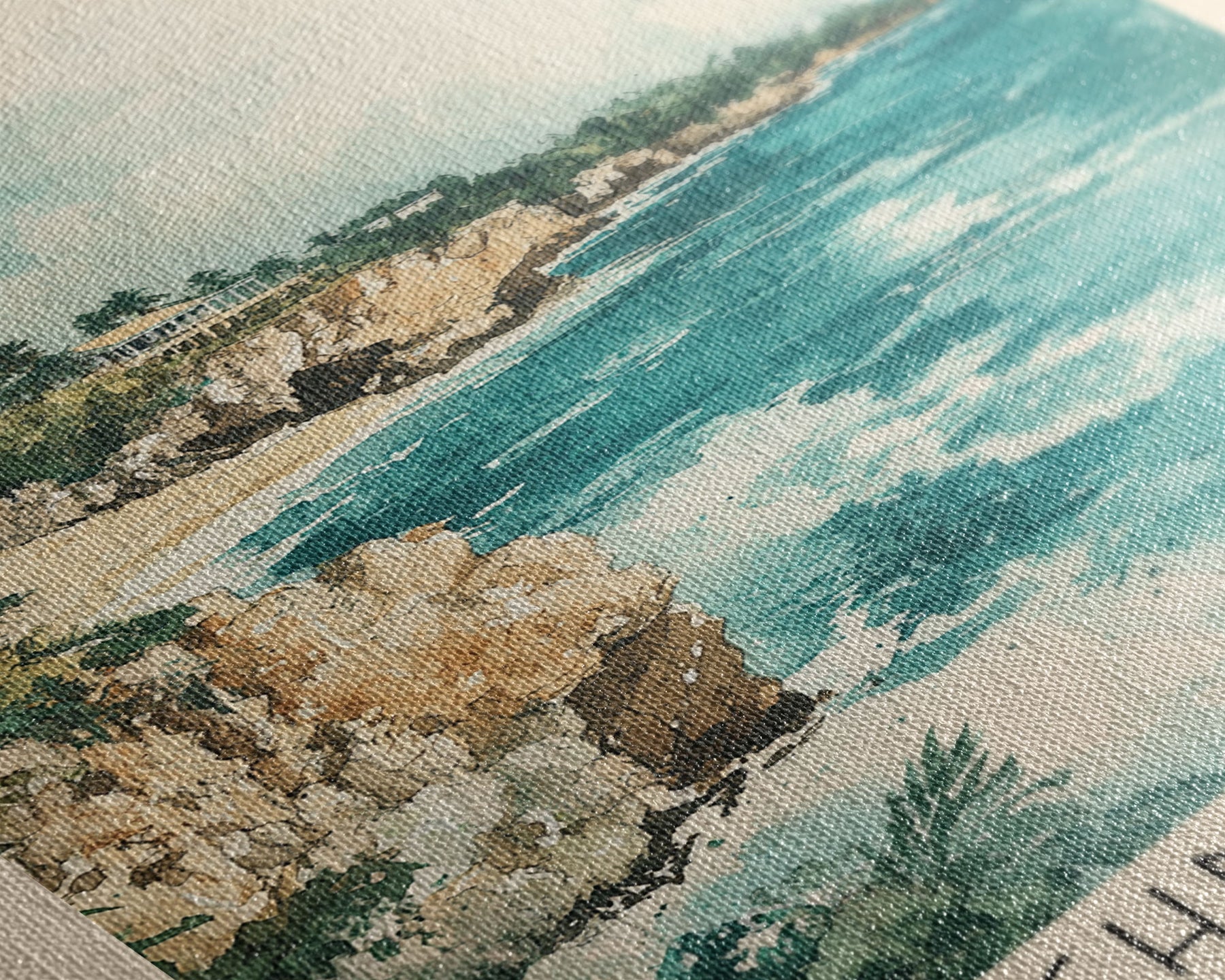 Most of our canvases are made in the USA, with the exception of canvases ordered with the light oak unstained frames, and any large canvases (24x48, 30x60, 16x48 and 20x60) ordered WITH a frame. These are temporarily made in and shipped from Europe, while we try to find a more consistent supplier in the USA.