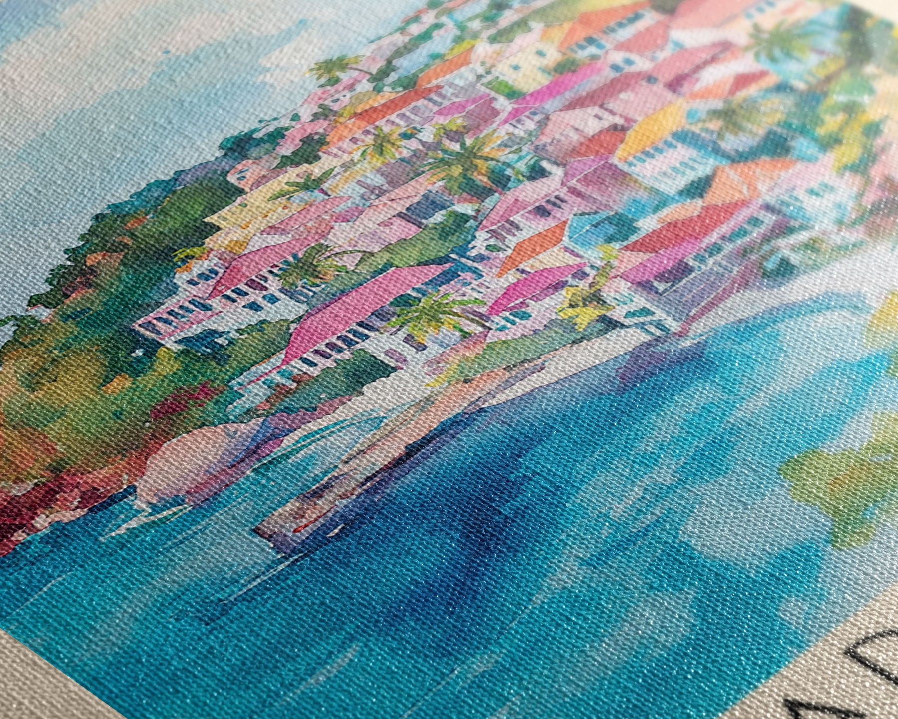 Most of our canvases are made in the USA, with the exception of canvases ordered with the light oak unstained frames, and any large canvases (24x48, 30x60, 16x48 and 20x60) ordered WITH a frame. These are temporarily made in and shipped from Europe, while we try to find a more consistent supplier in the USA.