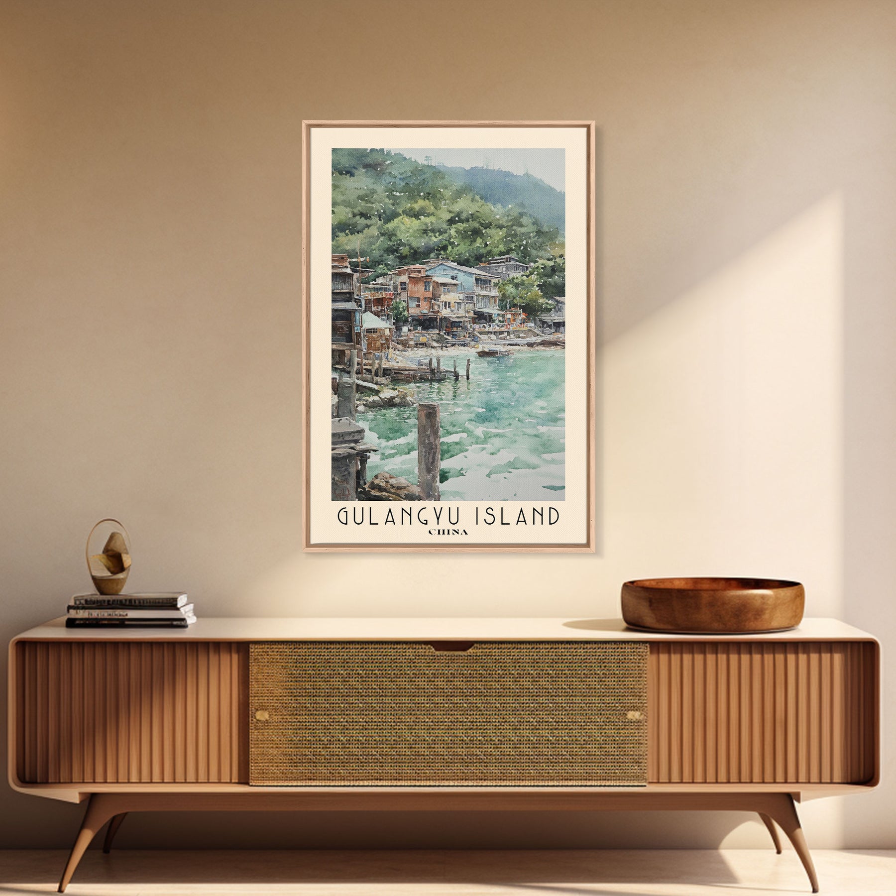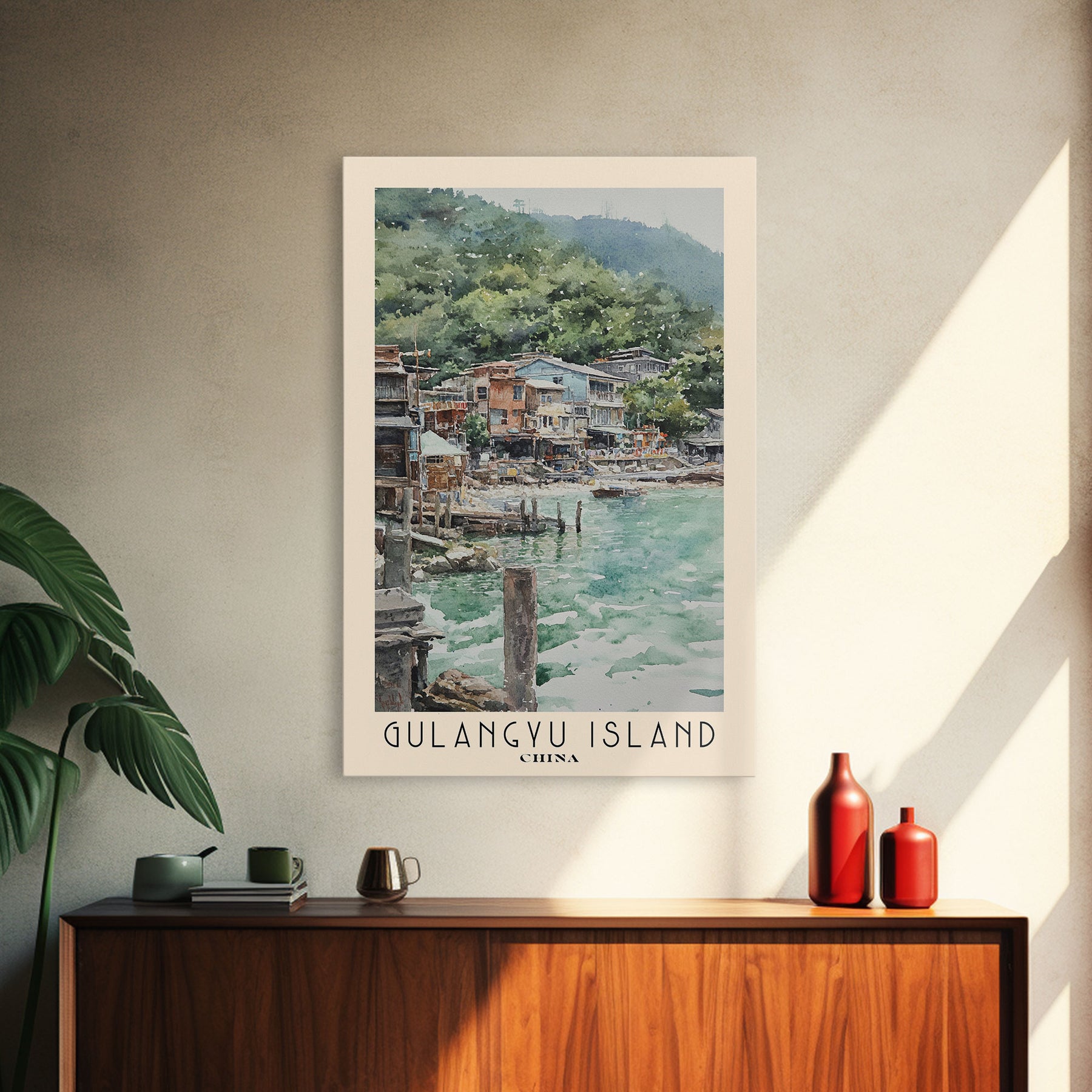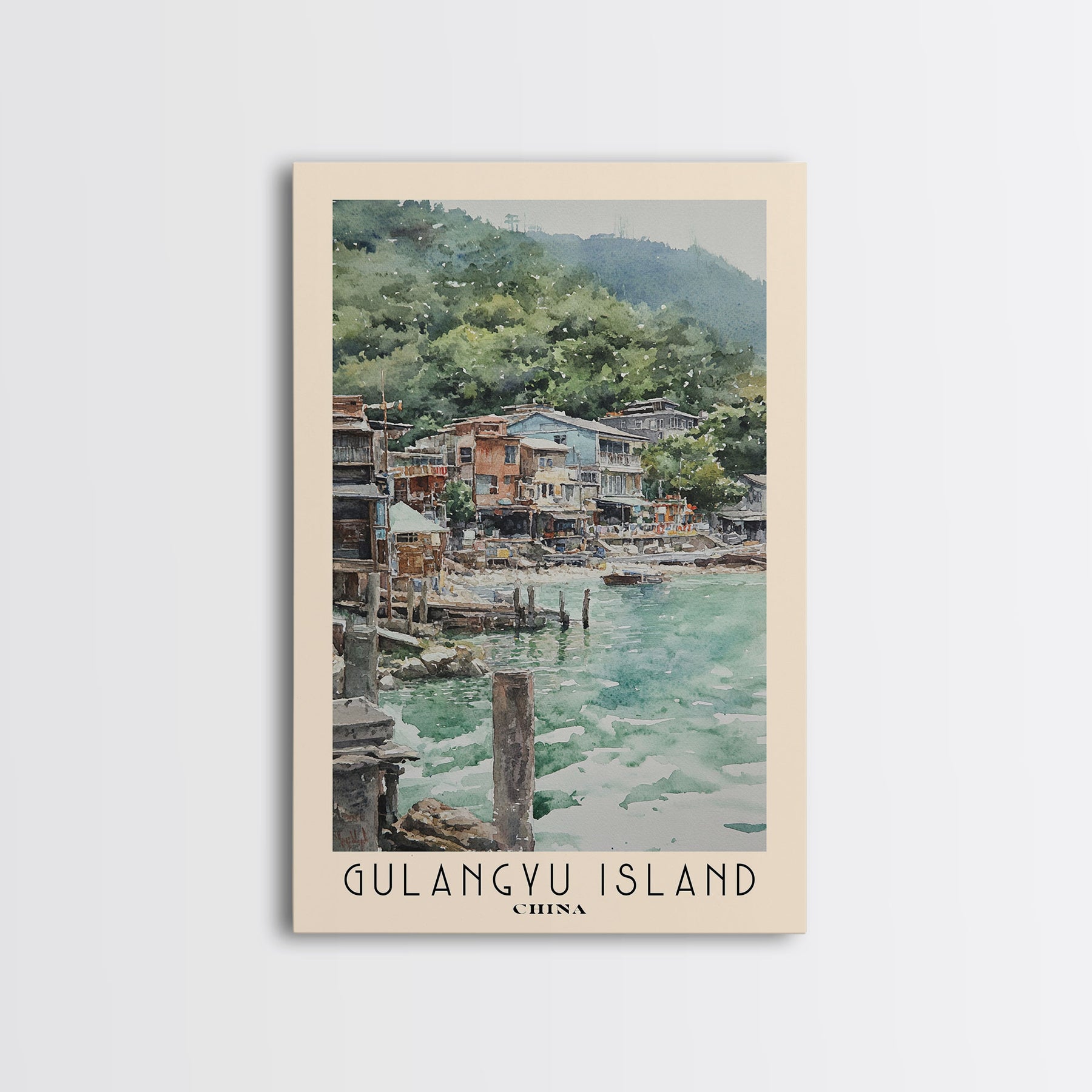 Gulangyu Island, China Watercolor Beach Print, Vacation Gift, China Wall Art, Beach Painting, Beach Decor, Beach Painting