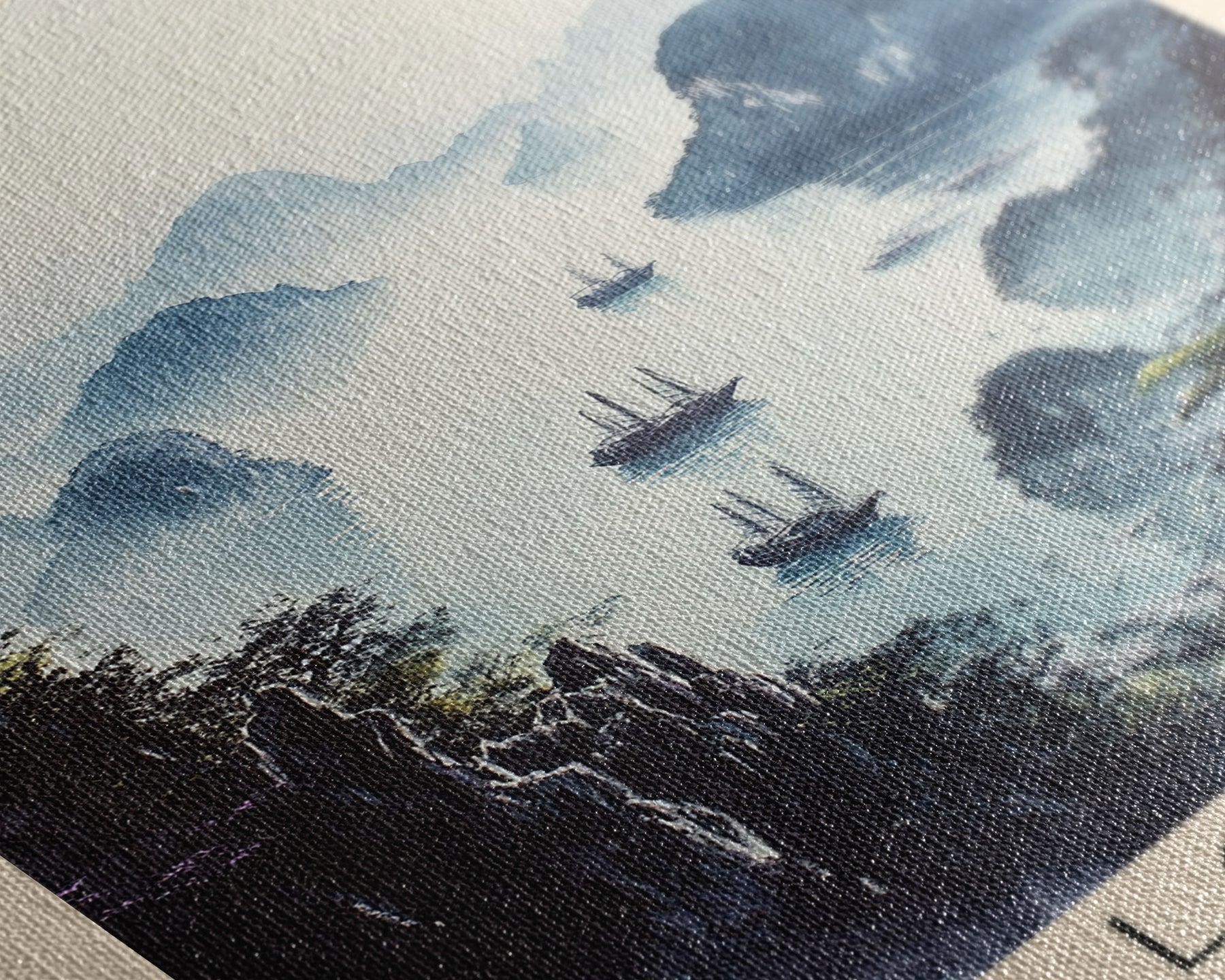 Most of our canvases are made in the USA, with the exception of canvases ordered with the light oak unstained frames, and any large canvases (24x48, 30x60, 16x48 and 20x60) ordered WITH a frame. These are temporarily made in and shipped from Europe, while we try to find a more consistent supplier in the USA.