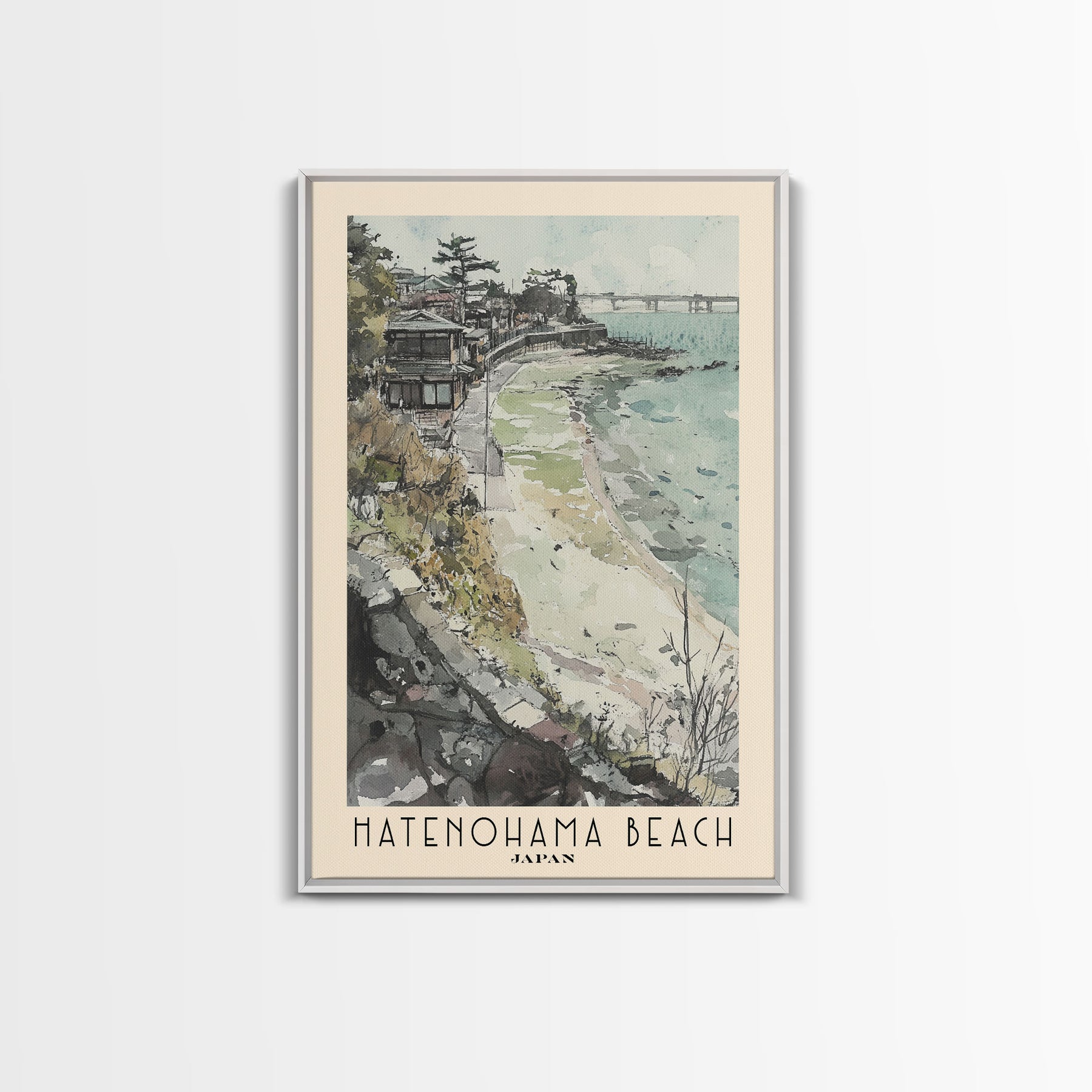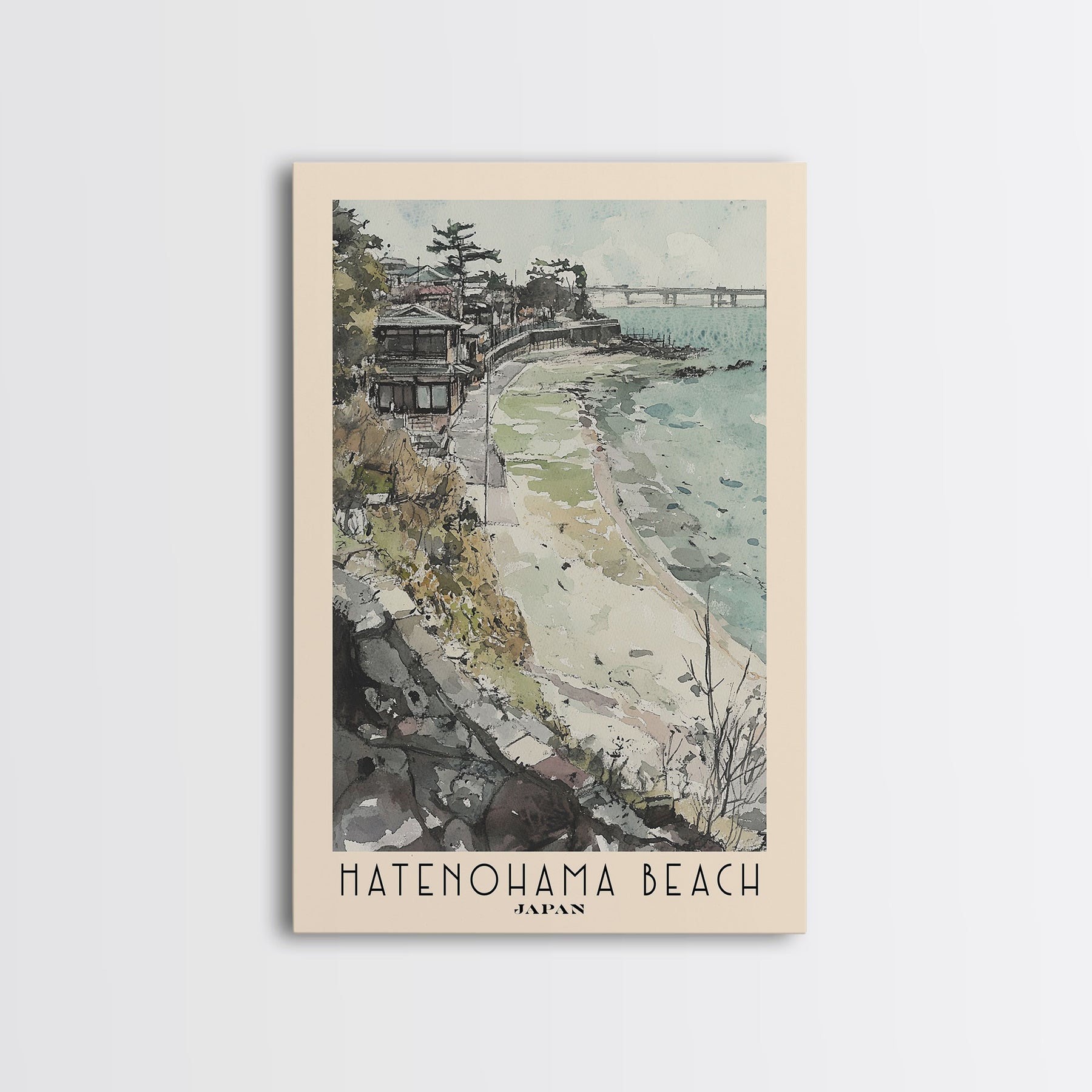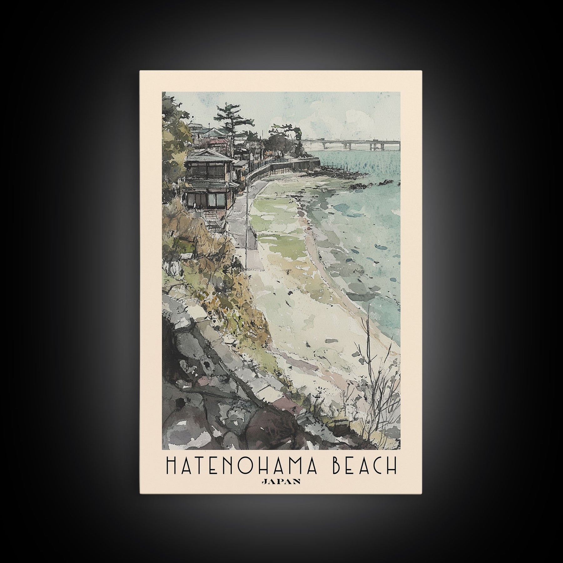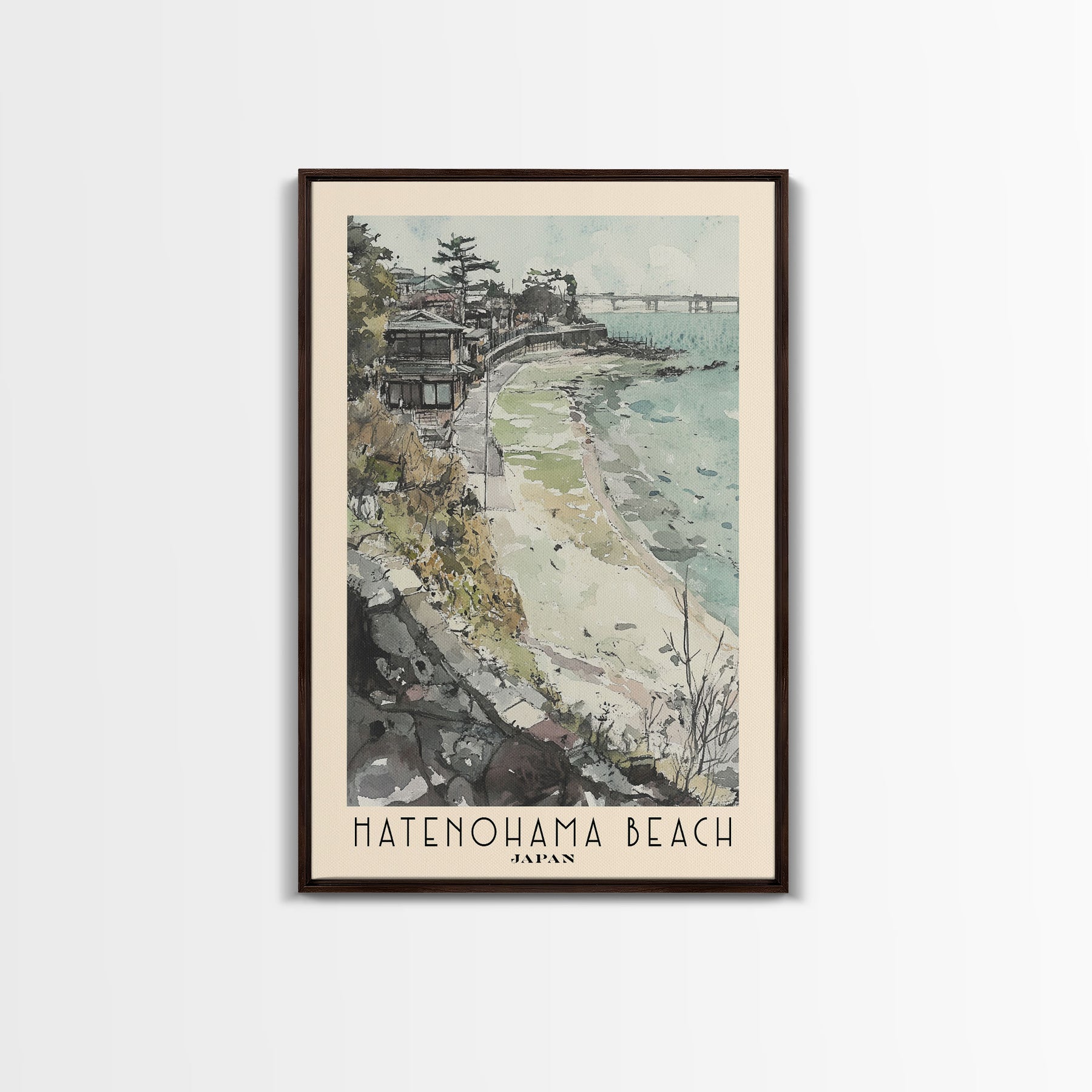 Hatenohama Beach, Japan Watercolor Print, Vacation Gift, Japan Wall Art, Beach Painting, Beach Decor, Large Wall Art, Wood Frame Art