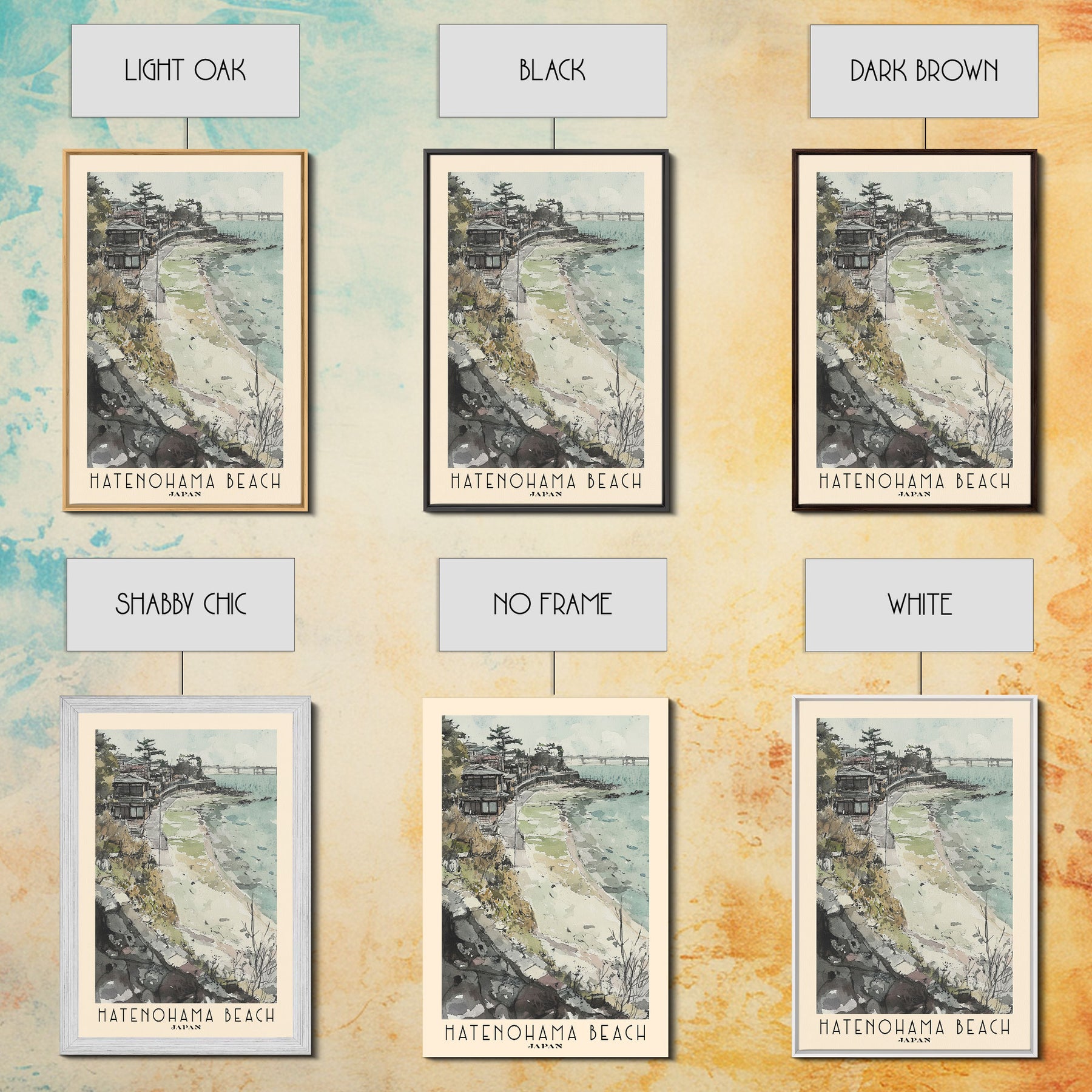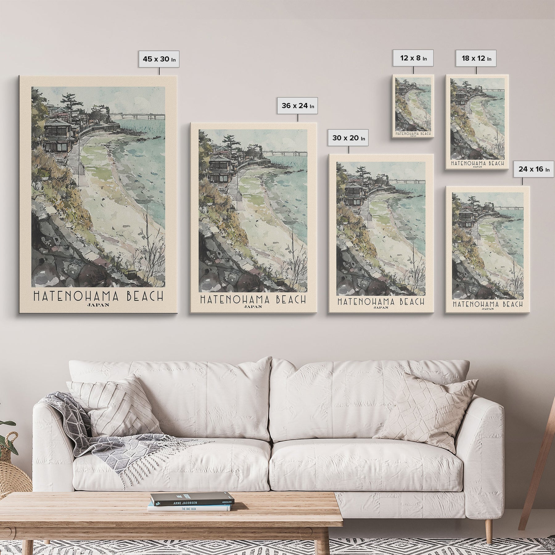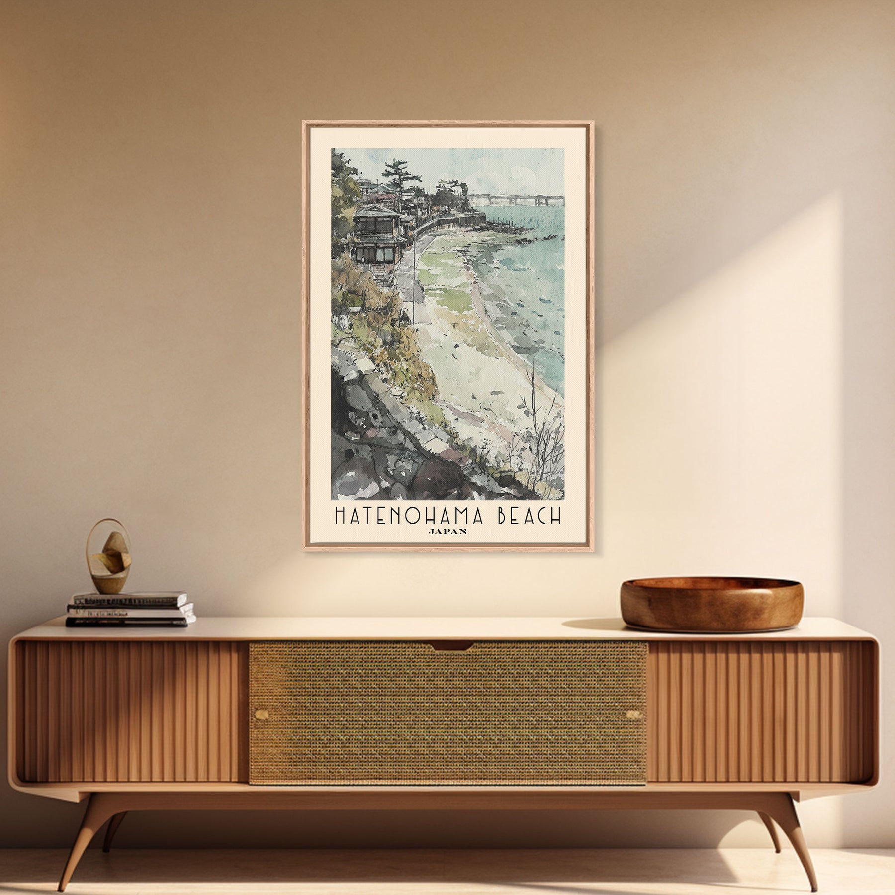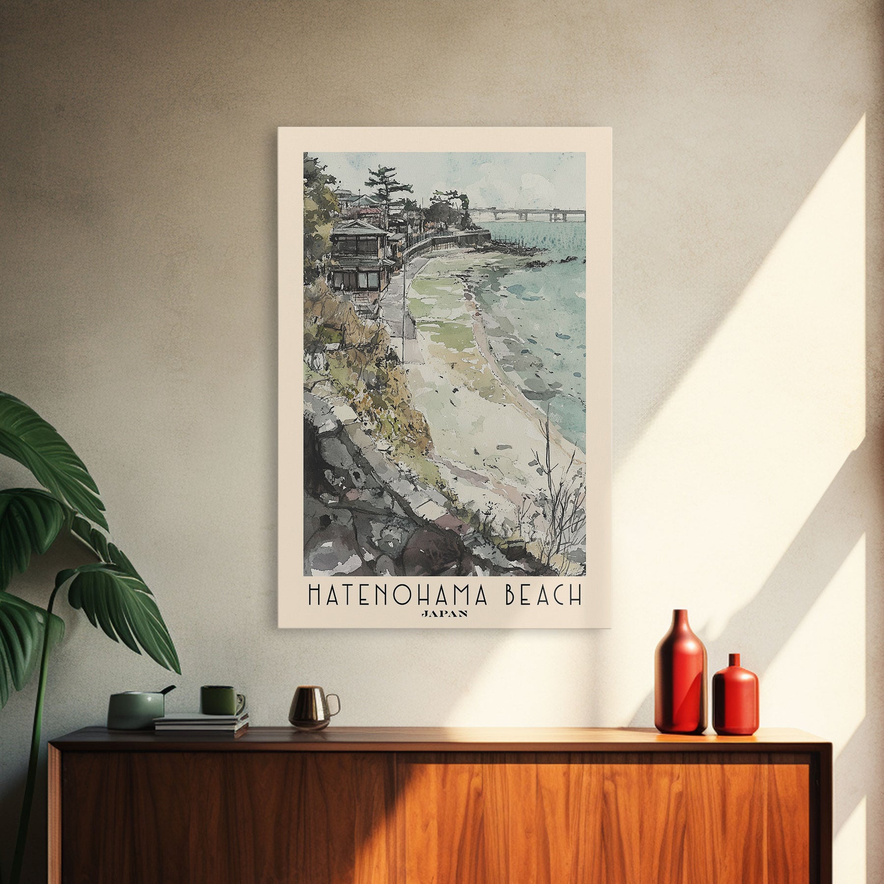 Hatenohama Beach, Japan Watercolor Print, Vacation Gift, Japan Wall Art, Beach Painting, Beach Decor, Large Wall Art, Wood Frame Art