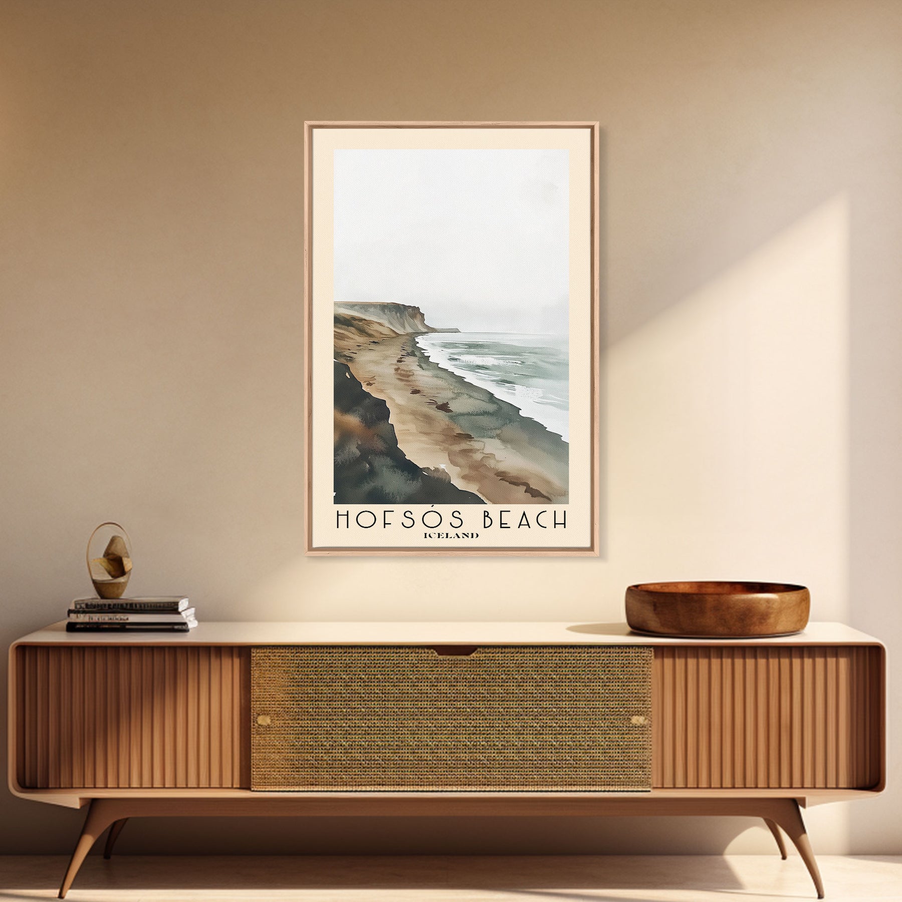 Hofsós Beach, Iceland Watercolor Beach Print, Vacation Gift, Iceland Wall Art, Framed Canvas Print, Framed Beach Painting
