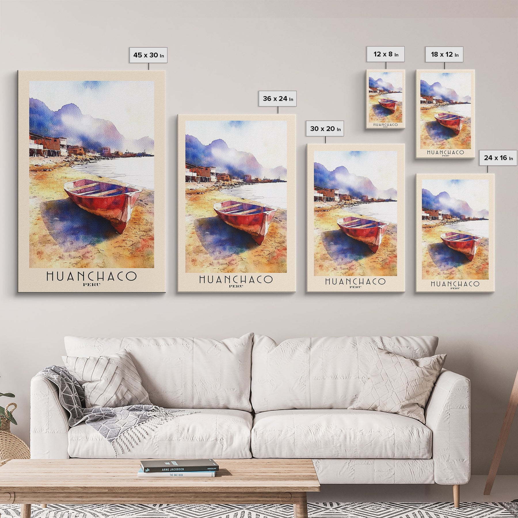Huanchaco, Peru Watercolor Beach Print, Vacation Gift, Peru Wall Art, Framed Canvas Print, Framed Beach Painting