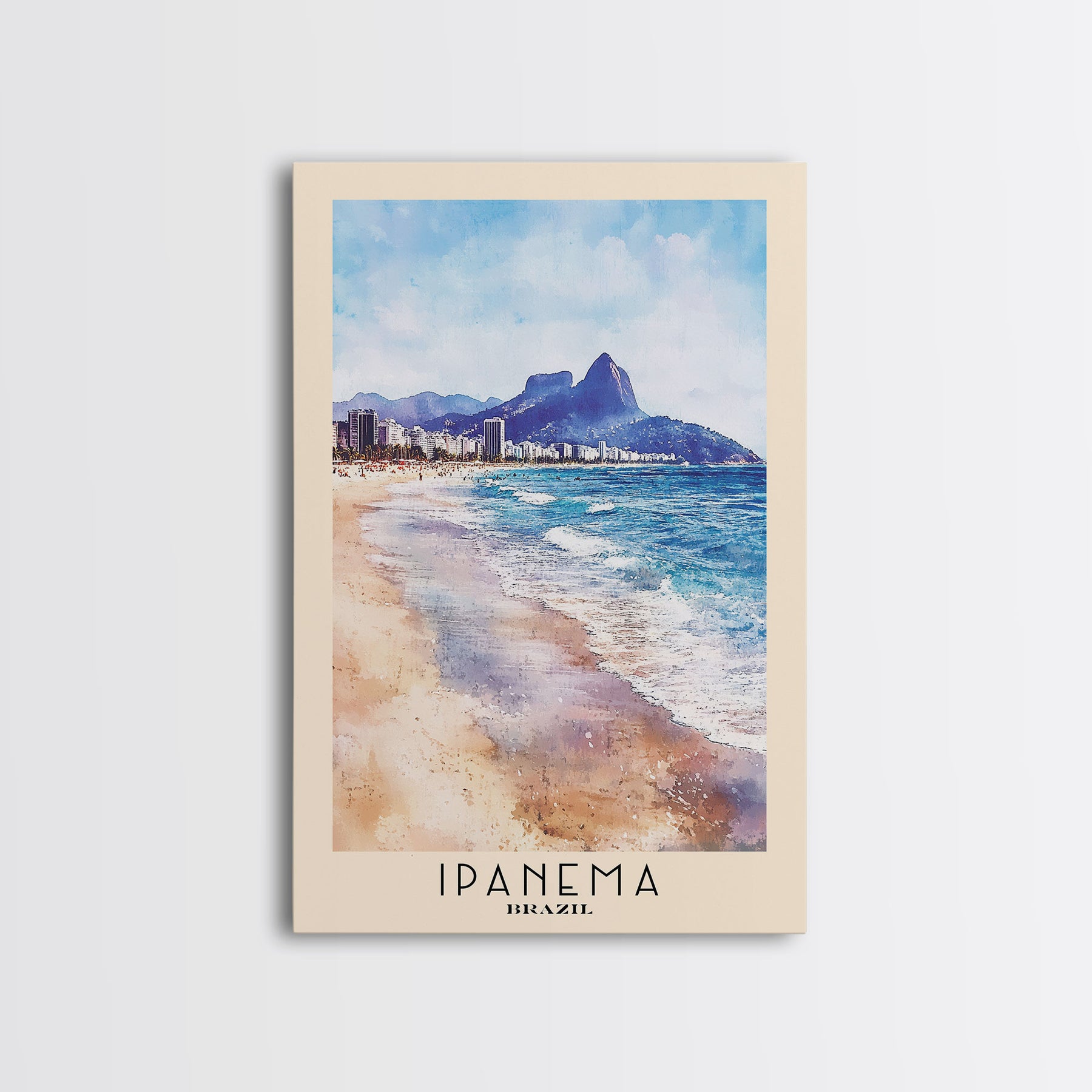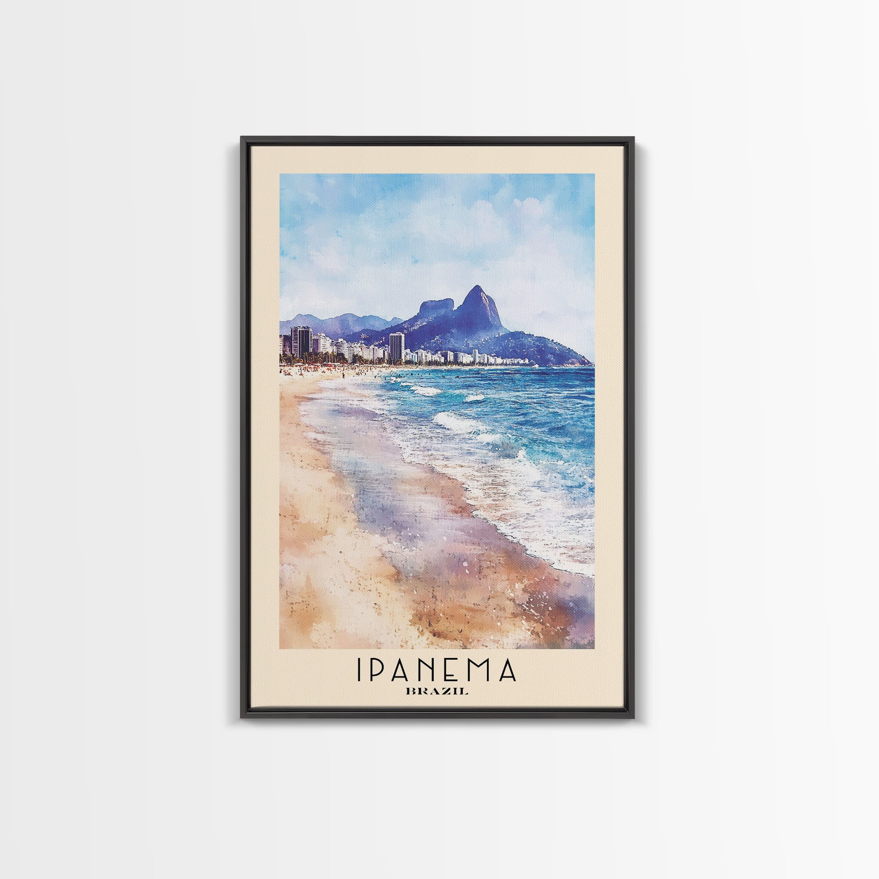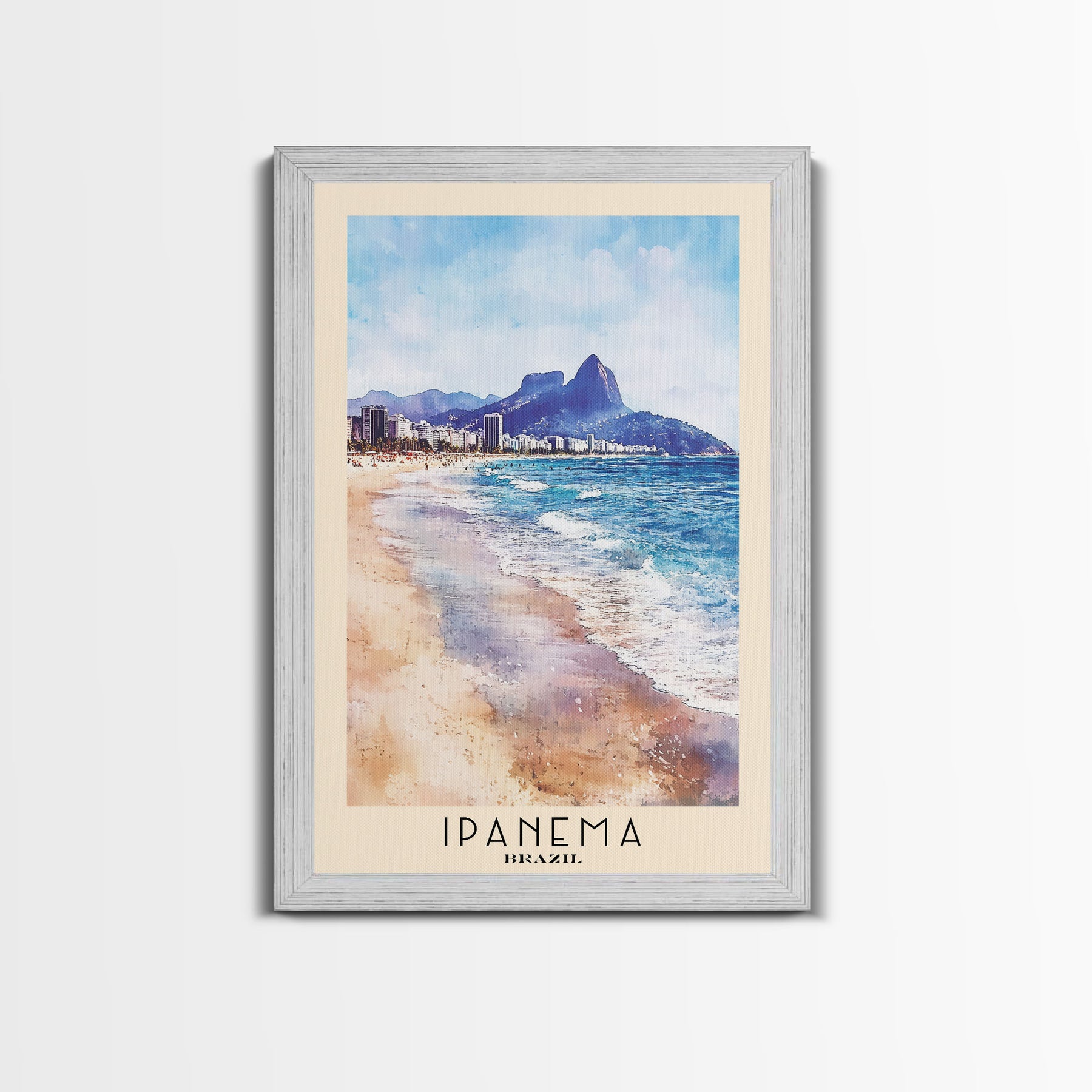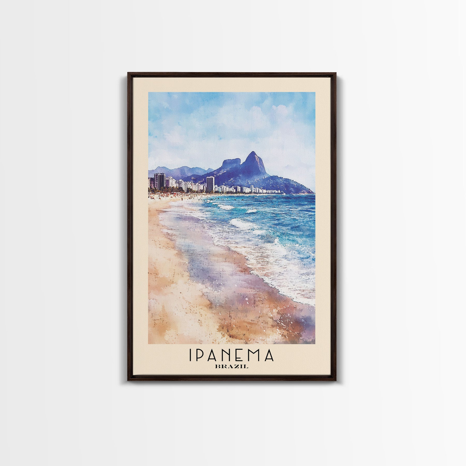 Ipanema, Brazil Watercolor Print, Vacation Gift, Brazil Wall Art, Beach Painting, Beach Decor, Large Wall Art, Wood Frame Art
