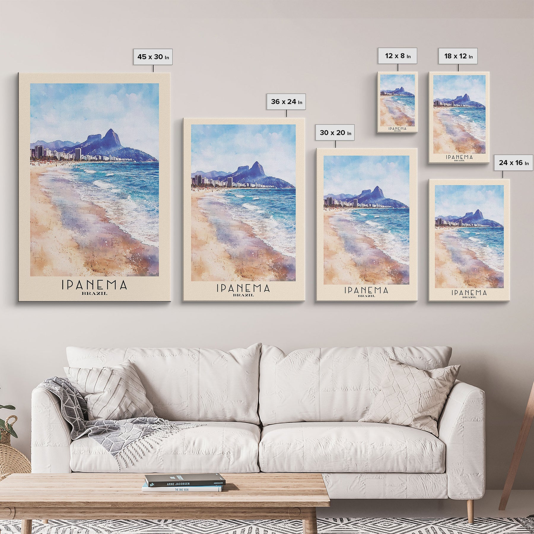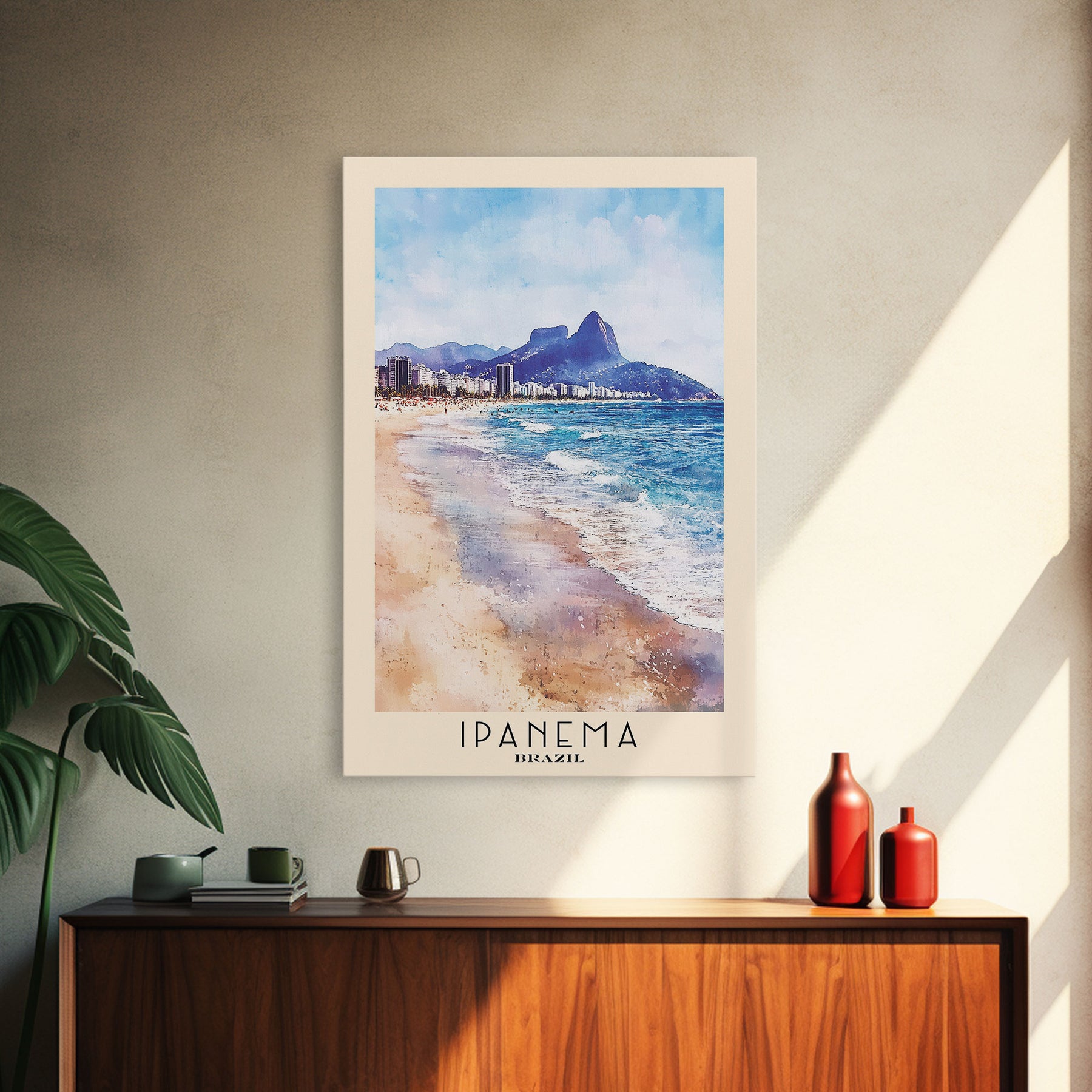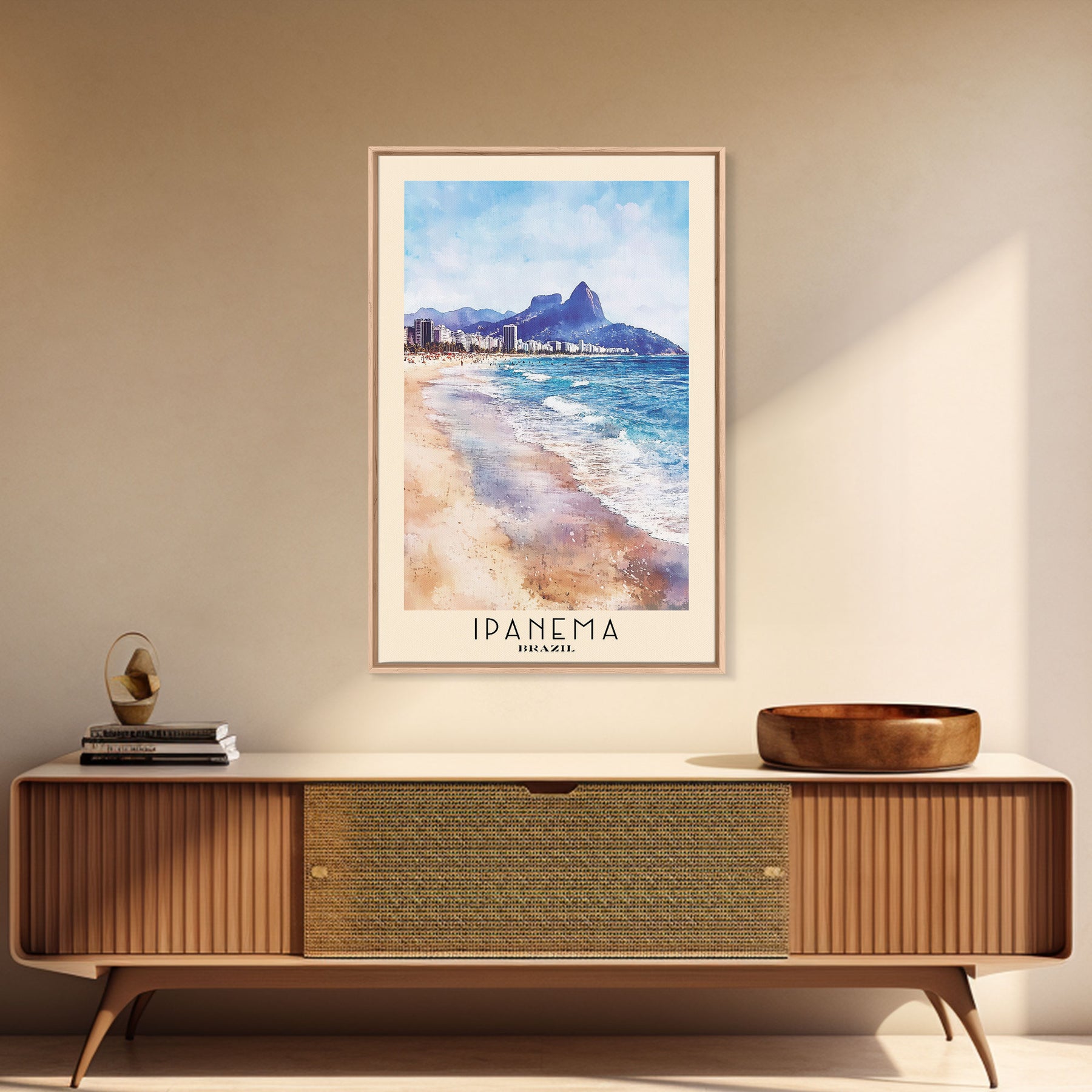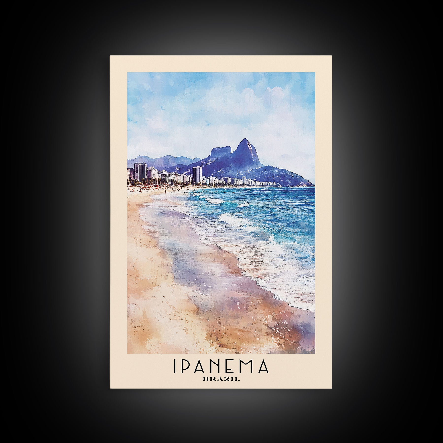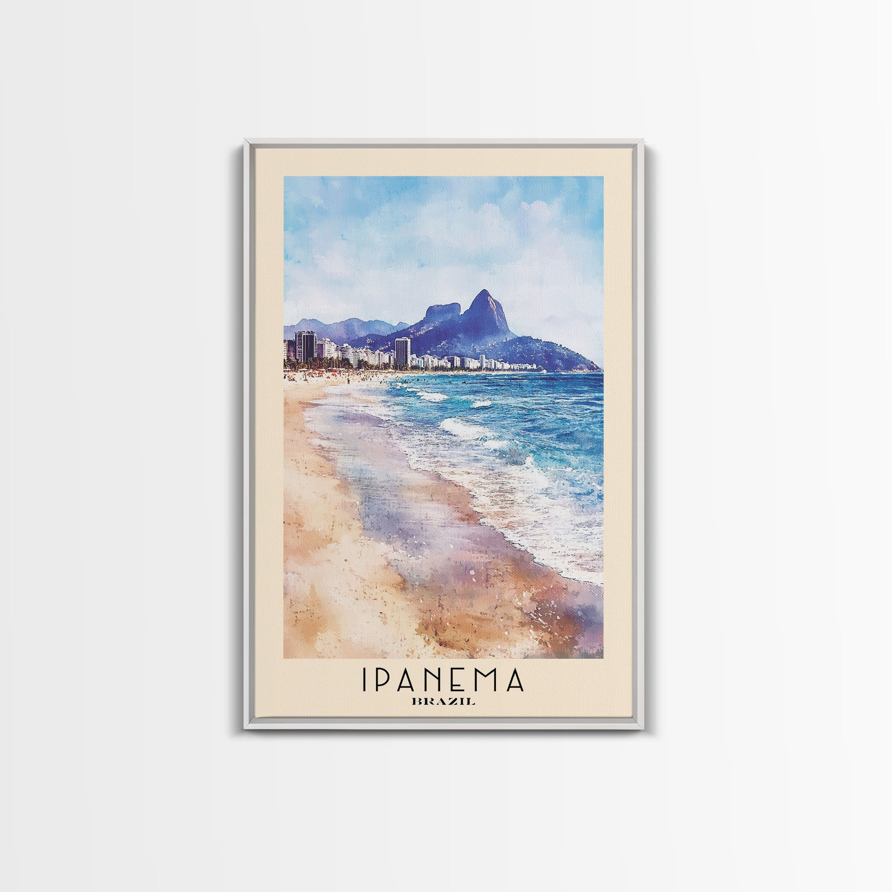 Ipanema, Brazil Watercolor Print, Vacation Gift, Brazil Wall Art, Beach Painting, Beach Decor, Large Wall Art, Wood Frame Art