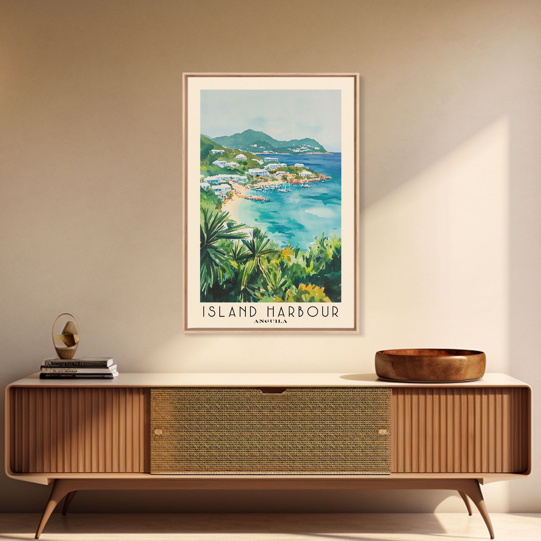 Island Harbour, Anguila Watercolor Print, Vacation Gift, Anguila Wall Art, Beach Painting, Beach Decor, Large Wall Art, Wood Frame Art