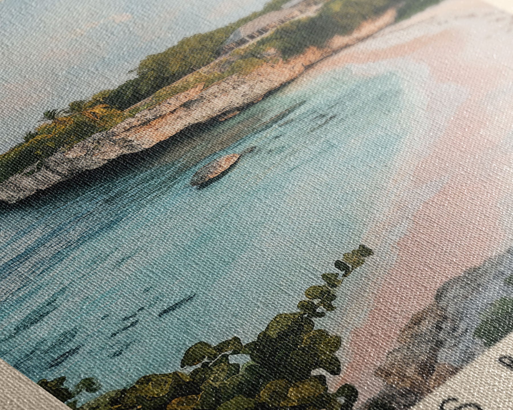 Most of our canvases are made in the USA, with the exception of canvases ordered with the light oak unstained frames, and any large canvases (24x48, 30x60, 16x48 and 20x60) ordered WITH a frame. These are temporarily made in and shipped from Europe, while we try to find a more consistent supplier in the USA.