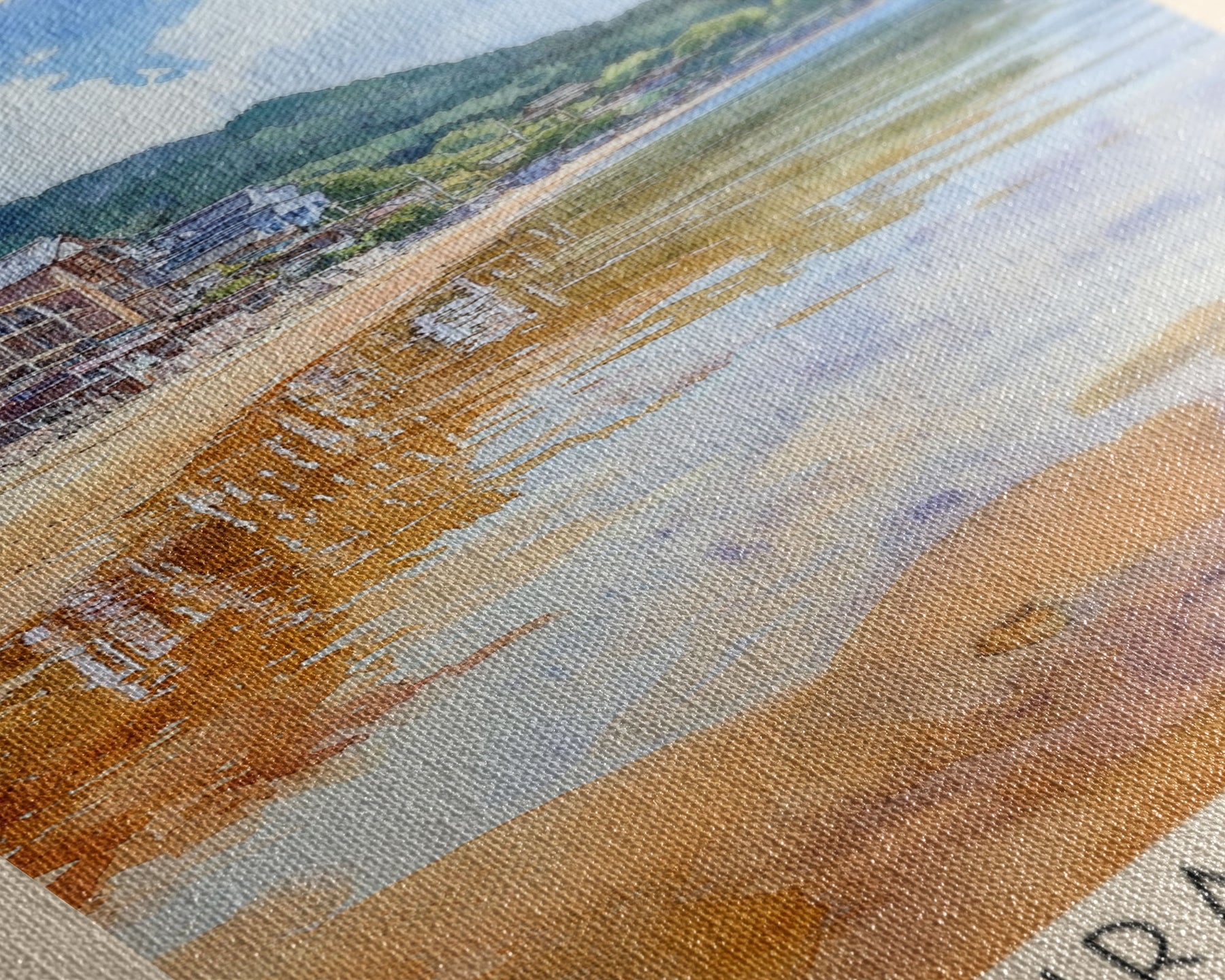 Most of our canvases are made in the USA, with the exception of canvases ordered with the light oak unstained frames, and any large canvases (24x48, 30x60, 16x48 and 20x60) ordered WITH a frame. These are temporarily made in and shipped from Europe, while we try to find a more consistent supplier in the USA.
