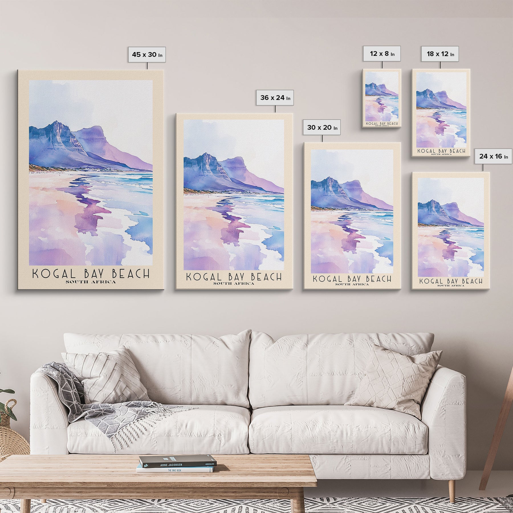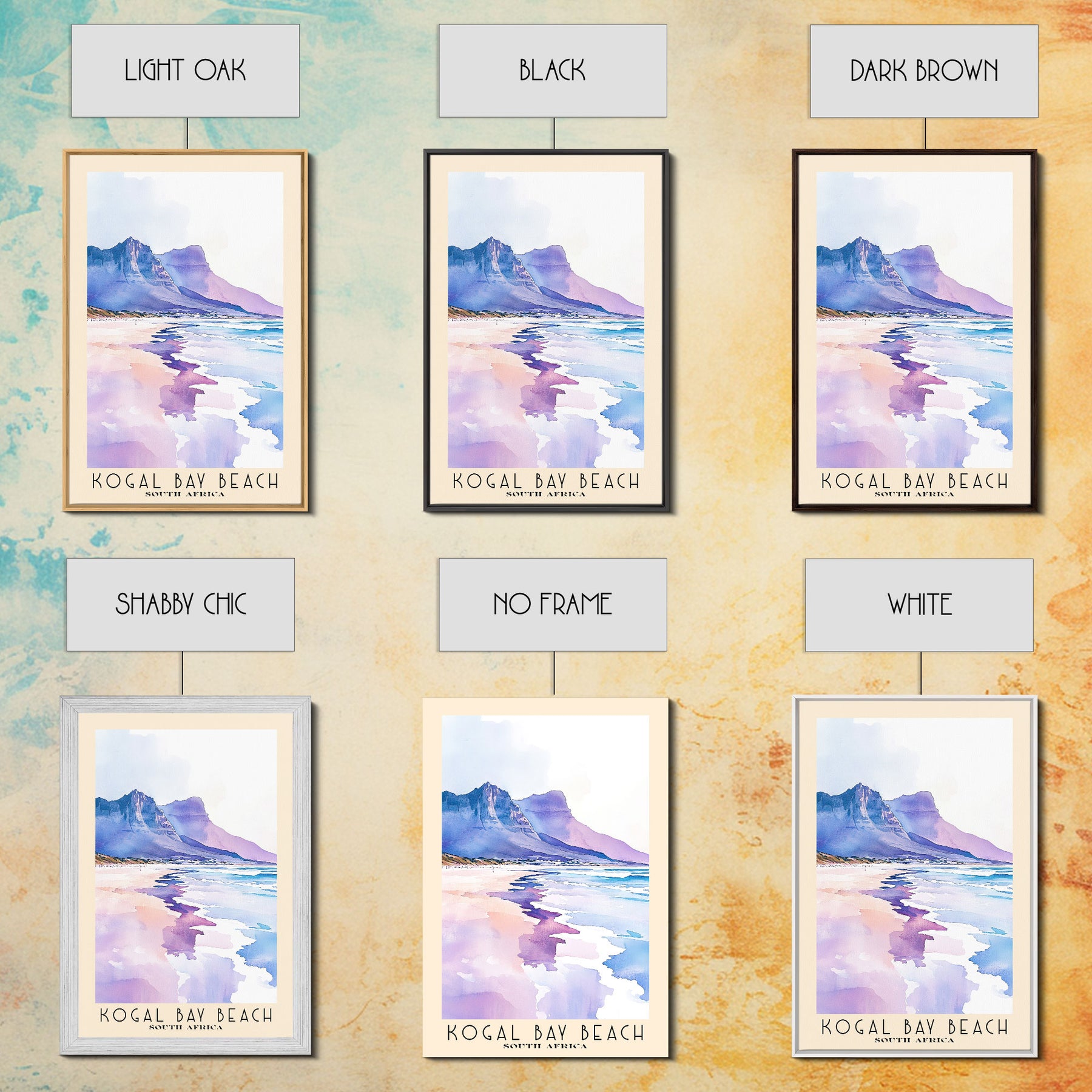 Kogal Bay Beach, South Africa Watercolor Print, Vacation Gift, South Africa Wall Art, Beach Painting, Beach Decor, Large Wall Art, Wood Frame Art