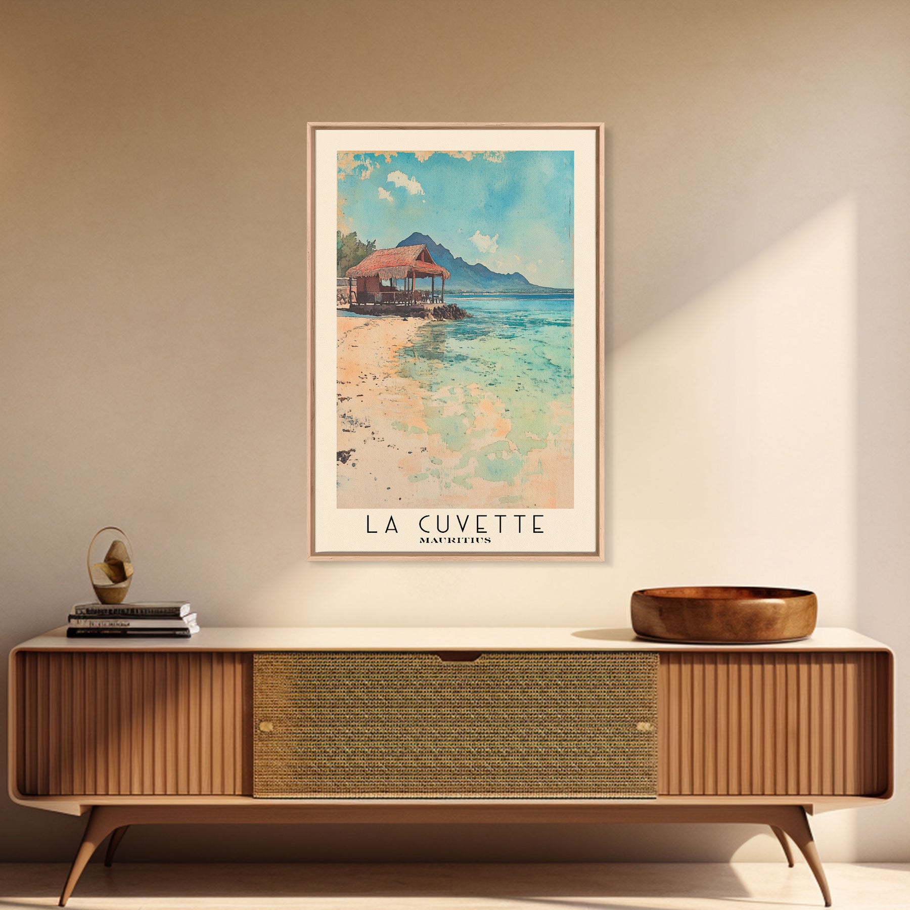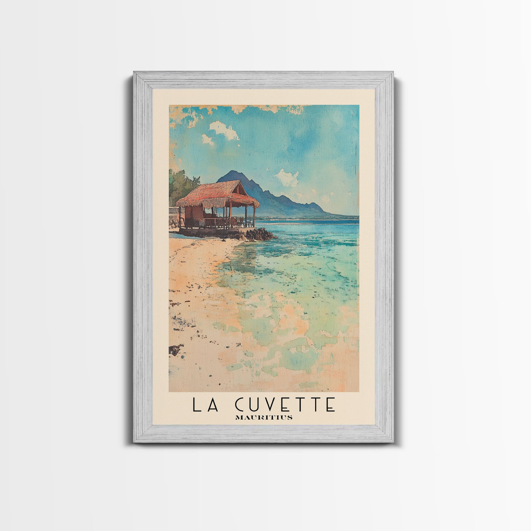 La Cuvette, Mauritius Watercolor Beach Print, Vacation Gift, Mauritius Wall Art, Framed Canvas Print, Framed Beach Painting