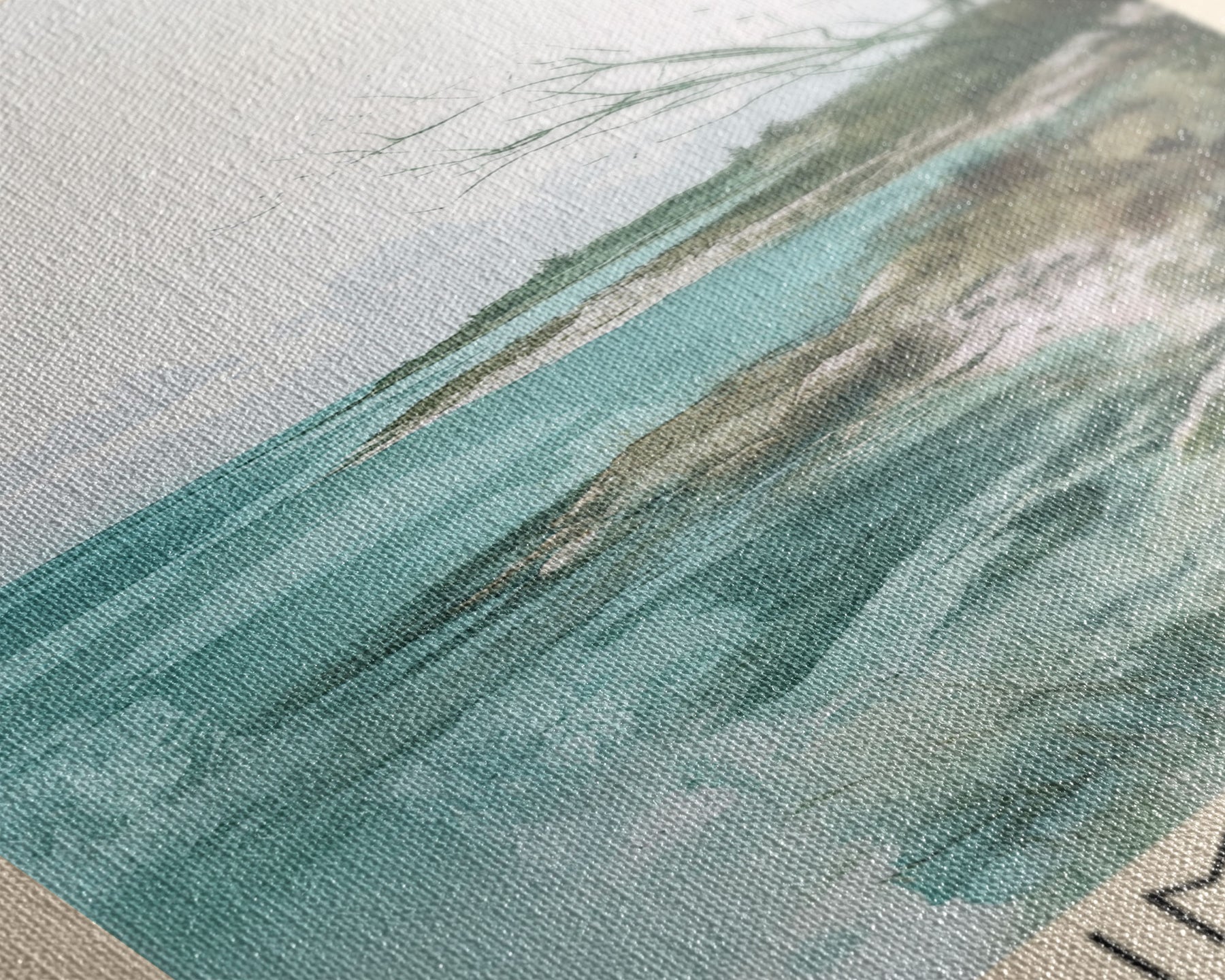 Most of our canvases are made in the USA, with the exception of canvases ordered with the light oak unstained frames, and any large canvases (24x48, 30x60, 16x48 and 20x60) ordered WITH a frame. These are temporarily made in and shipped from Europe, while we try to find a more consistent supplier in the USA.