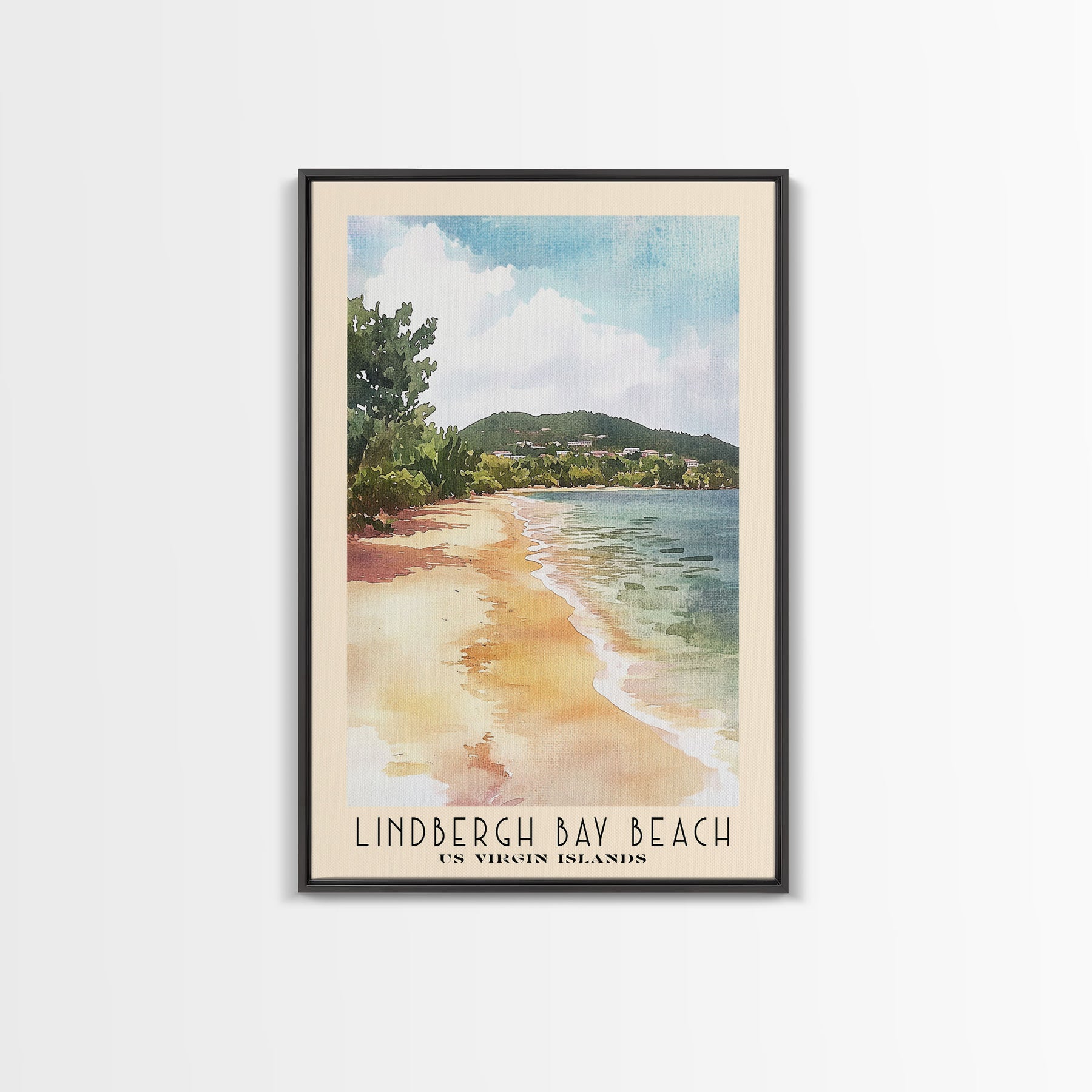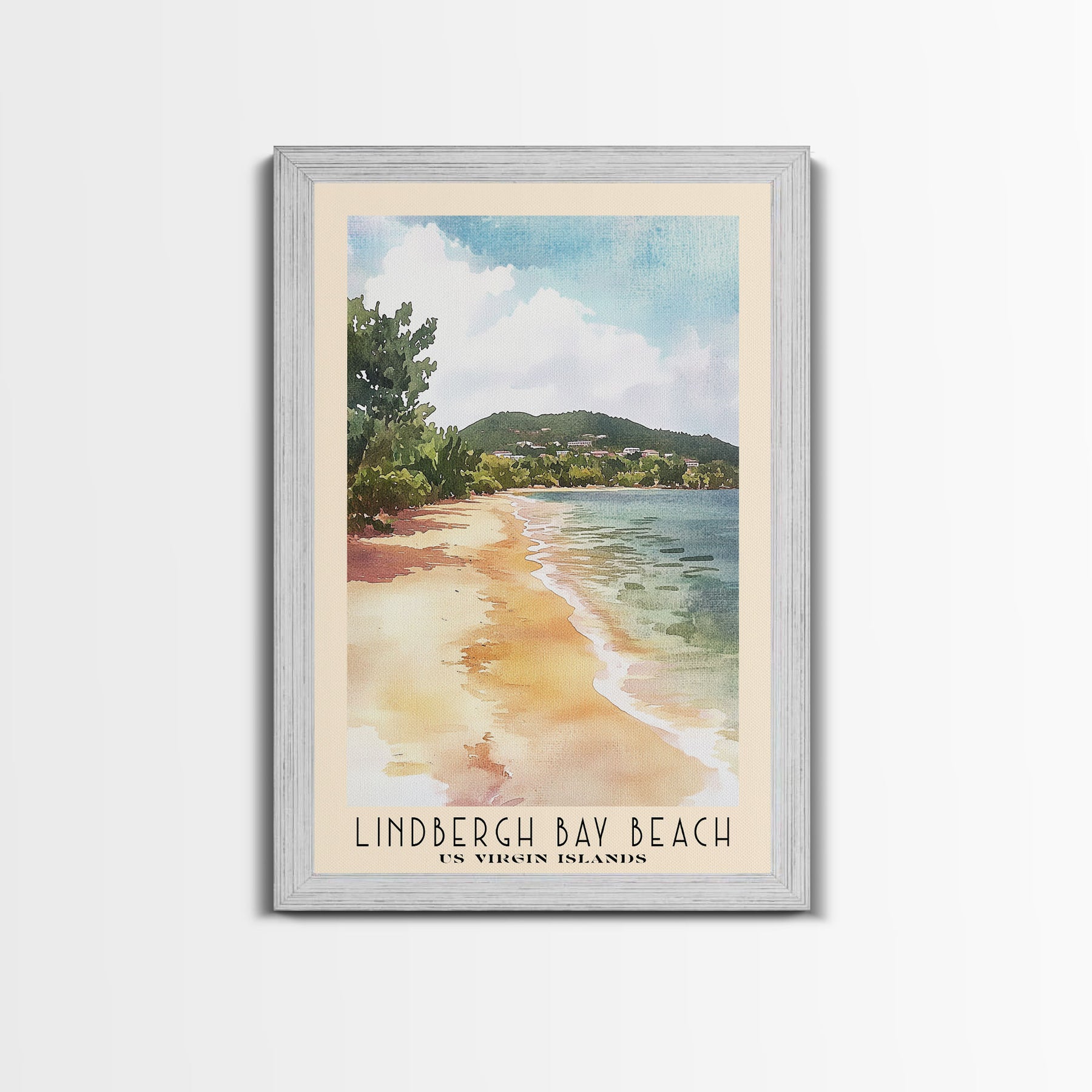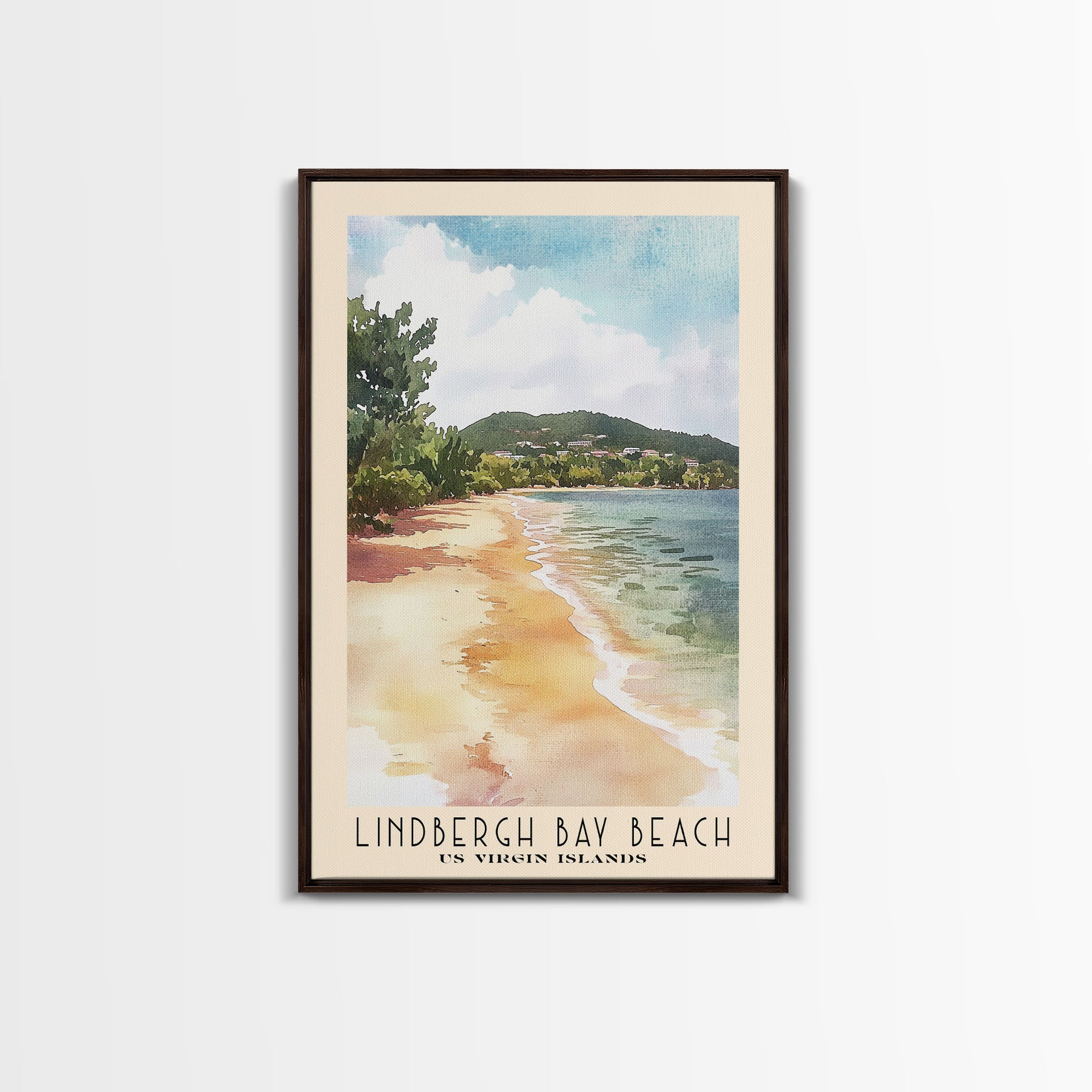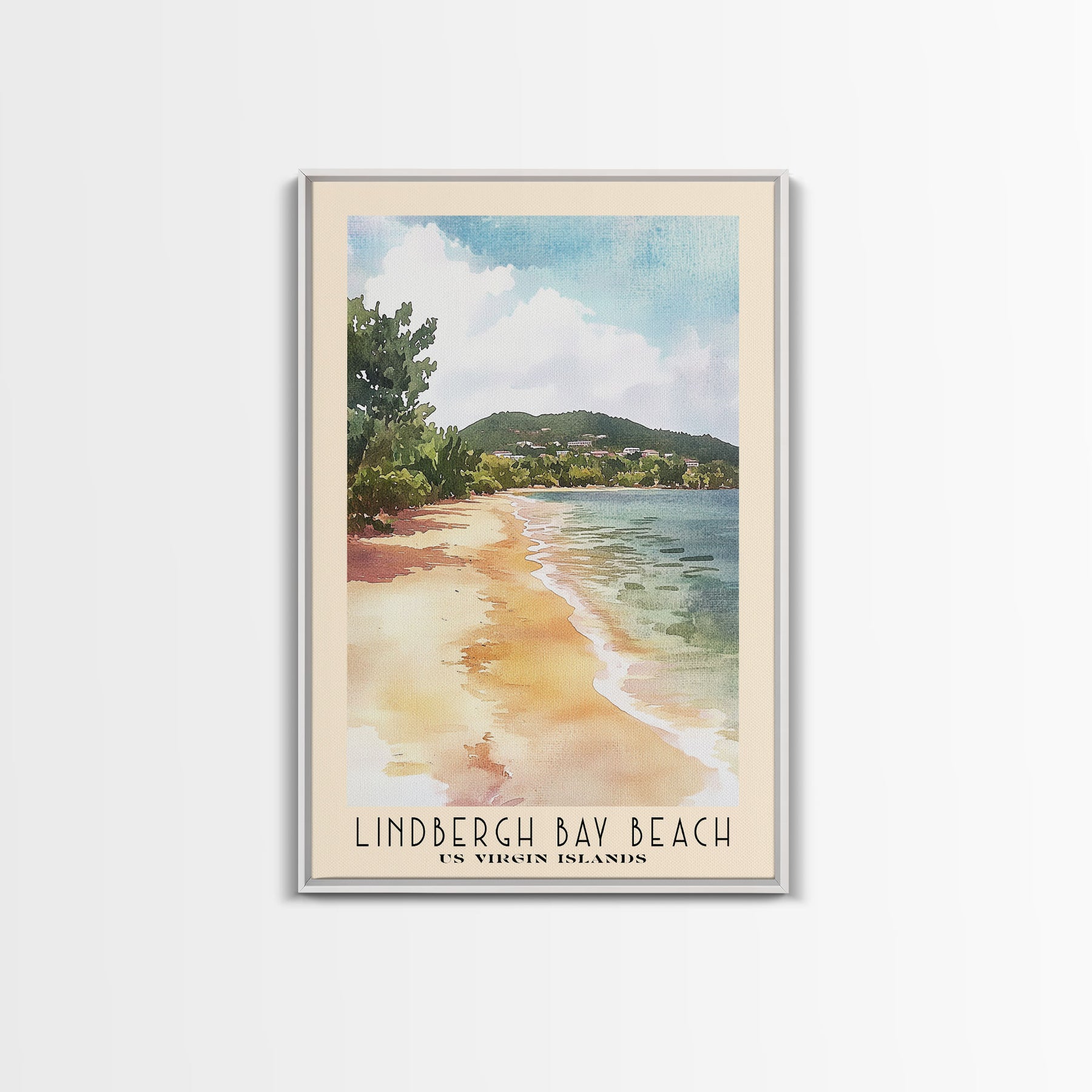 Lindbergh Bay Beach, US Virgin islands Watercolor Beach Print, Vacation Gift, US Virgin islands Wall Art, Framed Canvas Print, Framed Beach Painting