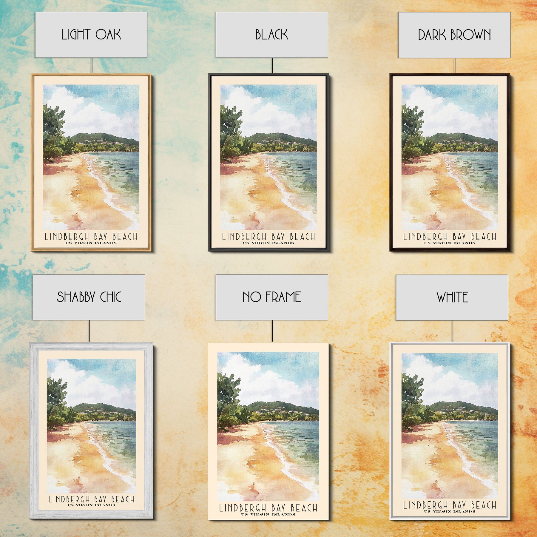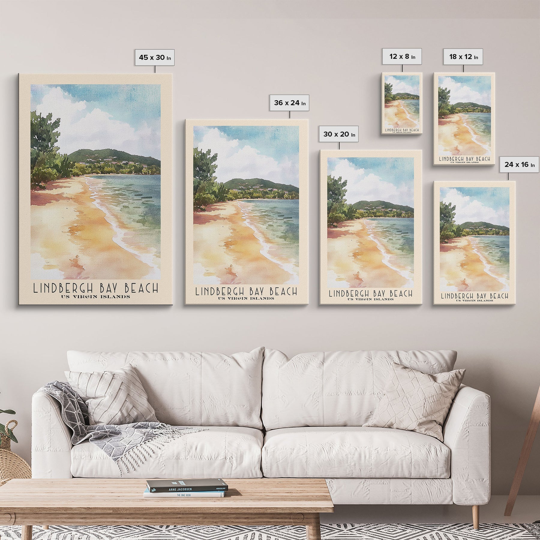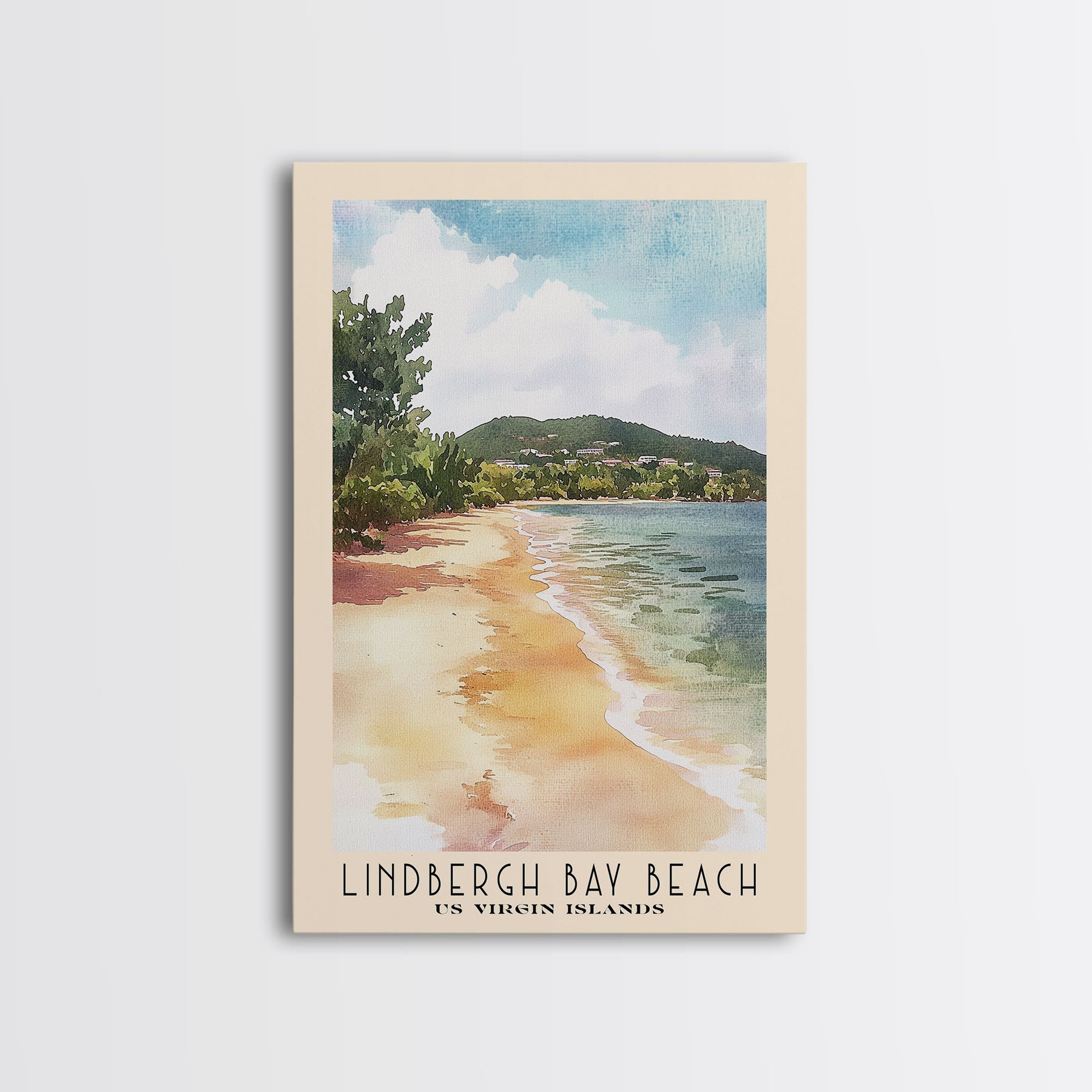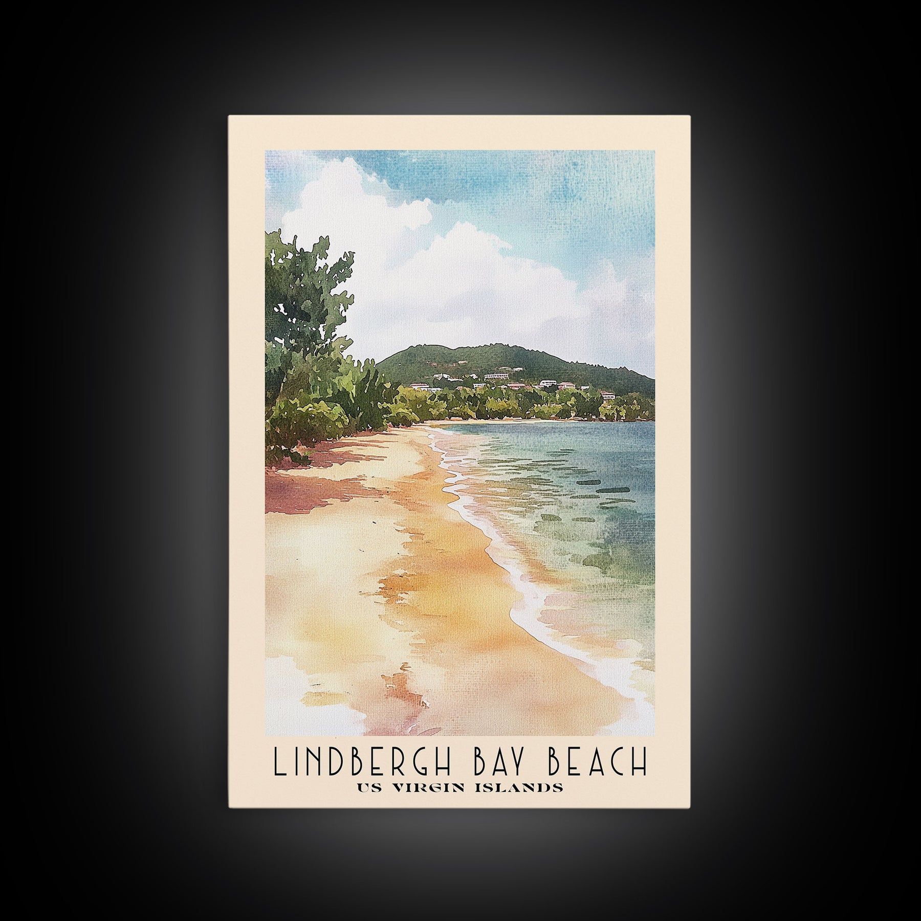 Lindbergh Bay Beach, US Virgin islands Watercolor Beach Print, Vacation Gift, US Virgin islands Wall Art, Framed Canvas Print, Framed Beach Painting