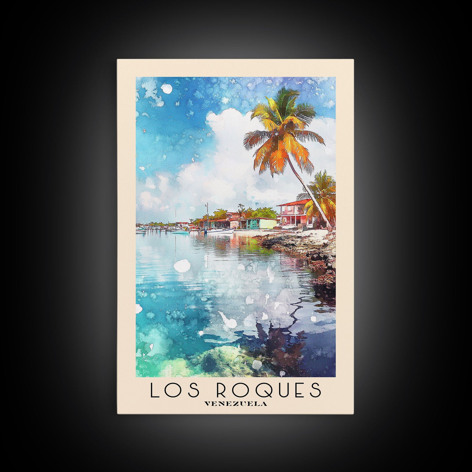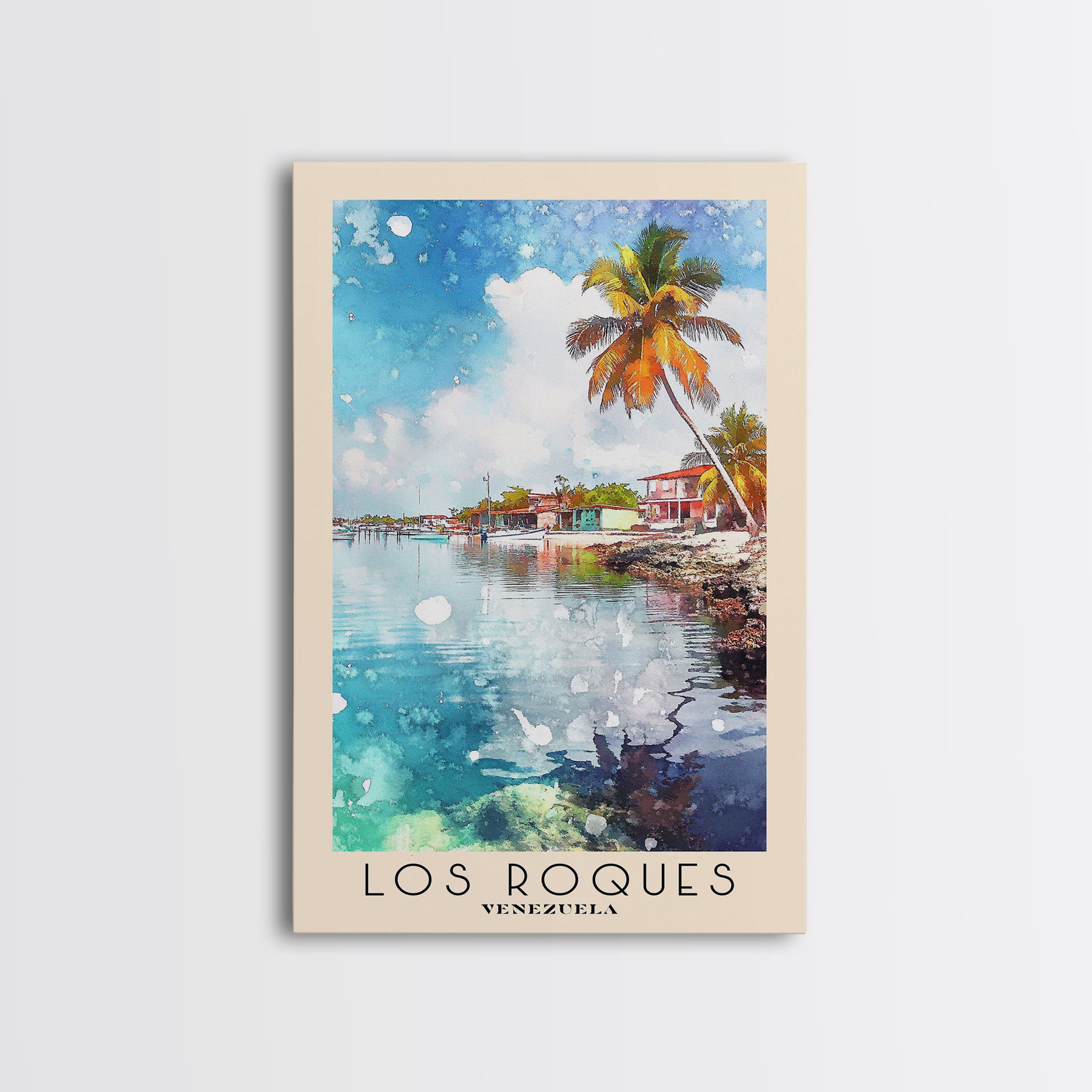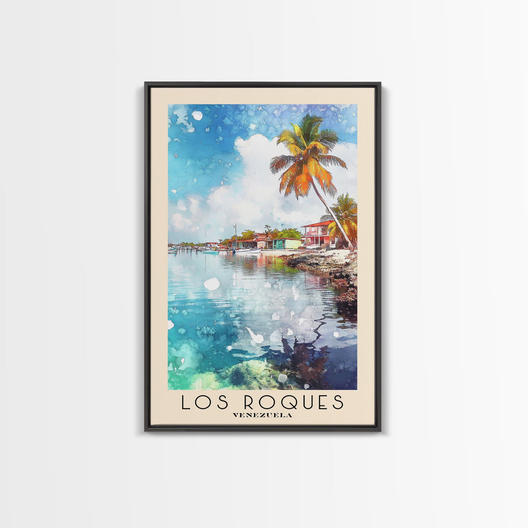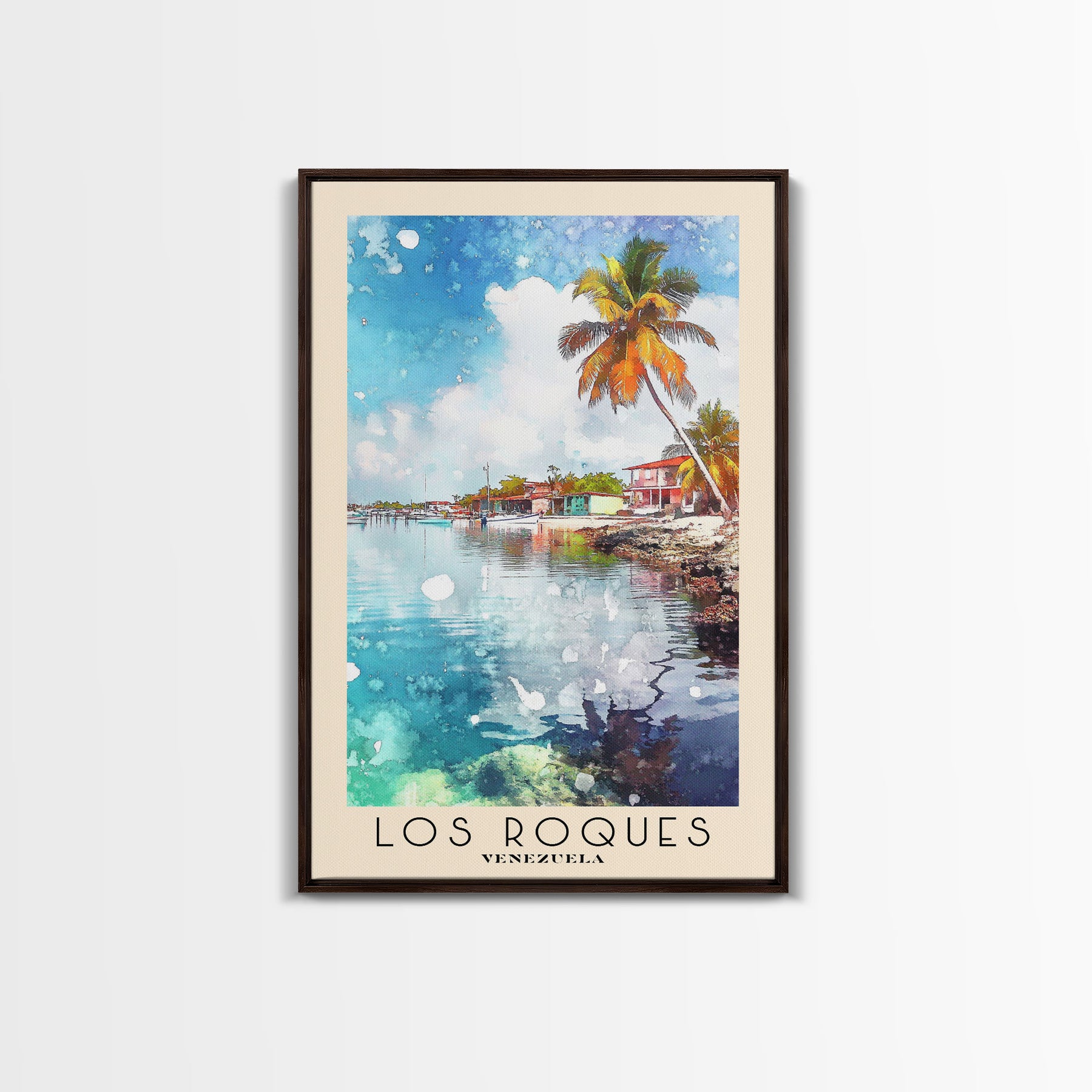 Los Roques, Venezuela Watercolor Beach Print, Vacation Gift, Venezuela Wall Art, Framed Canvas Print, Framed Beach Painting