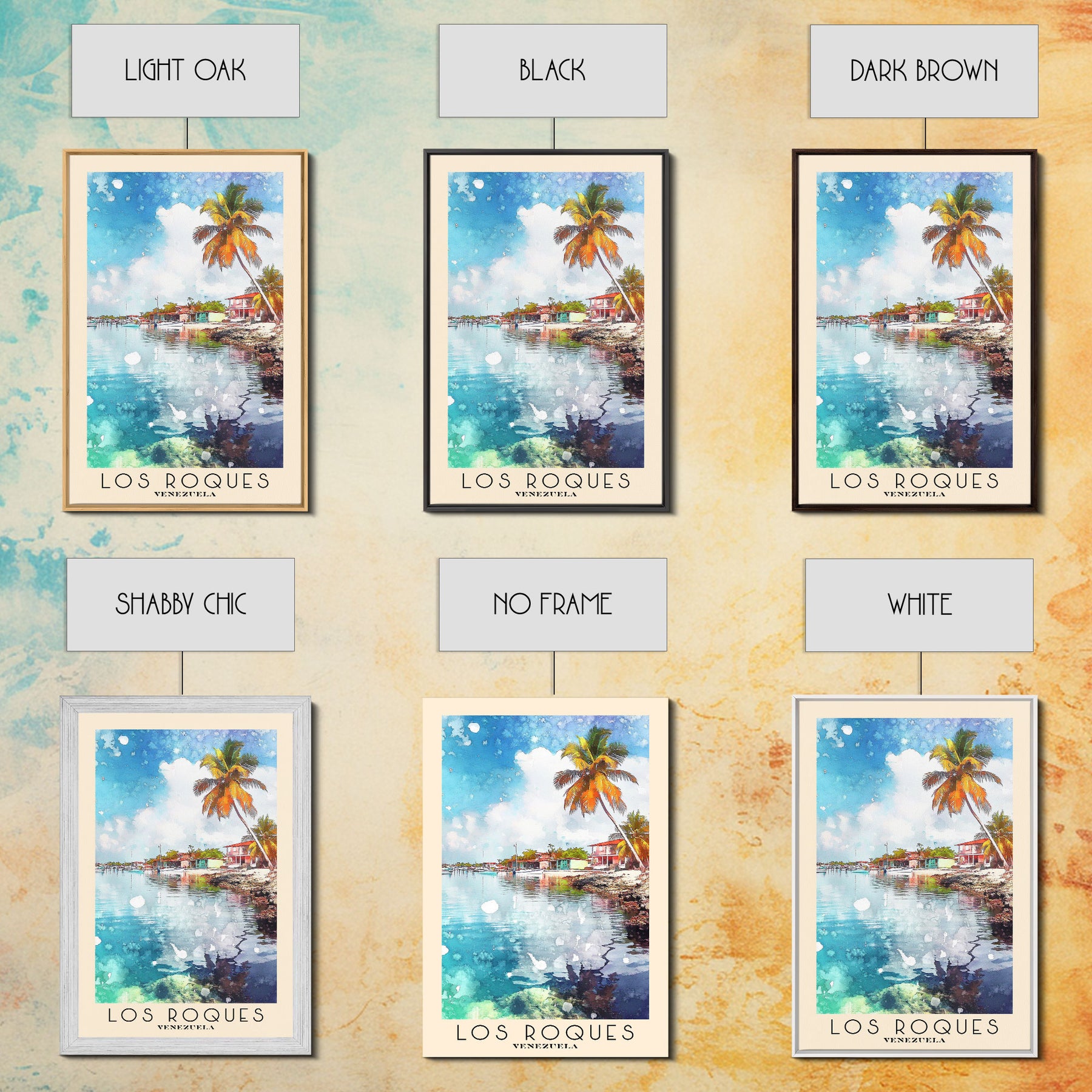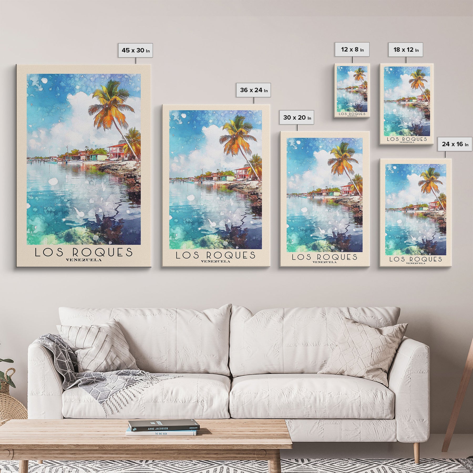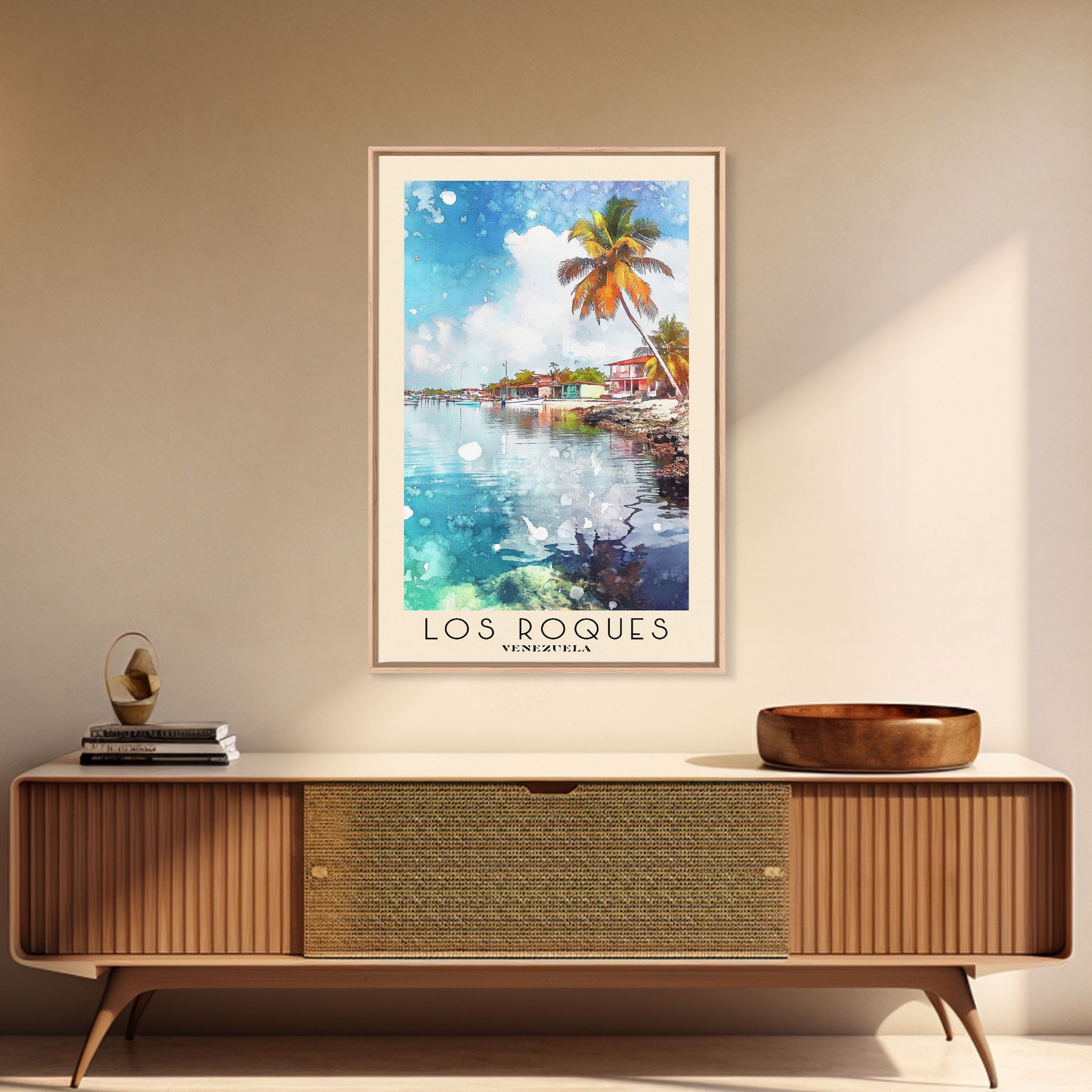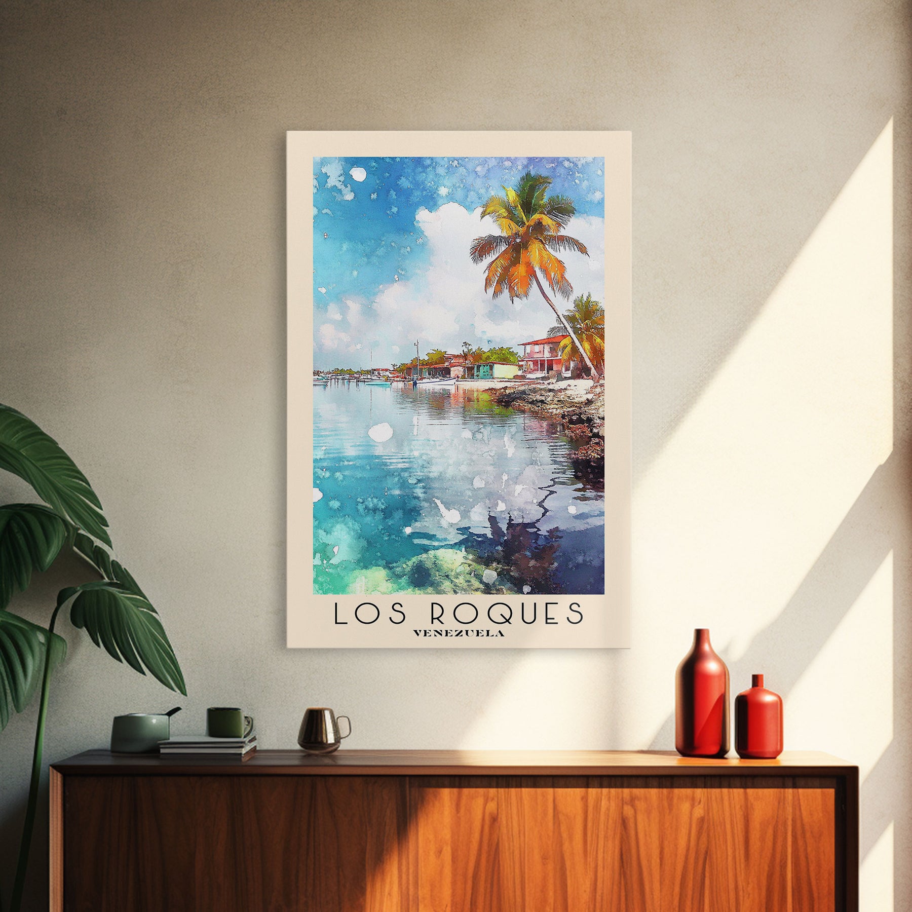 Los Roques, Venezuela Watercolor Beach Print, Vacation Gift, Venezuela Wall Art, Framed Canvas Print, Framed Beach Painting