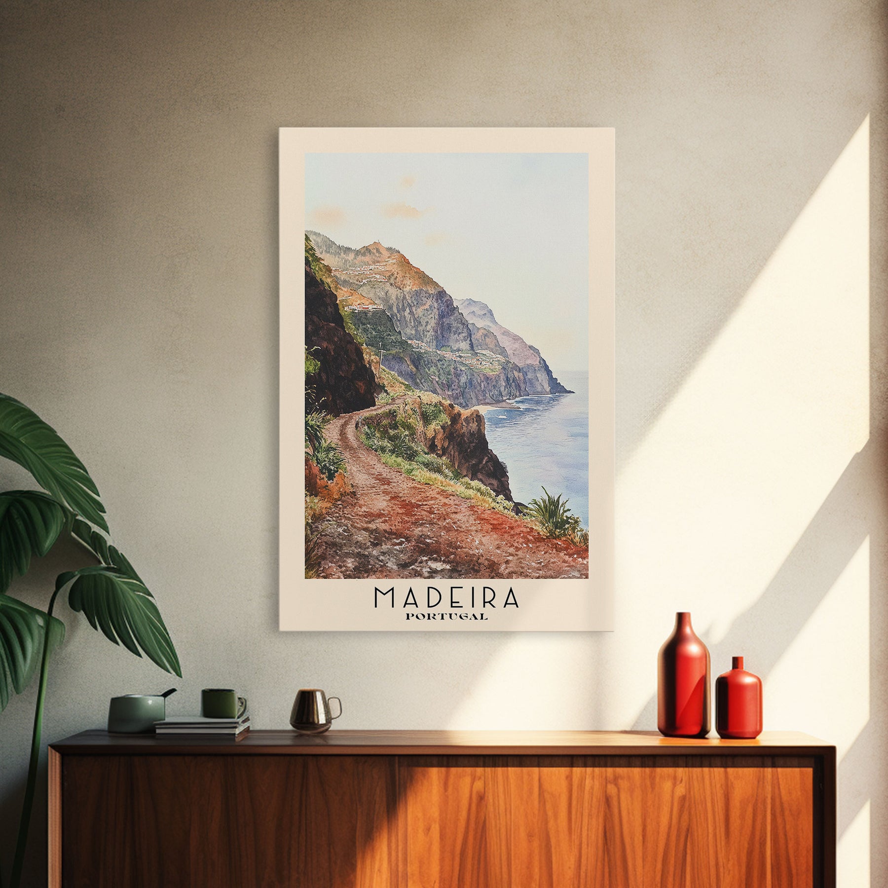 Madeira, Portugal Watercolor Beach Print, Vacation Gift, Portugal Wall Art, Beach Painting, Beach Decor, Beach Painting