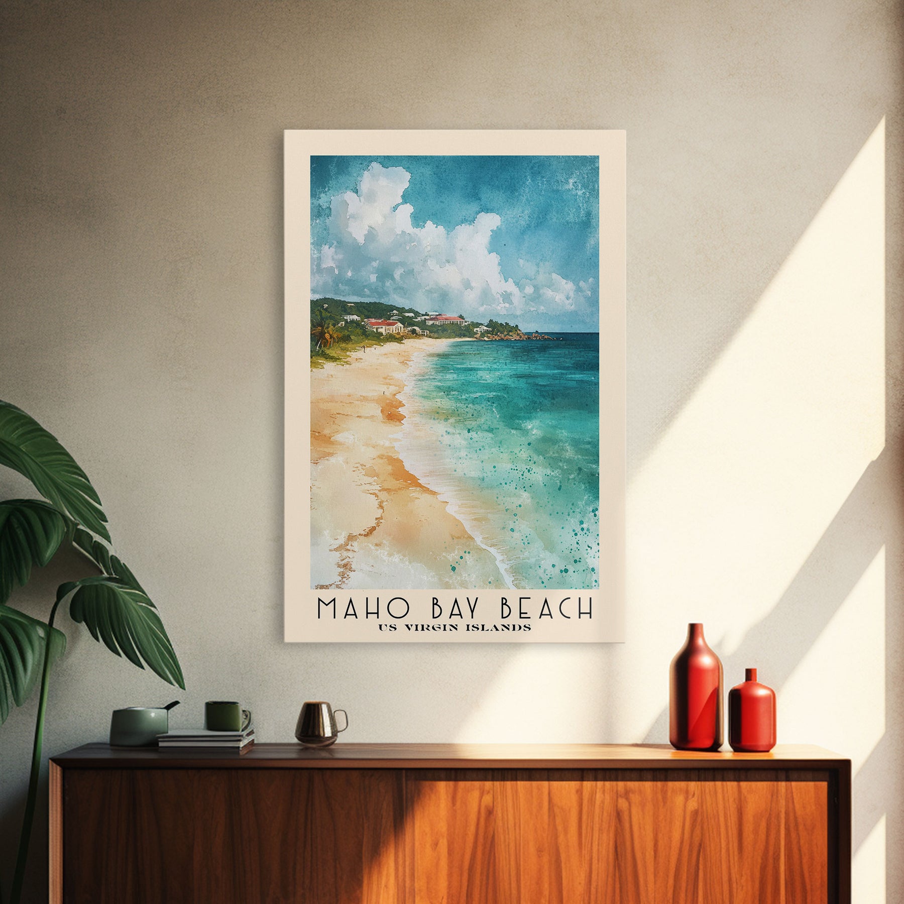 Maho Bay Beach, US Virgin islands Watercolor Print, Vacation Gift, US Virgin islands Wall Art, Beach Painting, Beach Decor, Beach Or Lakehouse Art