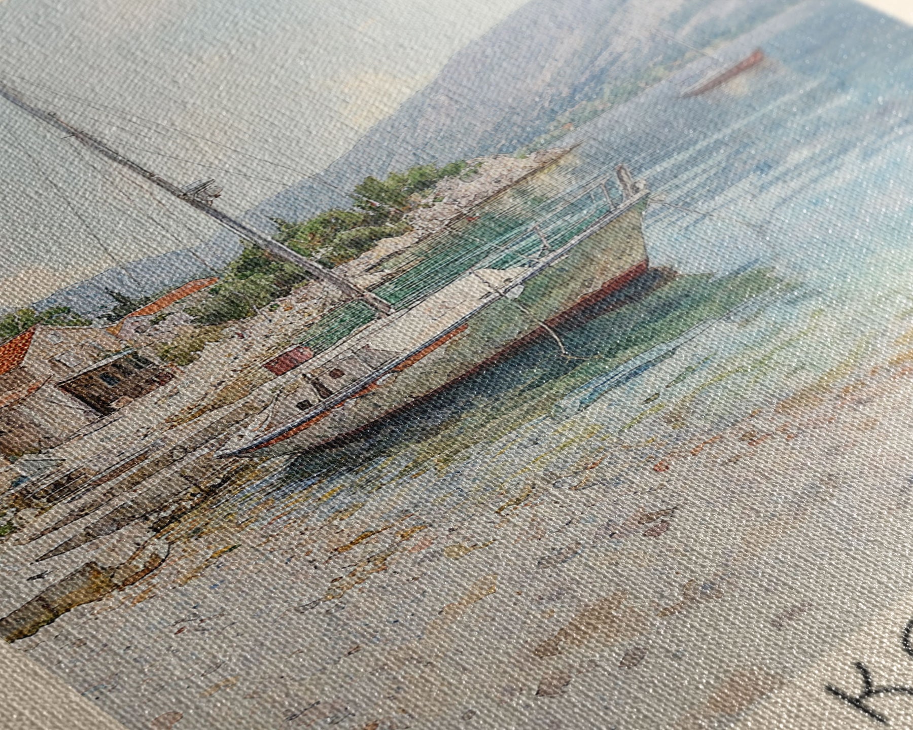 Most of our canvases are made in the USA, with the exception of canvases ordered with the light oak unstained frames, and any large canvases (24x48, 30x60, 16x48 and 20x60) ordered WITH a frame. These are temporarily made in and shipped from Europe, while we try to find a more consistent supplier in the USA.