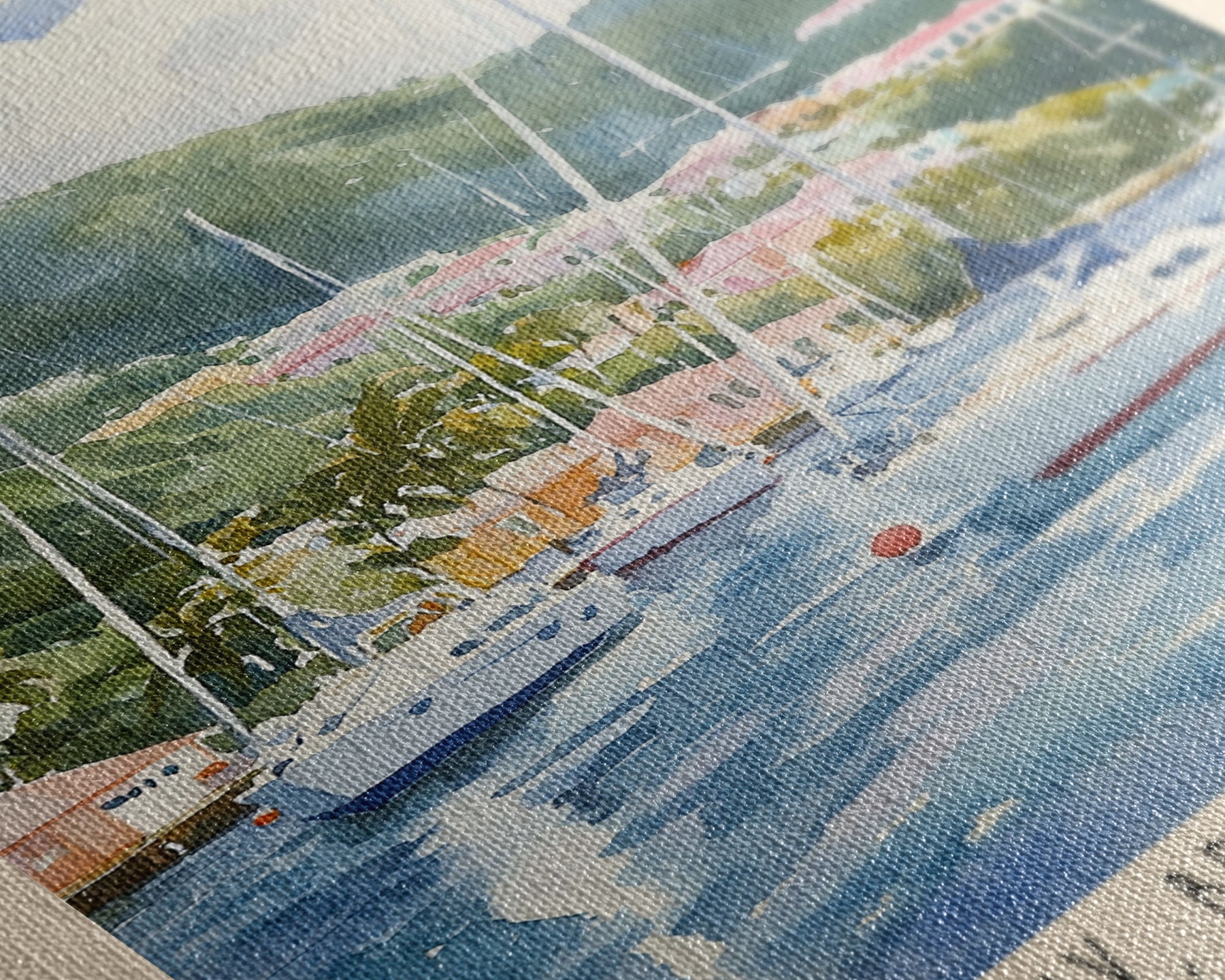 Most of our canvases are made in the USA, with the exception of canvases ordered with the light oak unstained frames, and any large canvases (24x48, 30x60, 16x48 and 20x60) ordered WITH a frame. These are temporarily made in and shipped from Europe, while we try to find a more consistent supplier in the USA.