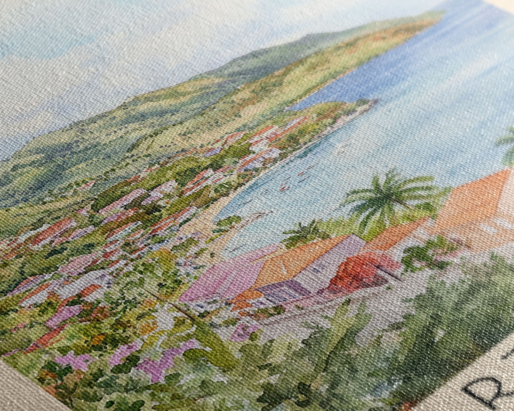 Most of our canvases are made in the USA, with the exception of canvases ordered with the light oak unstained frames, and any large canvases (24x48, 30x60, 16x48 and 20x60) ordered WITH a frame. These are temporarily made in and shipped from Europe, while we try to find a more consistent supplier in the USA.