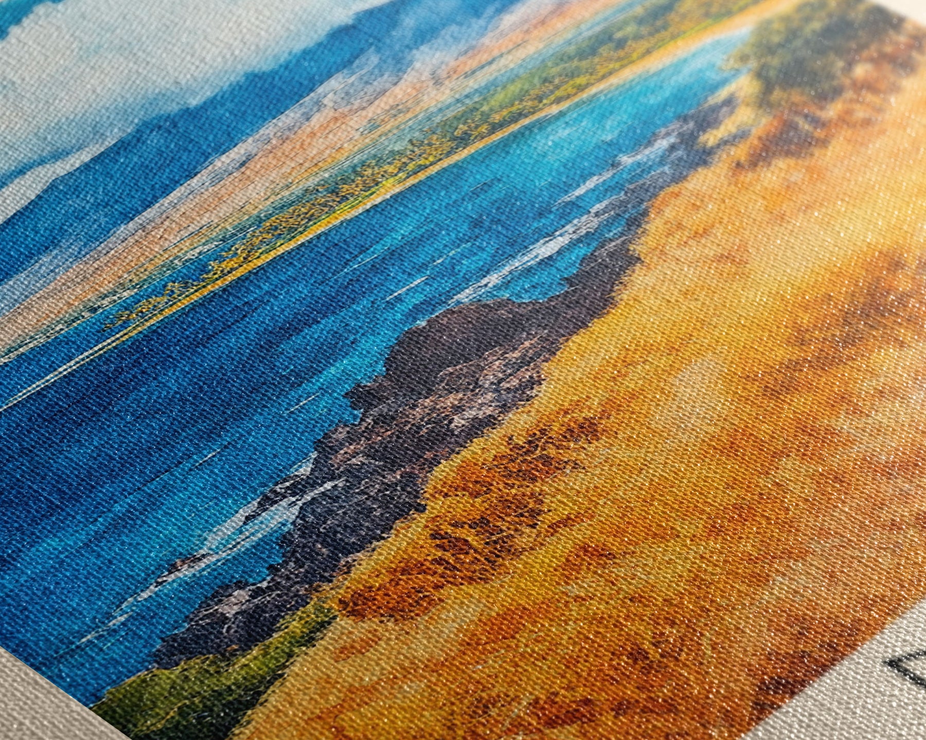 Most of our canvases are made in the USA, with the exception of canvases ordered with the light oak unstained frames, and any large canvases (24x48, 30x60, 16x48 and 20x60) ordered WITH a frame. These are temporarily made in and shipped from Europe, while we try to find a more consistent supplier in the USA.