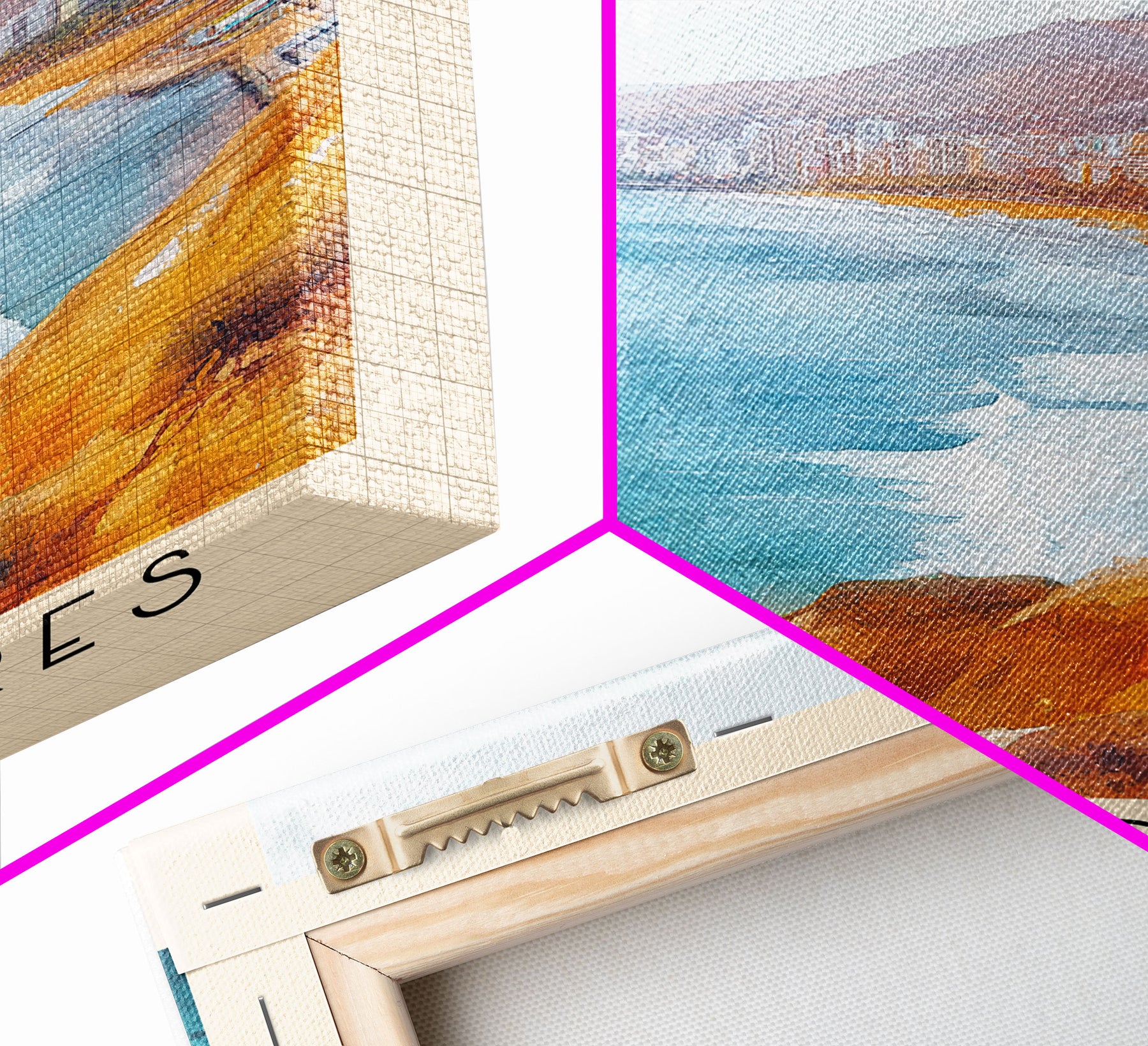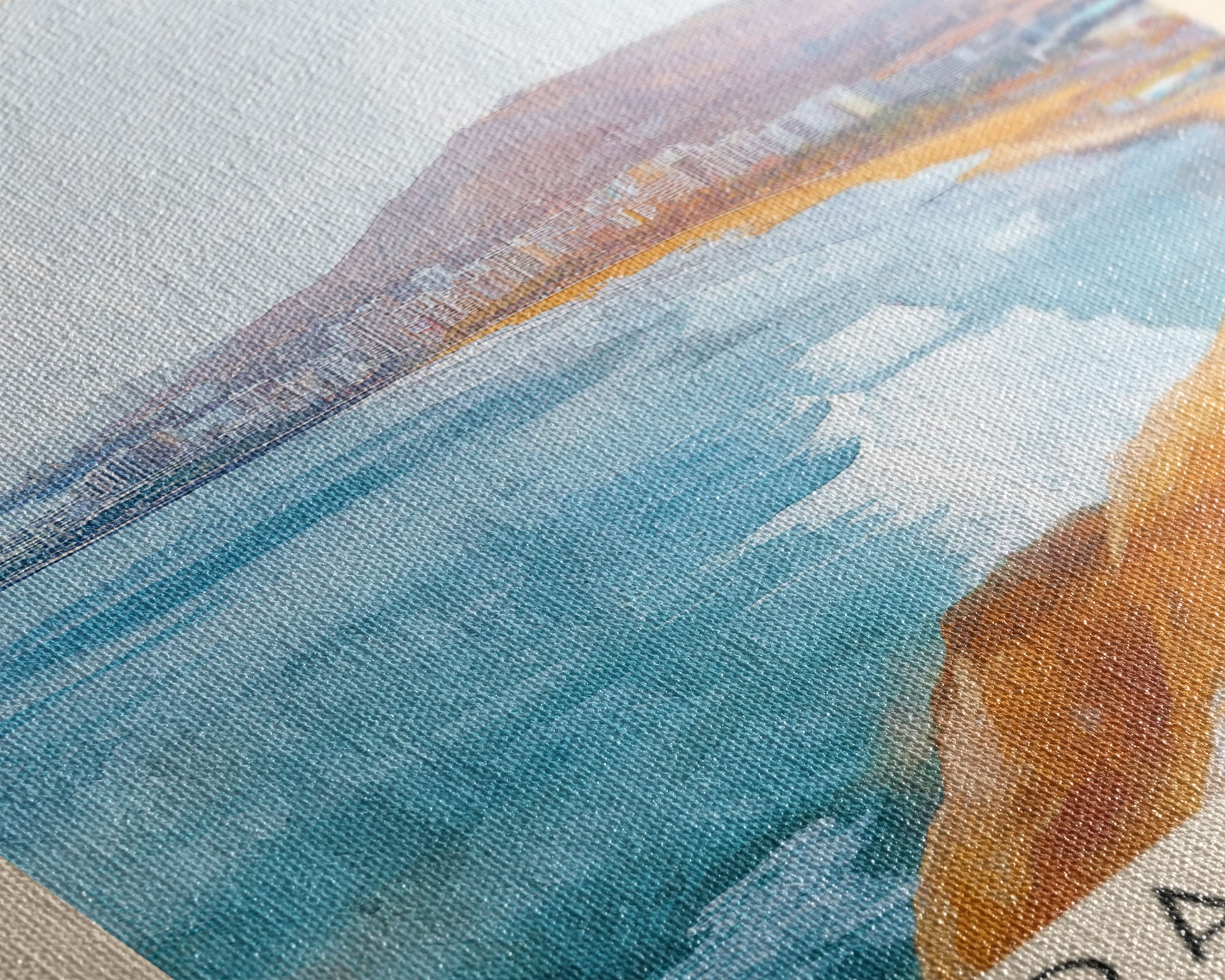 Most of our canvases are made in the USA, with the exception of canvases ordered with the light oak unstained frames, and any large canvases (24x48, 30x60, 16x48 and 20x60) ordered WITH a frame. These are temporarily made in and shipped from Europe, while we try to find a more consistent supplier in the USA.