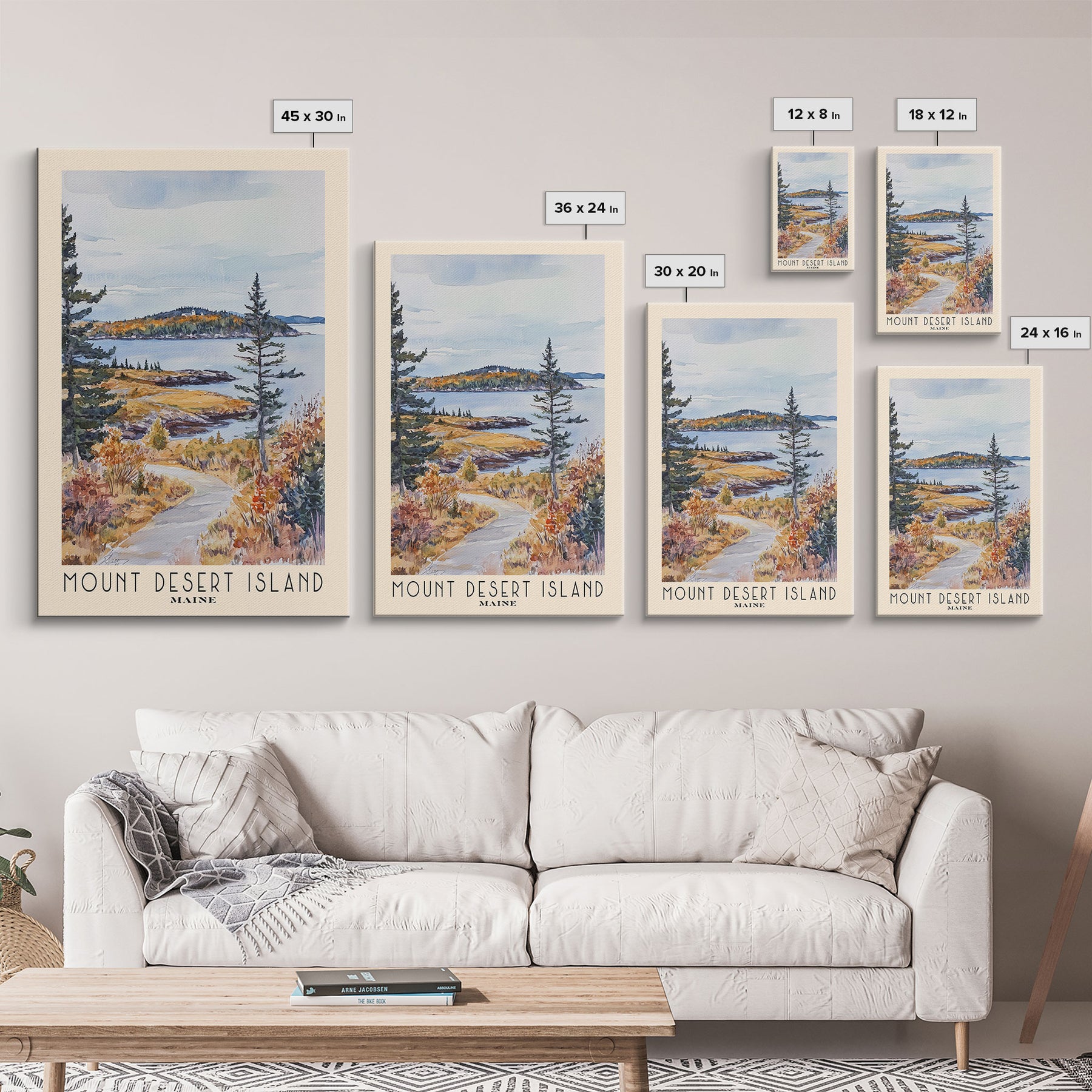 Mount Desert Island, Maine Watercolor Beach Print, Vacation Gift, Maine Wall Art, Framed Canvas Print, Framed Beach Painting