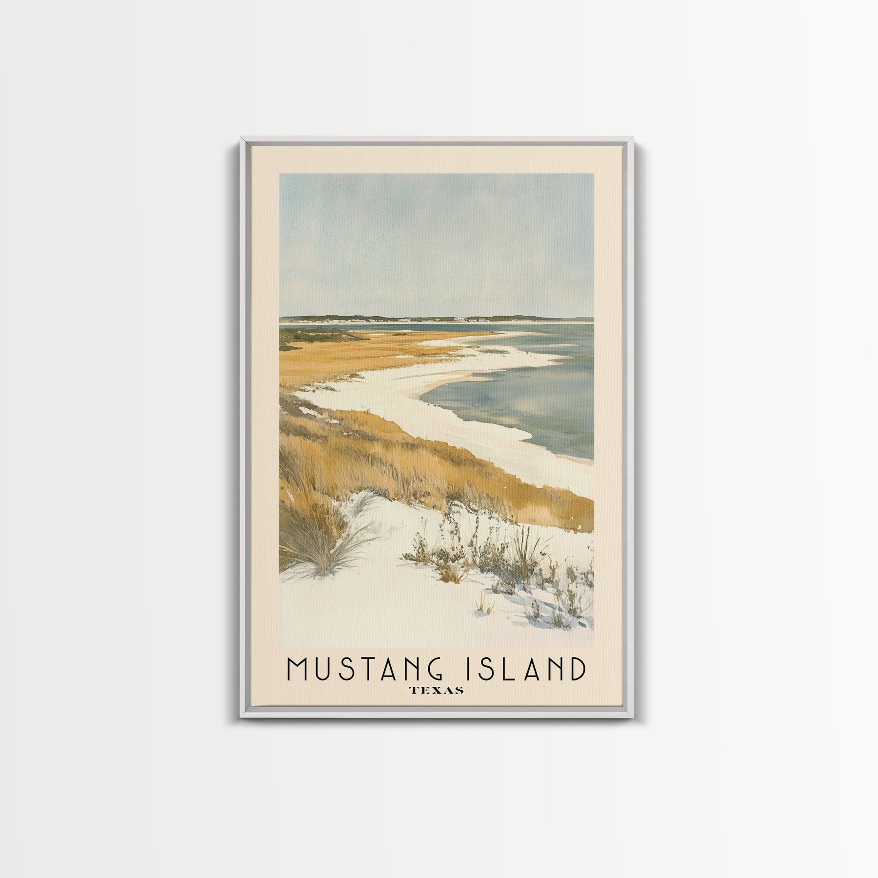 Mustang Island, Texas Watercolor Beach Print, Vacation Gift, Texas Wall Art, Framed Canvas Print, Framed Beach Painting