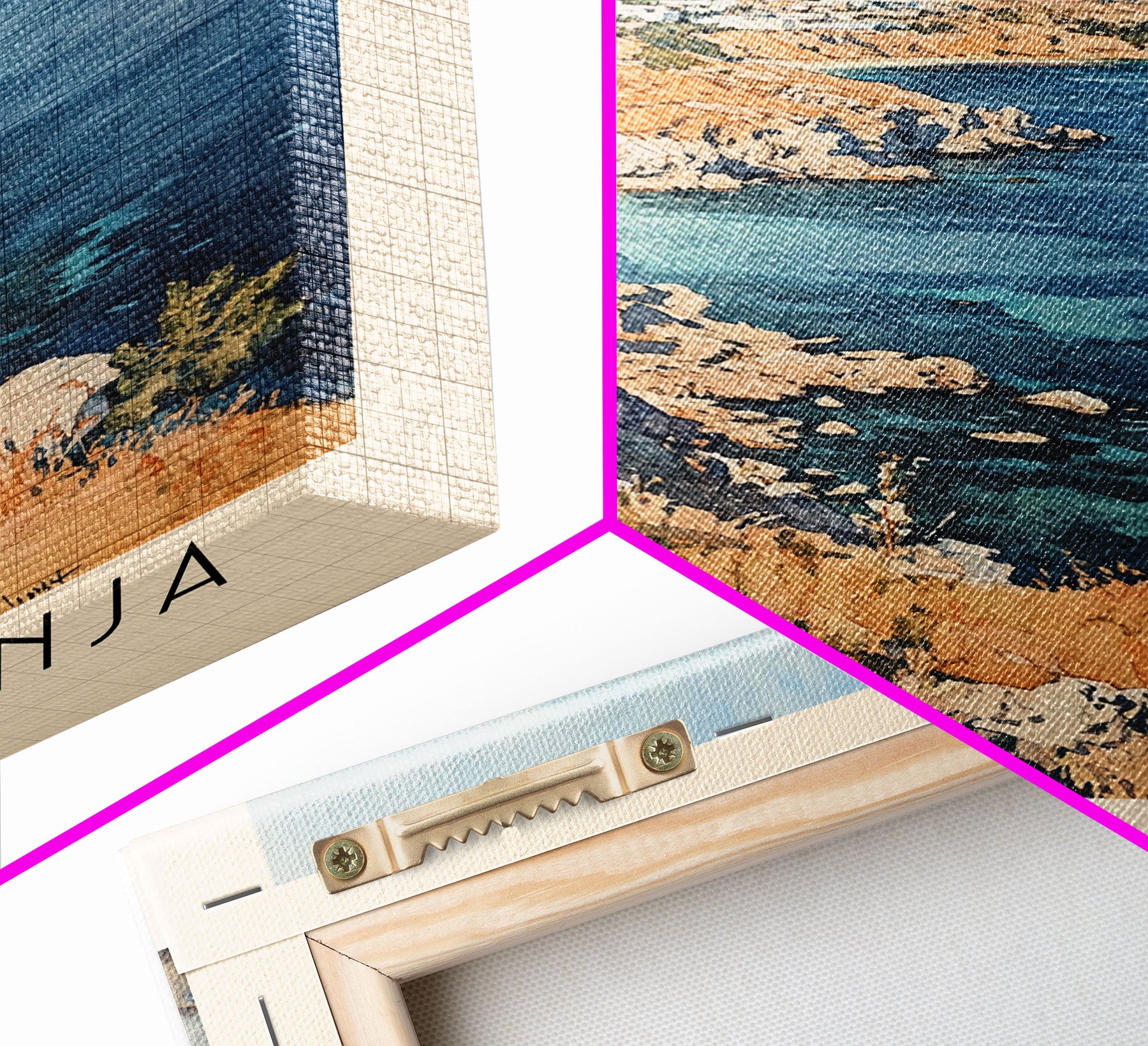 Most of our canvases are made in the USA, with the exception of canvases ordered with the light oak unstained frames, and any large canvases (24x48, 30x60, 16x48 and 20x60) ordered WITH a frame. These are temporarily made in and shipped from Europe, while we try to find a more consistent supplier in the USA.