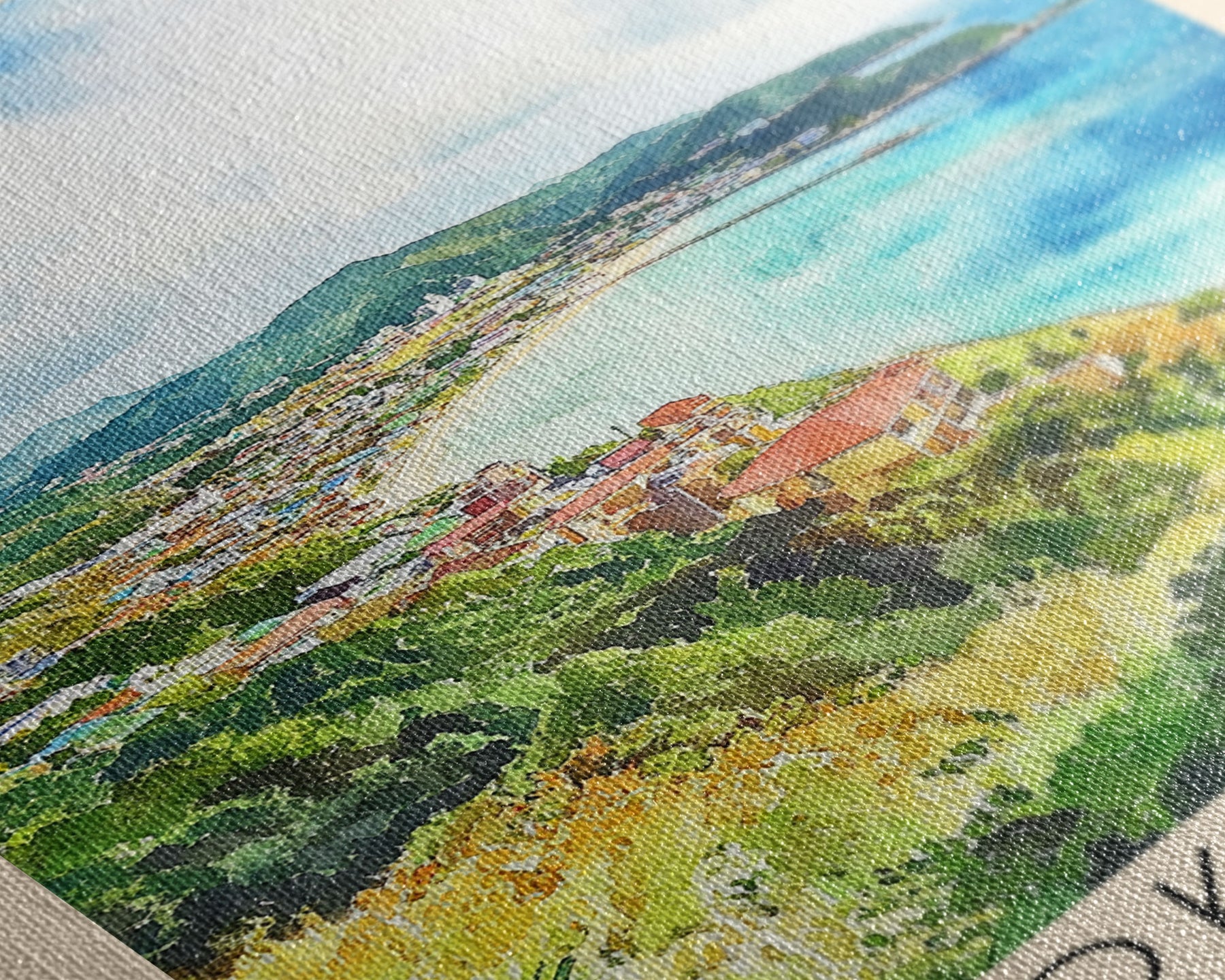 Most of our canvases are made in the USA, with the exception of canvases ordered with the light oak unstained frames, and any large canvases (24x48, 30x60, 16x48 and 20x60) ordered WITH a frame. These are temporarily made in and shipped from Europe, while we try to find a more consistent supplier in the USA.