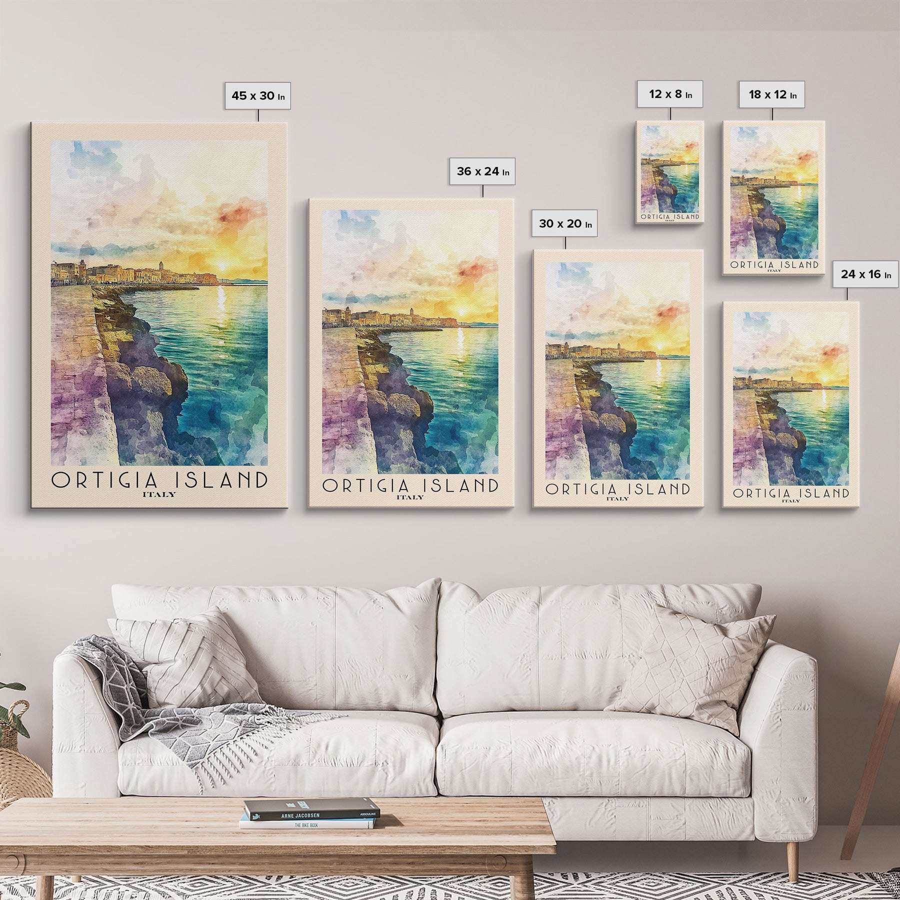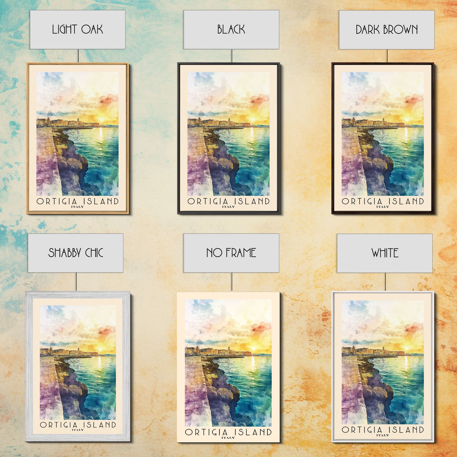 Ortigia Island, Italy Watercolor Print, Vacation Gift, Italy Wall Art, Beach Painting, Beach Decor, Large Wall Art, Wood Frame Art