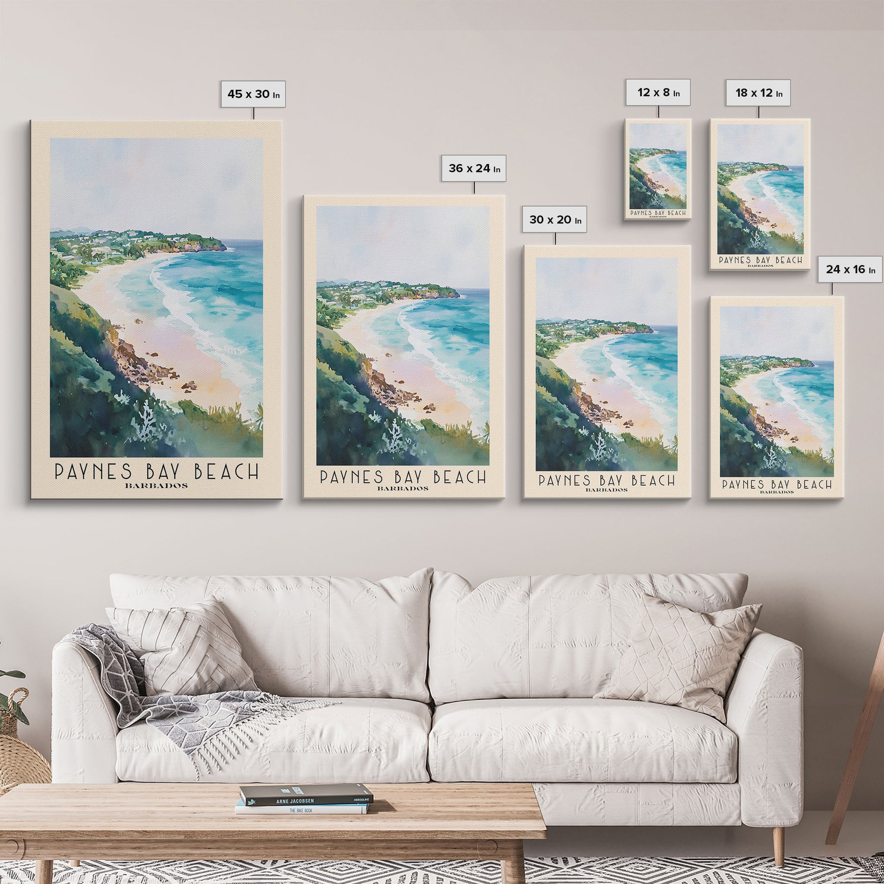 Paynes Bay Beach, Barbados Watercolor Print, Vacation Gift, Barbados Wall Art, Beach Painting, Beach Decor, Large Wall Art, Wood Frame Art