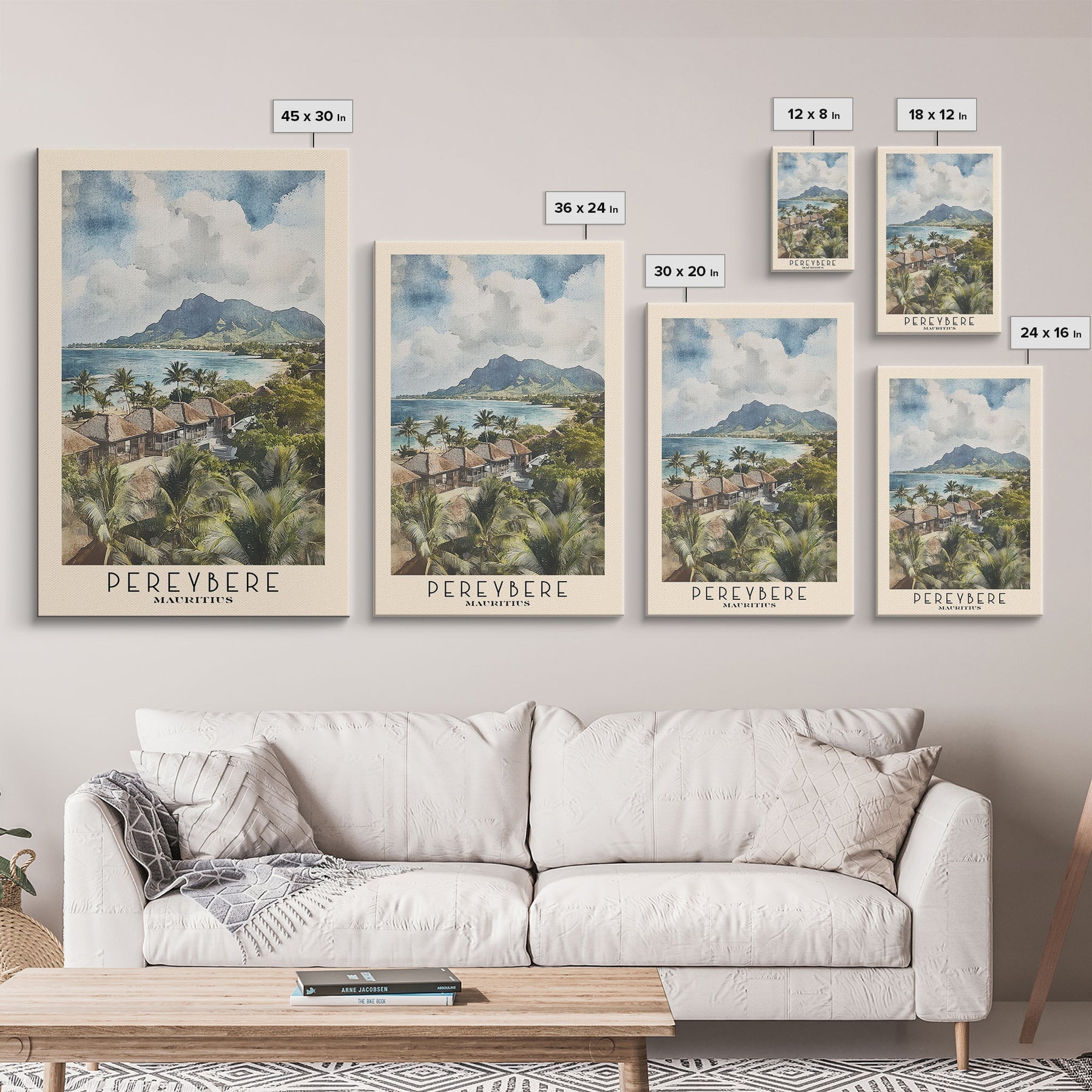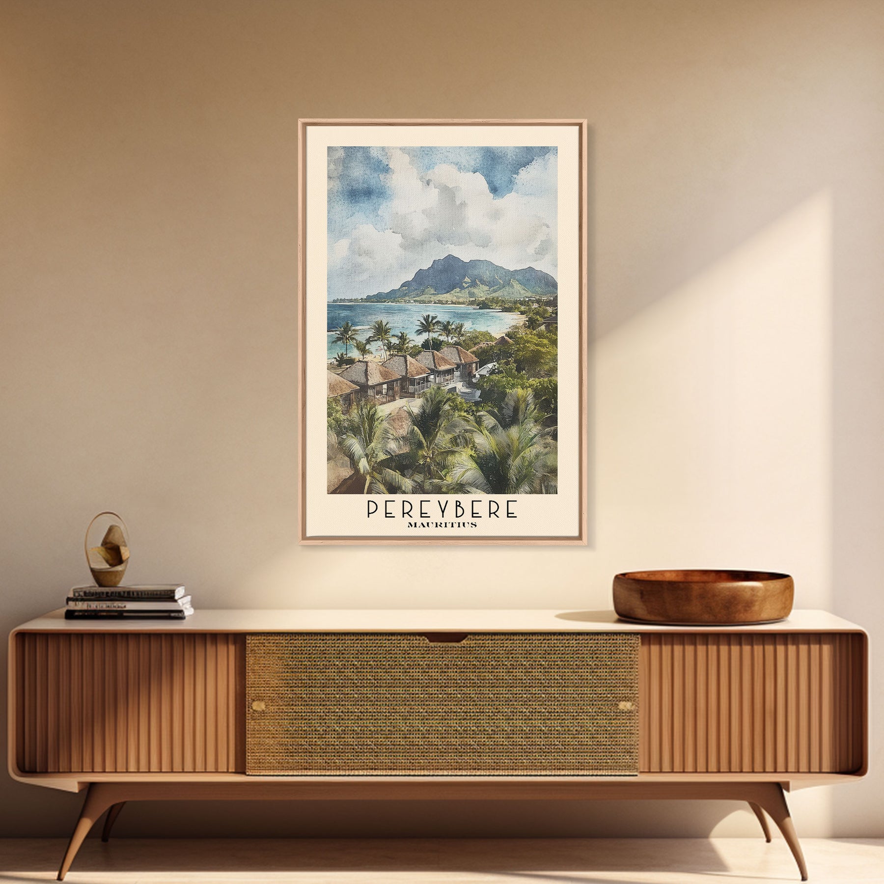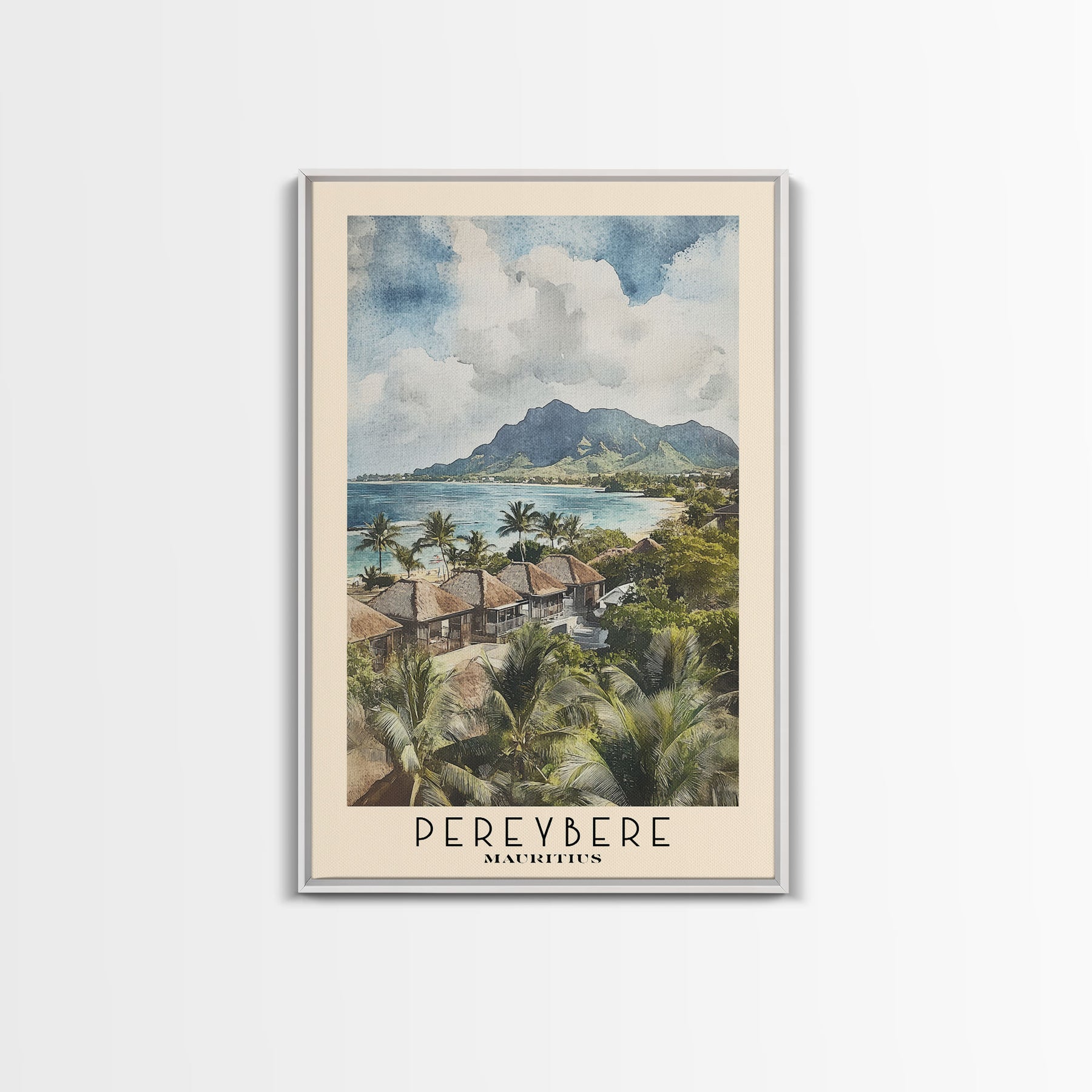 Pereybere, Mauritius Watercolor Print, Vacation Gift, Mauritius Wall Art, Beach Painting, Beach Decor, Large Wall Art, Wood Frame Art