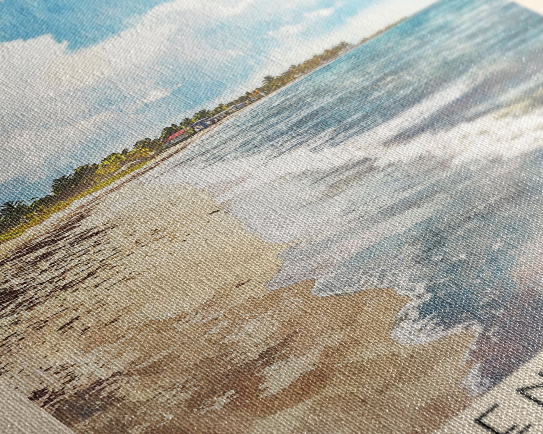 Most of our canvases are made in the USA, with the exception of canvases ordered with the light oak unstained frames, and any large canvases (24x48, 30x60, 16x48 and 20x60) ordered WITH a frame. These are temporarily made in and shipped from Europe, while we try to find a more consistent supplier in the USA.
