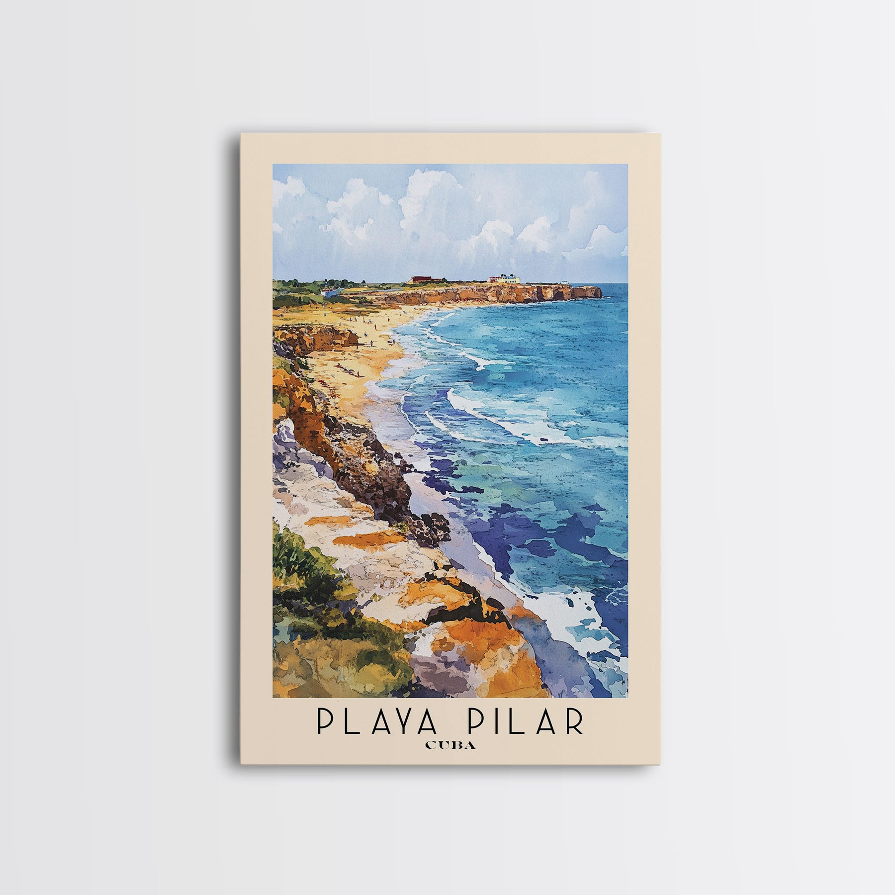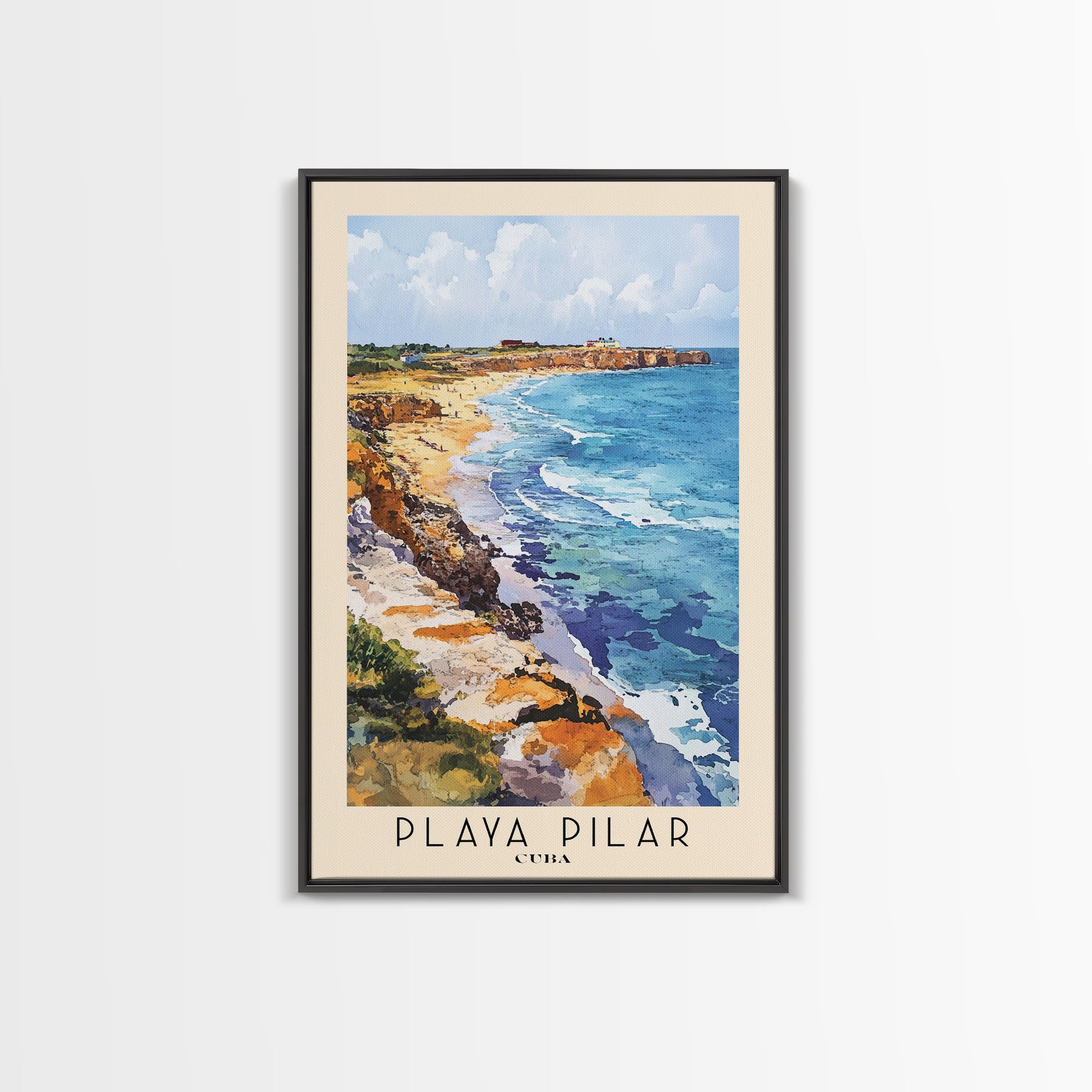 Playa Pilar, Cuba Watercolor Beach Print, Vacation Gift, Cuba Wall Art, Framed Canvas Print, Framed Beach Painting