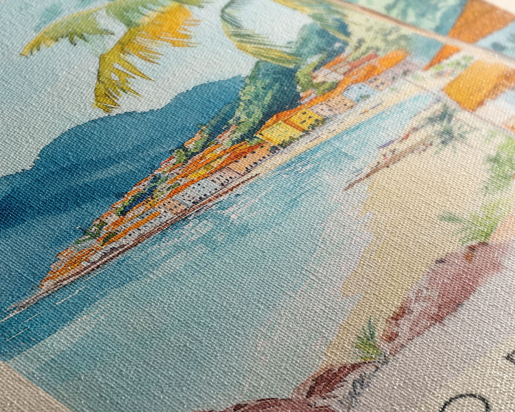 Most of our canvases are made in the USA, with the exception of canvases ordered with the light oak unstained frames, and any large canvases (24x48, 30x60, 16x48 and 20x60) ordered WITH a frame. These are temporarily made in and shipped from Europe, while we try to find a more consistent supplier in the USA.